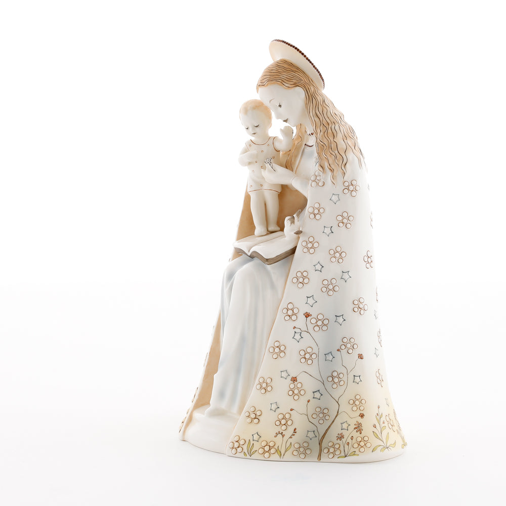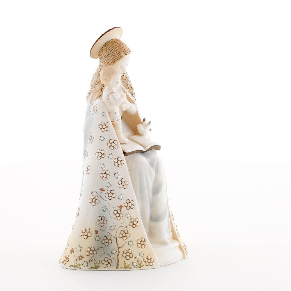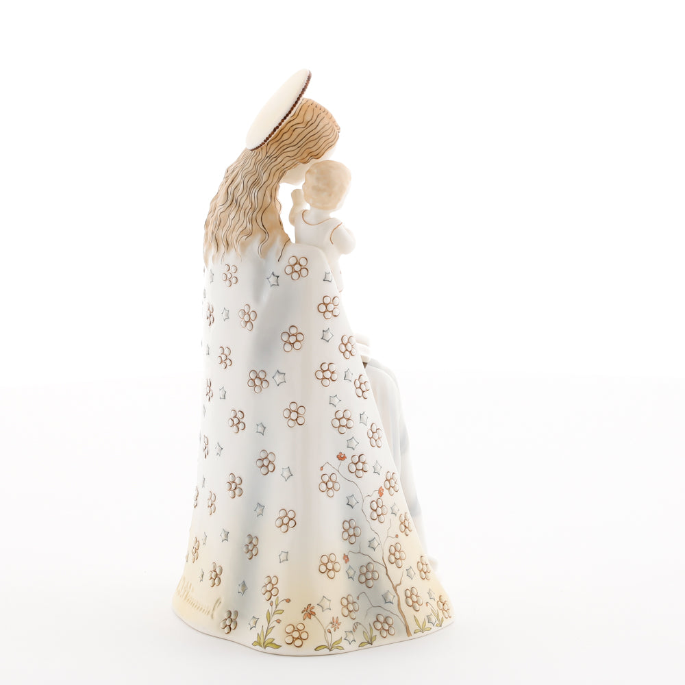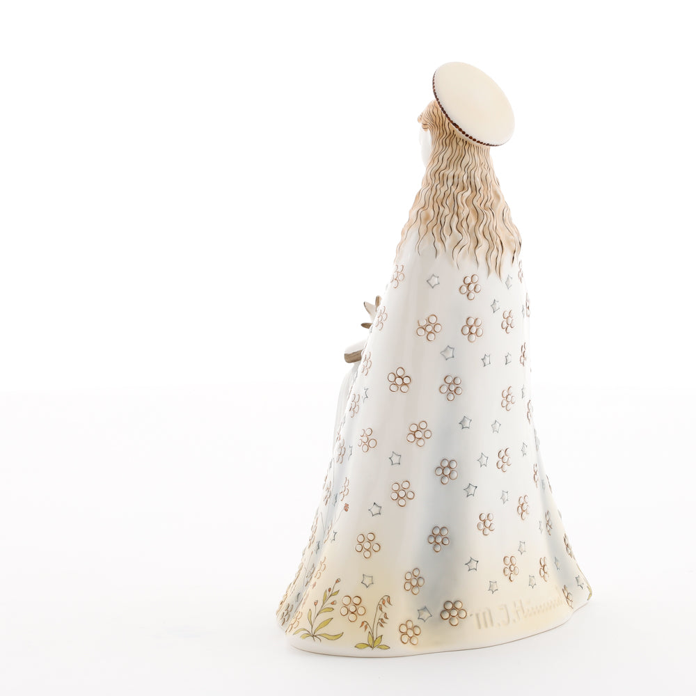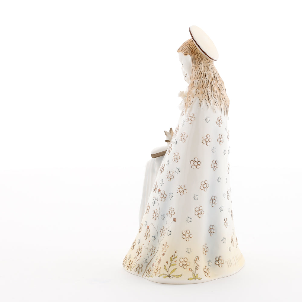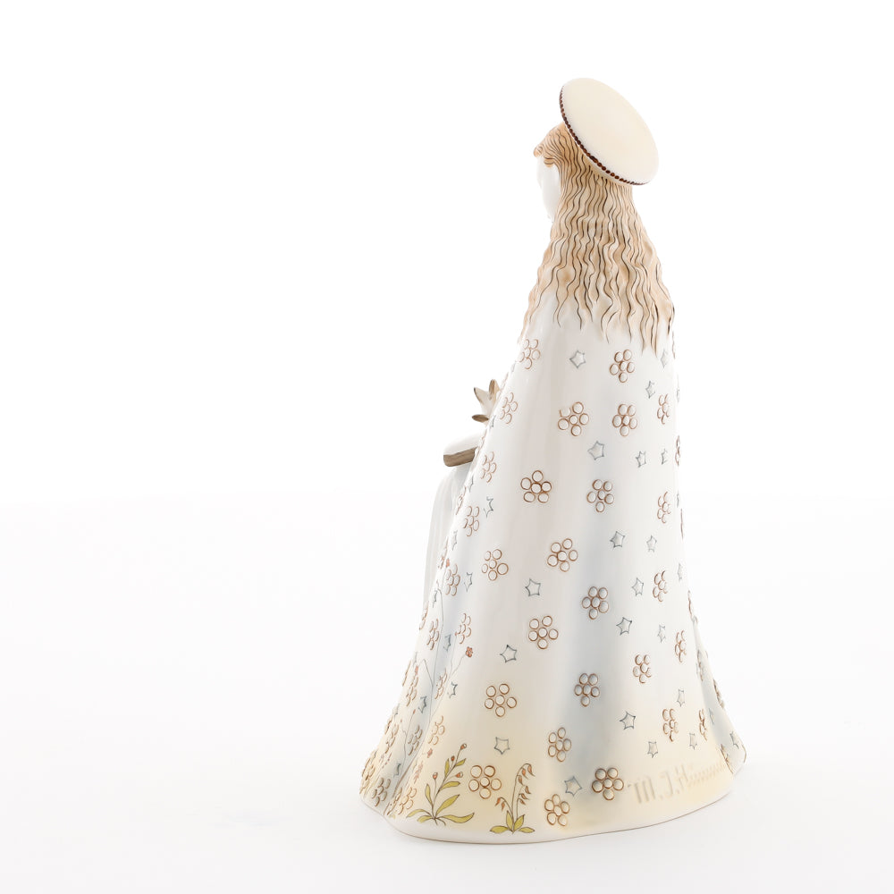 In einer exklusiven Edition von nur 99 Figuren bringt die Hummel Manufaktur die Blumenmadonna mit einem ganz besonderen Dekor heraus. Mit seinen sanften Farbtönen lehnt es sich eng an die Farbgebung der Originalzeichnung von Schwester Maria Innocentia an.