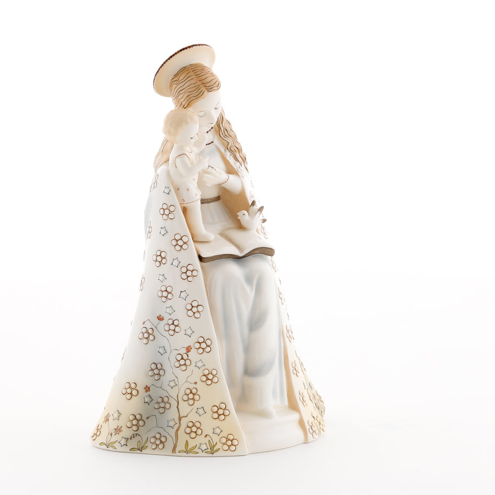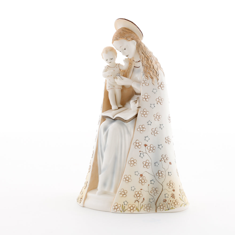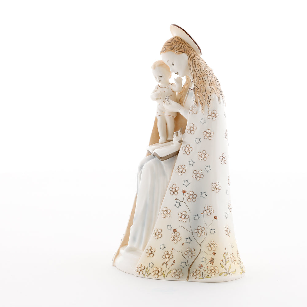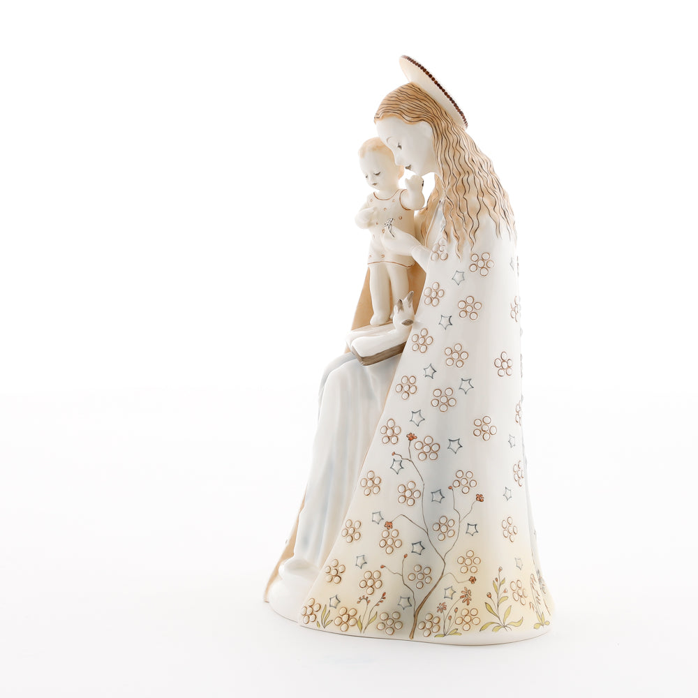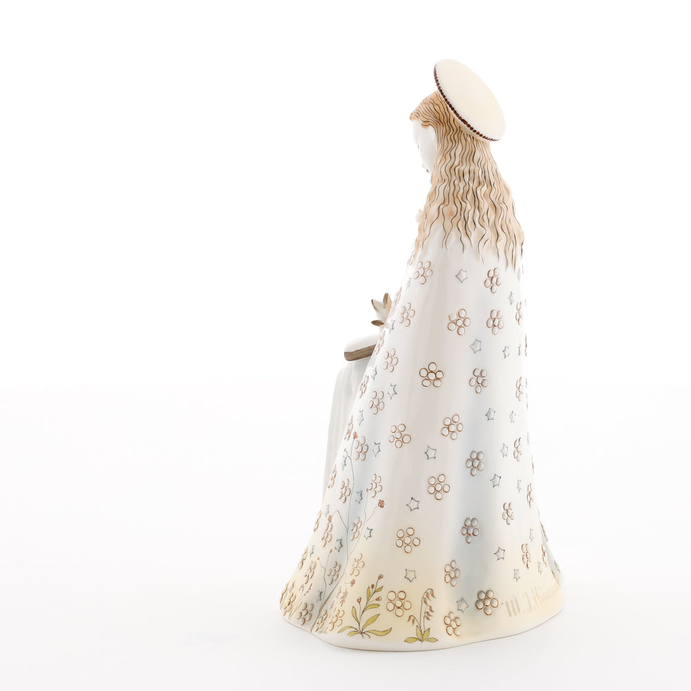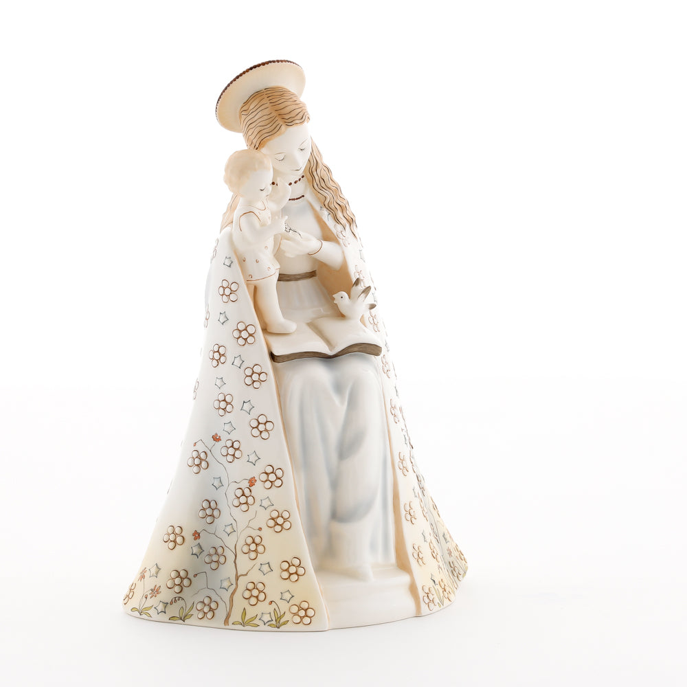 In einer exklusiven Edition von nur 99 Figuren bringt die Hummel Manufaktur die Blumenmadonna mit einem ganz besonderen Dekor heraus. Mit seinen sanften Farbtönen lehnt es sich eng an die Farbgebung der Originalzeichnung von Schwester Maria Innocentia an.