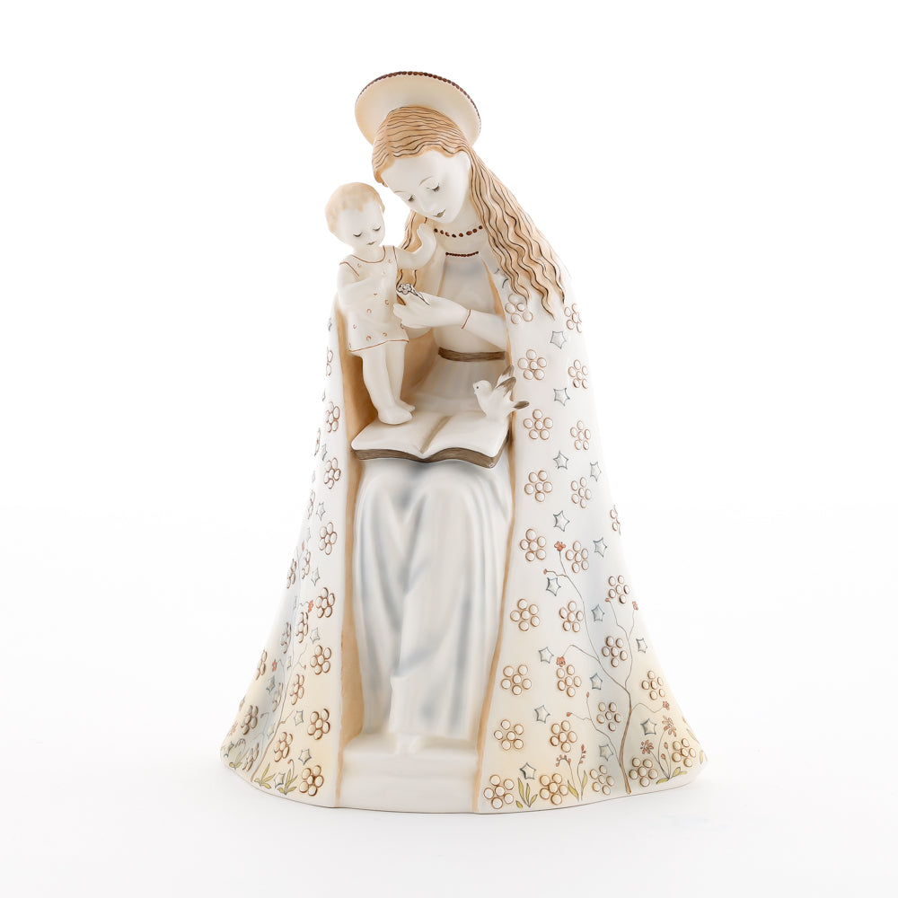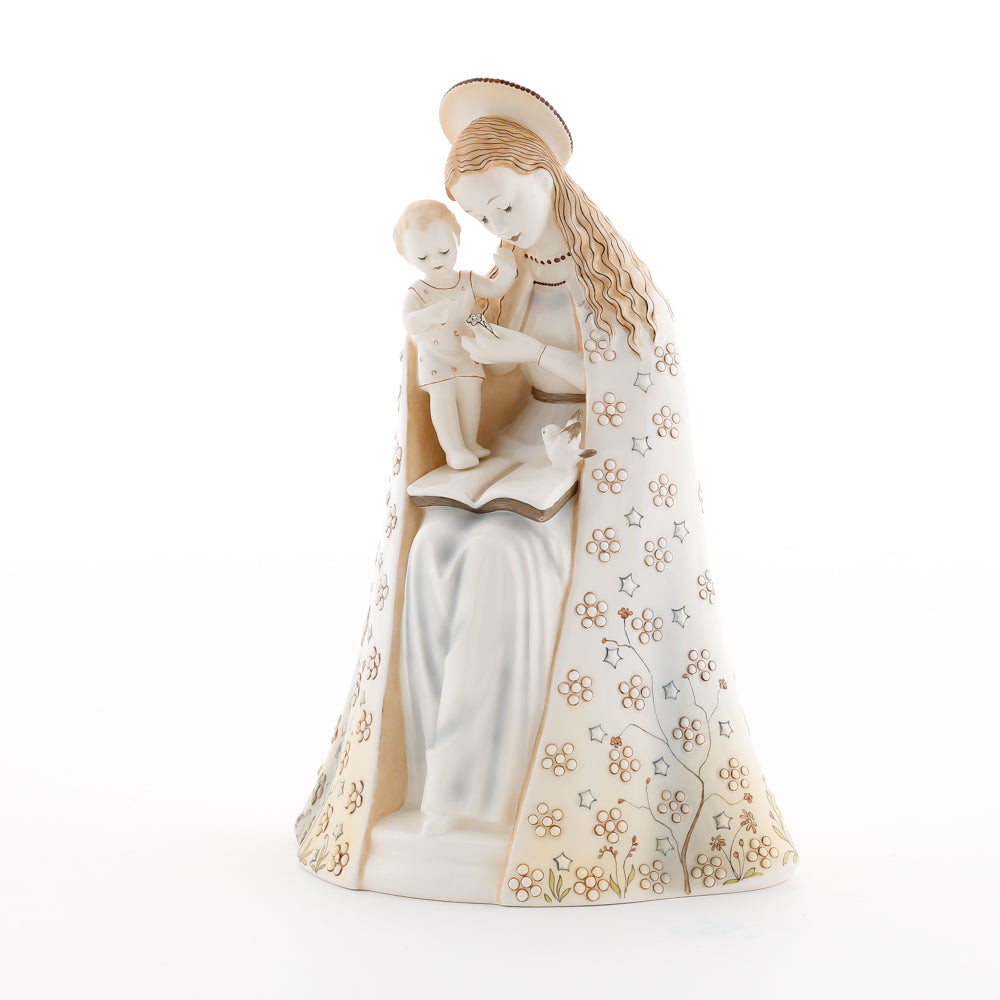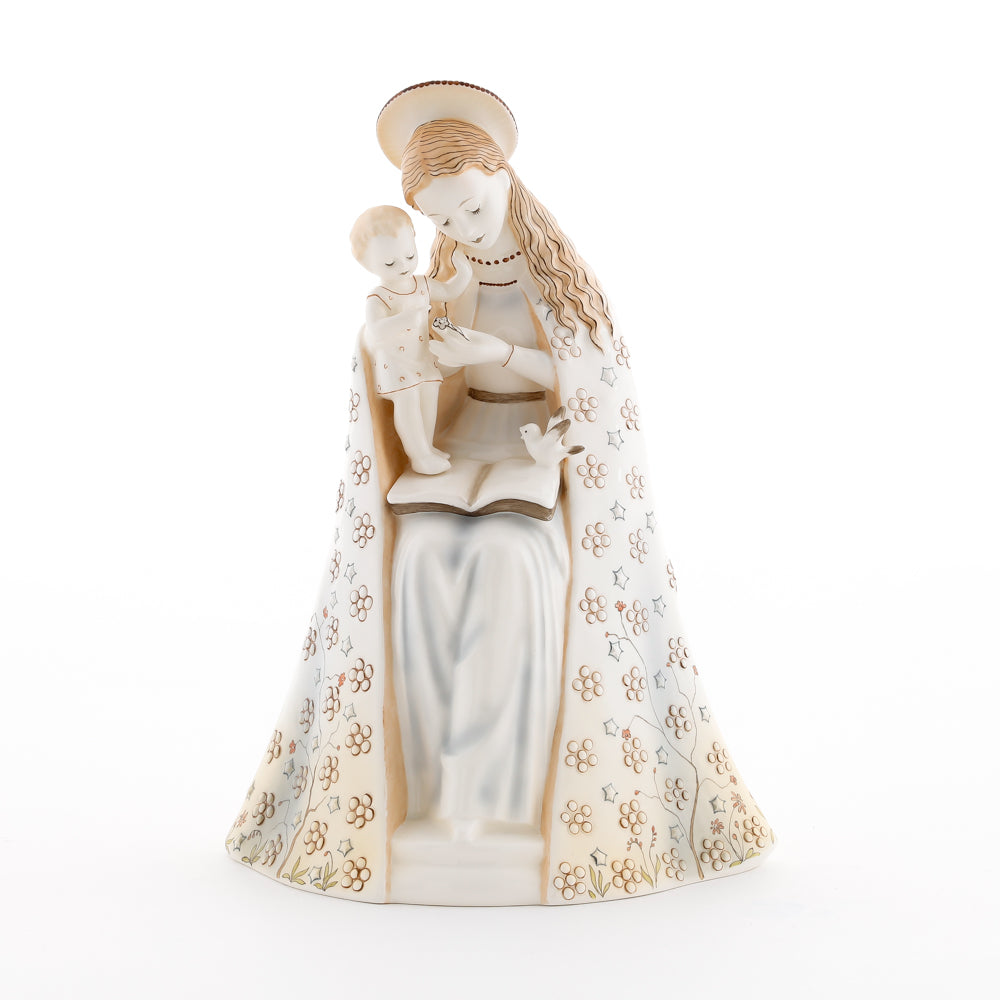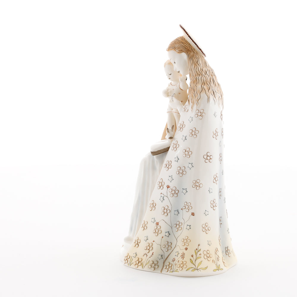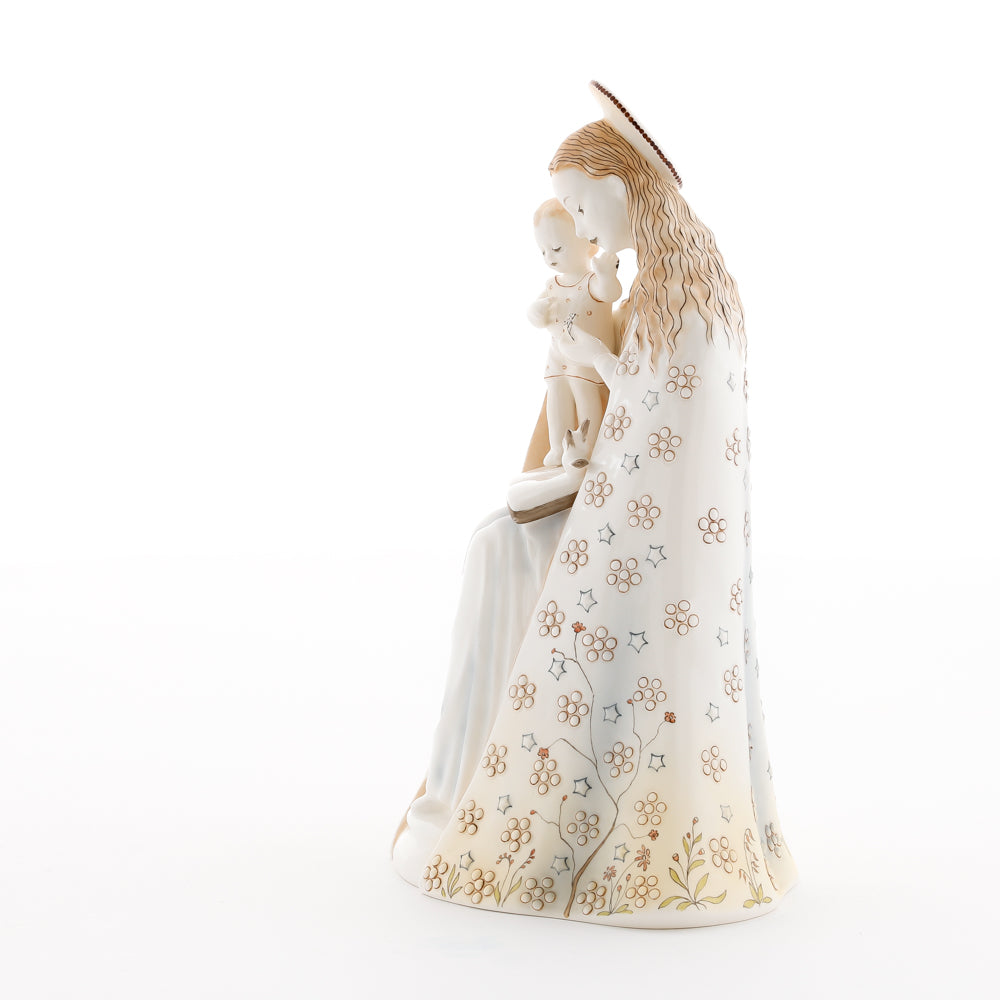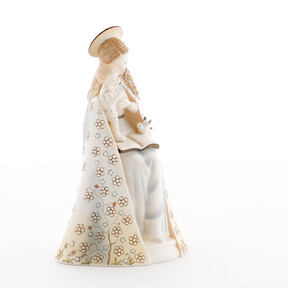 In einer exklusiven Edition von nur 99 Figuren bringt die Hummel Manufaktur die Blumenmadonna mit einem ganz besonderen Dekor heraus. Mit seinen sanften Farbtönen lehnt es sich eng an die Farbgebung der Originalzeichnung von Schwester Maria Innocentia an.