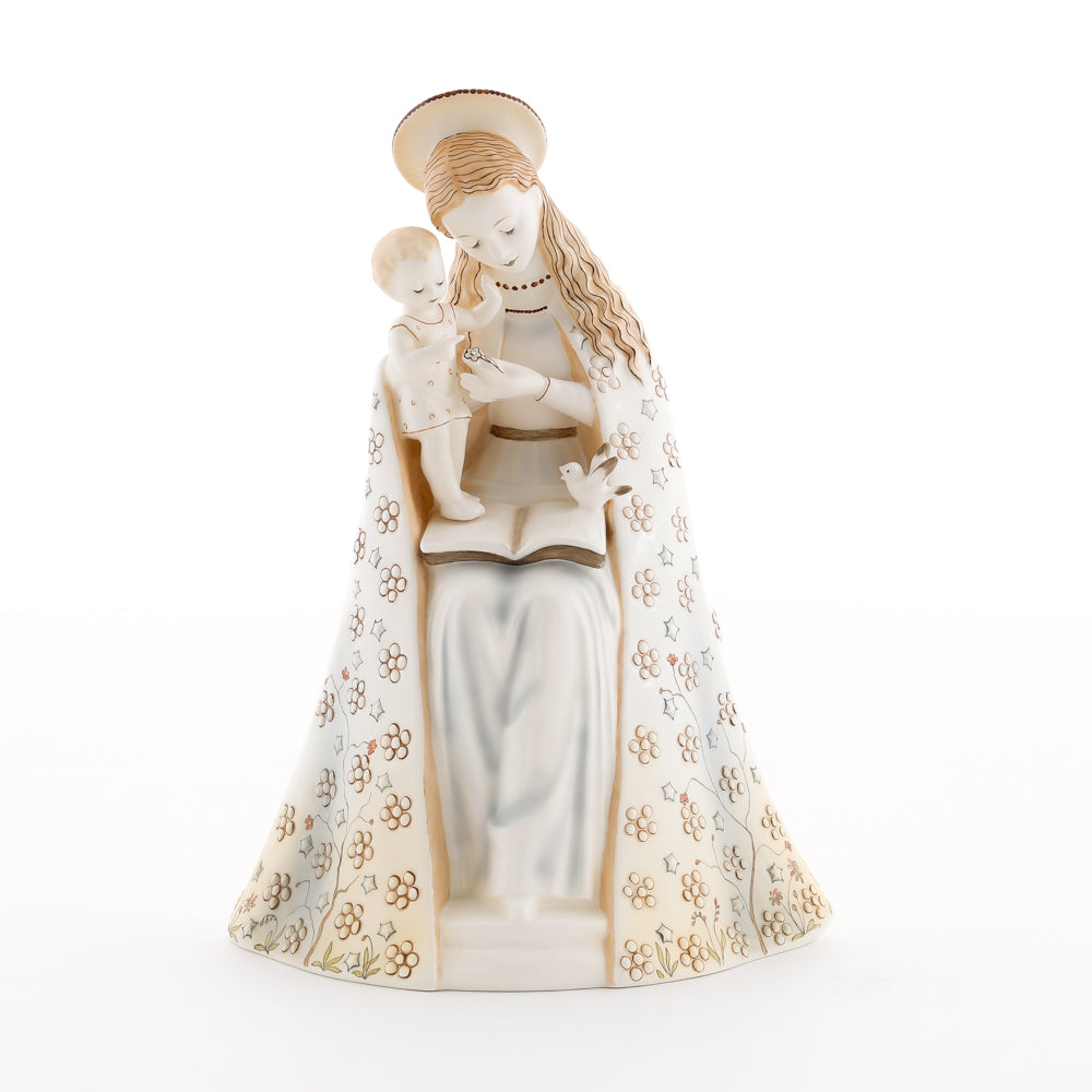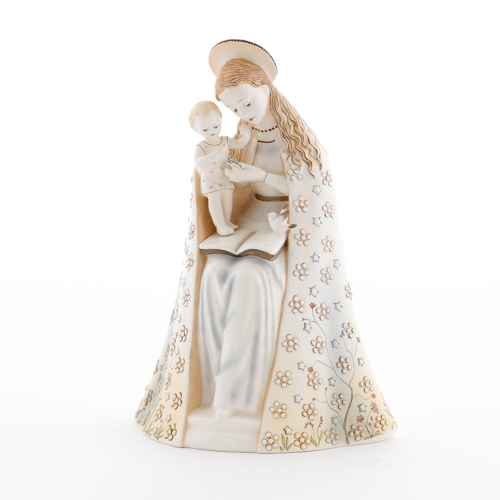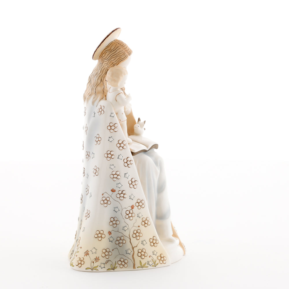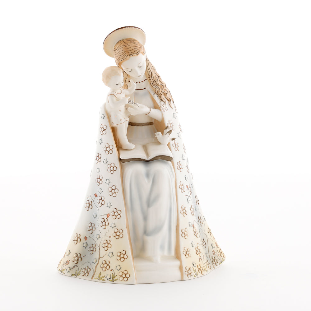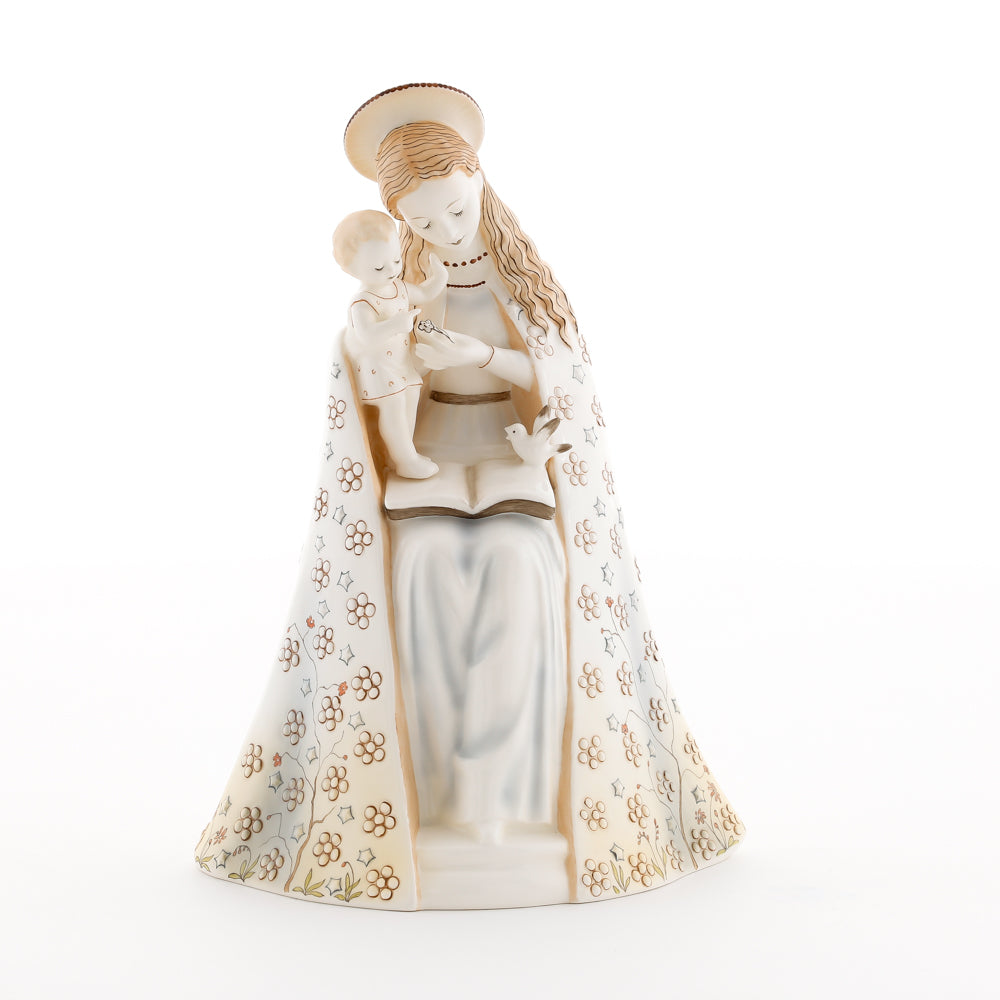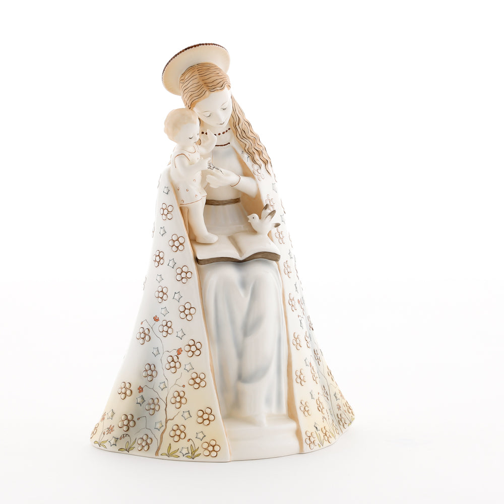 In einer exklusiven Edition von nur 99 Figuren bringt die Hummel Manufaktur die Blumenmadonna mit einem ganz besonderen Dekor heraus. Mit seinen sanften Farbtönen lehnt es sich eng an die Farbgebung der Originalzeichnung von Schwester Maria Innocentia an.