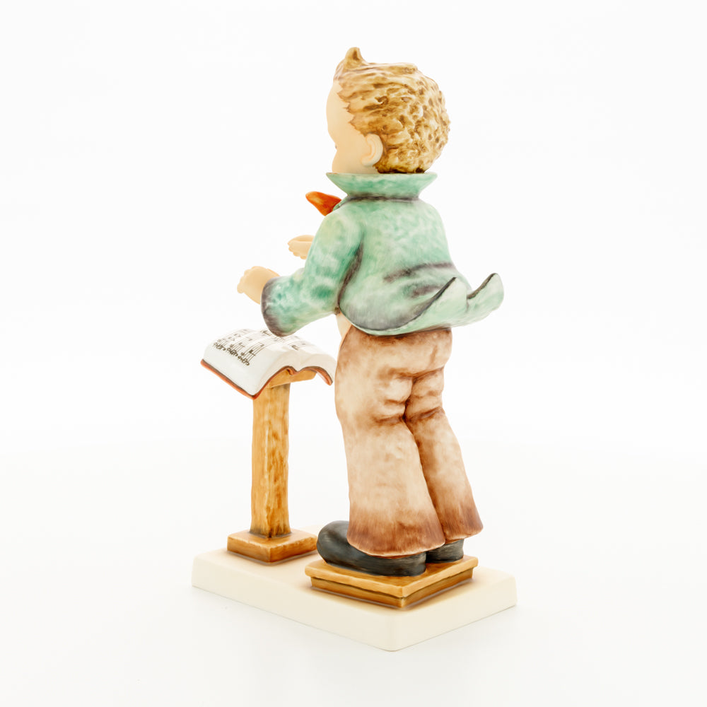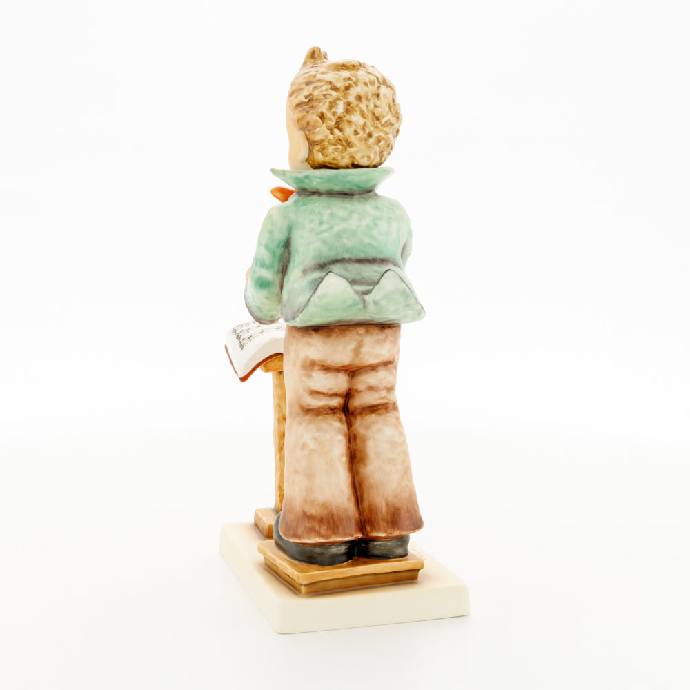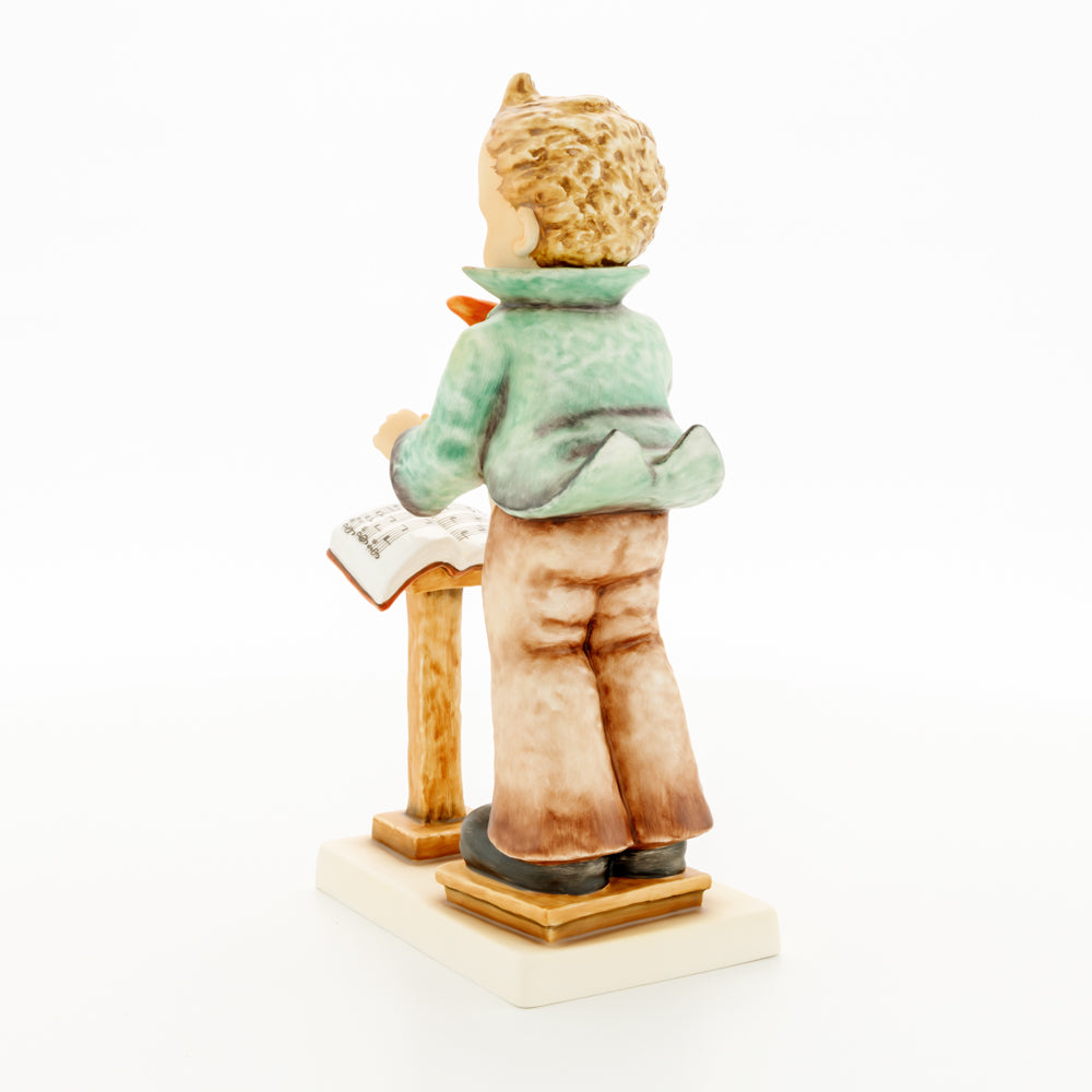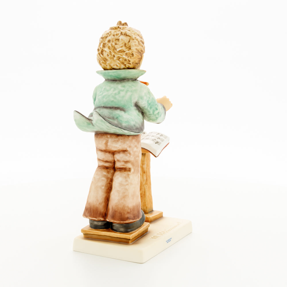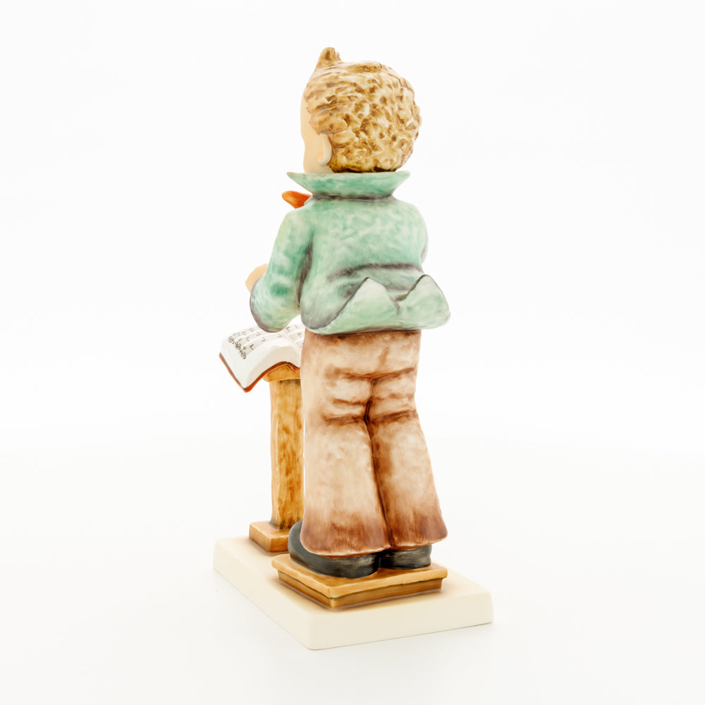 Diese Figur wurde 1939 von Arthus Möller entworfen. Es gibt viele Größen- und Farbvarianten. Sie ist Bestandteil einer Figurensammlung, die zusammen das Hummel-Orchester ausmachen. 1987 kam eine Variante auf den Markt, die Bestandteil der „Kleinen Musikanten“ ist. Über einen Zeitraum von 4 Jahren wurde hierzu jährlich eine Figur herausgebracht. Diese Figur ist die letzte in der Serie.