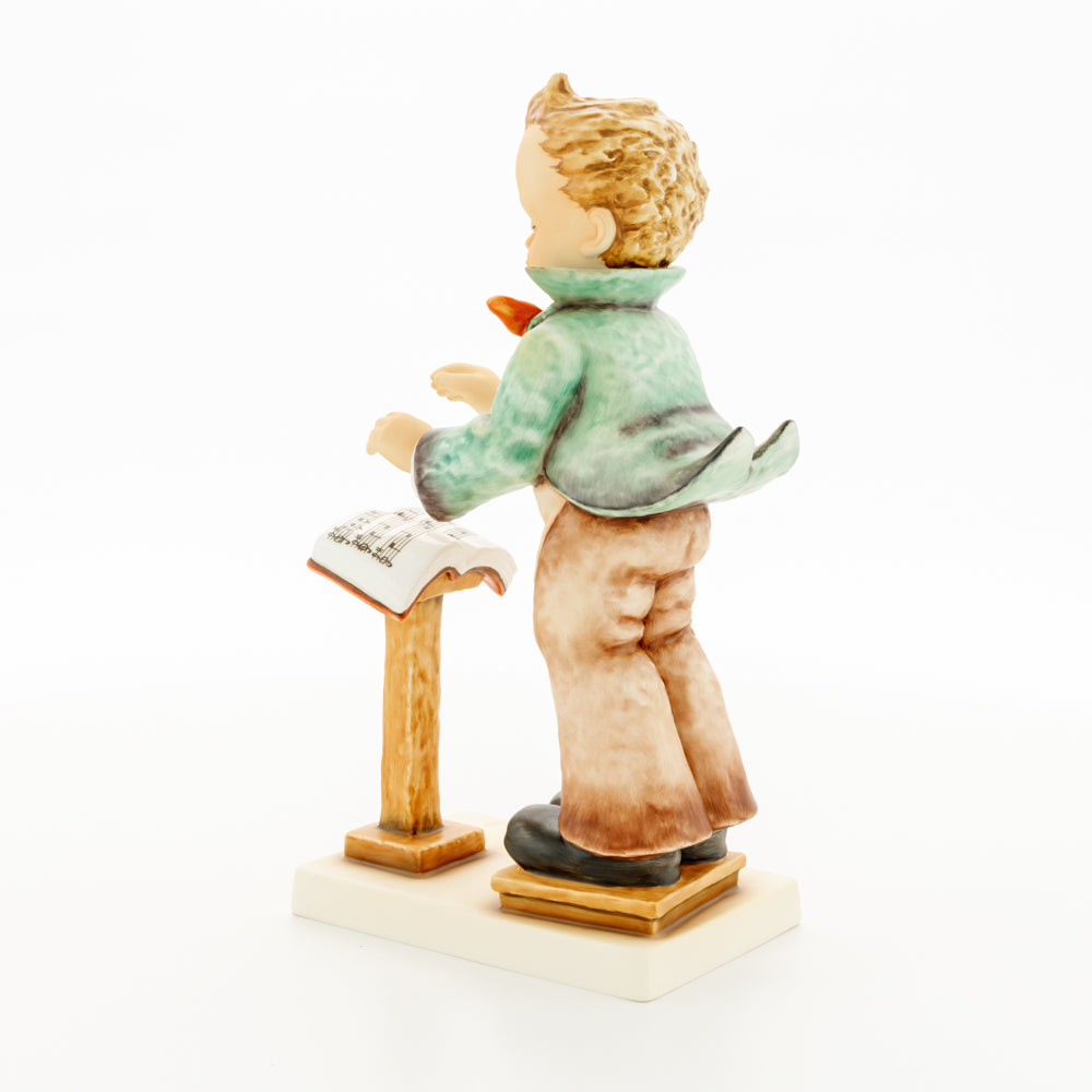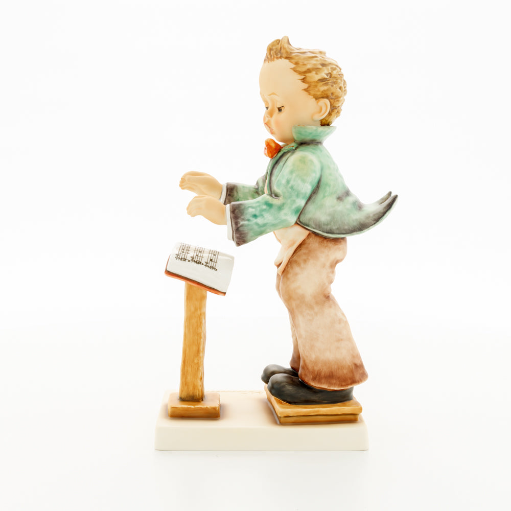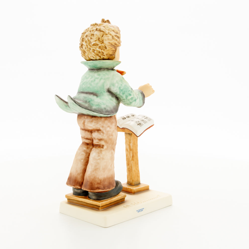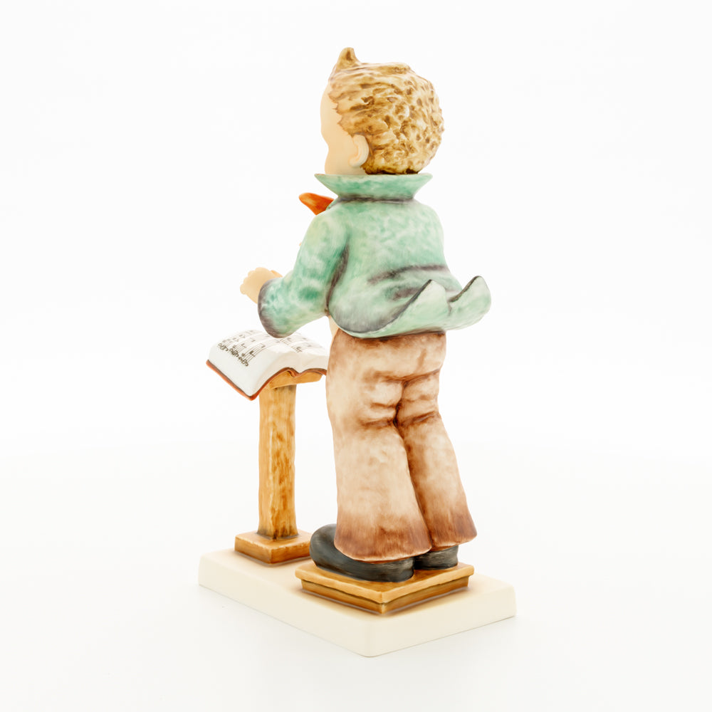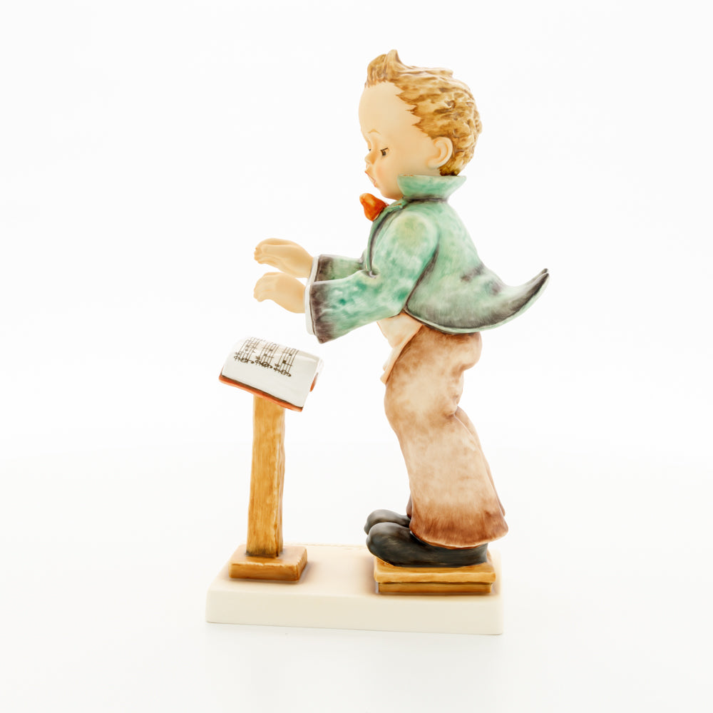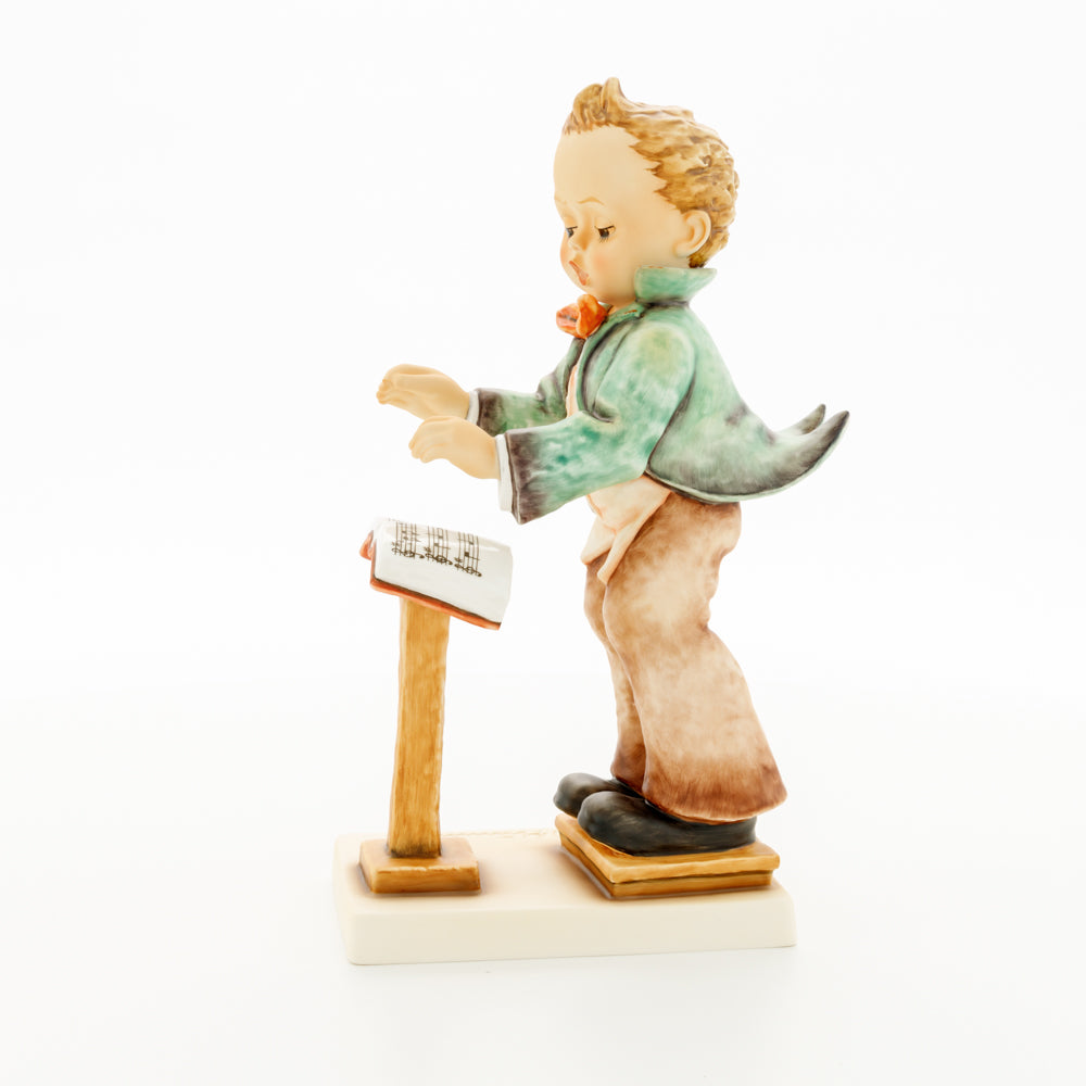 Diese Figur wurde 1939 von Arthus Möller entworfen. Es gibt viele Größen- und Farbvarianten. Sie ist Bestandteil einer Figurensammlung, die zusammen das Hummel-Orchester ausmachen. 1987 kam eine Variante auf den Markt, die Bestandteil der „Kleinen Musikanten“ ist. Über einen Zeitraum von 4 Jahren wurde hierzu jährlich eine Figur herausgebracht. Diese Figur ist die letzte in der Serie.