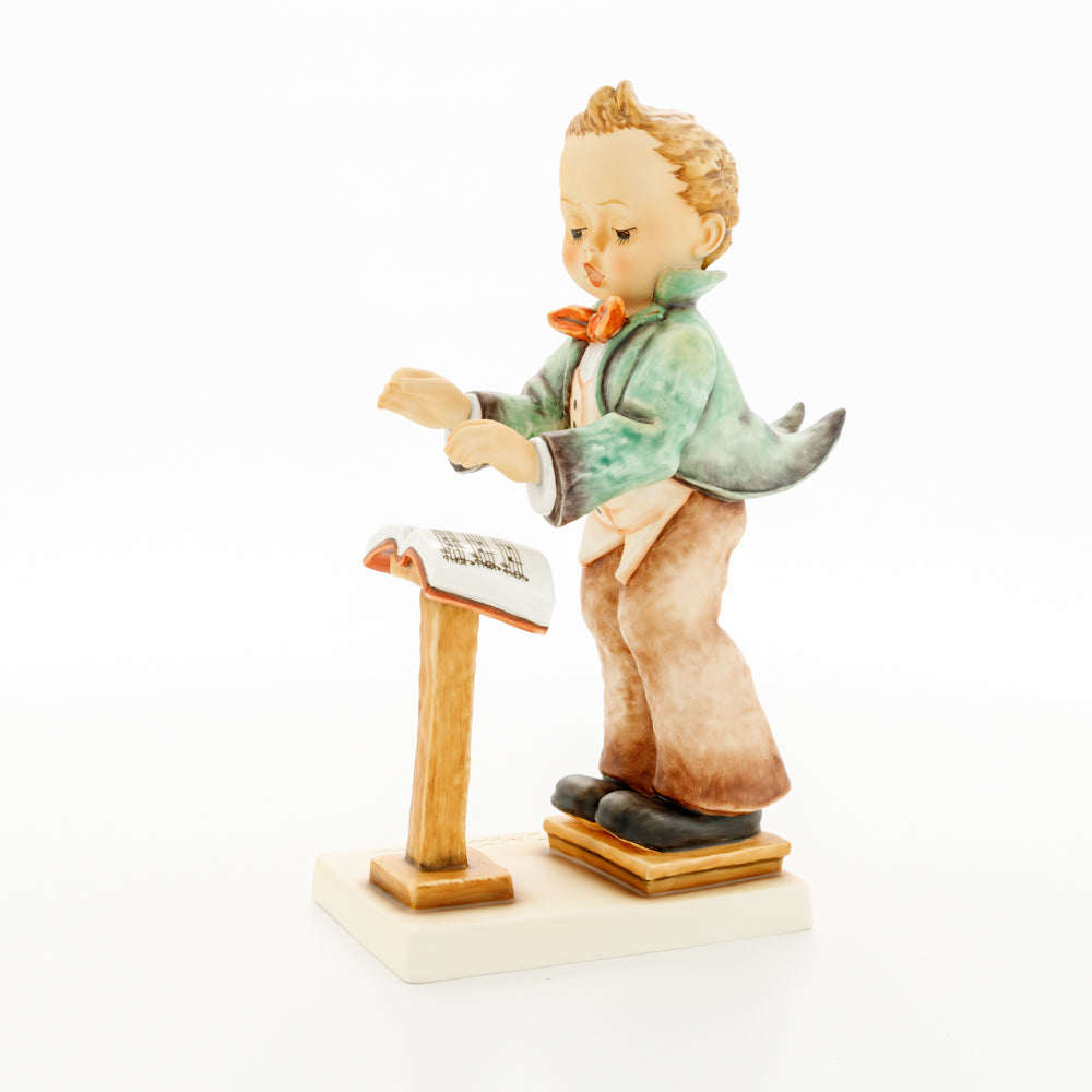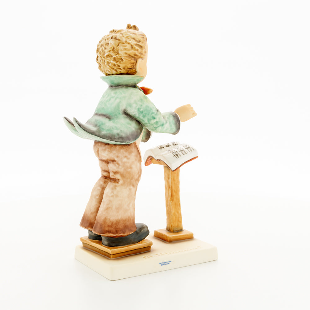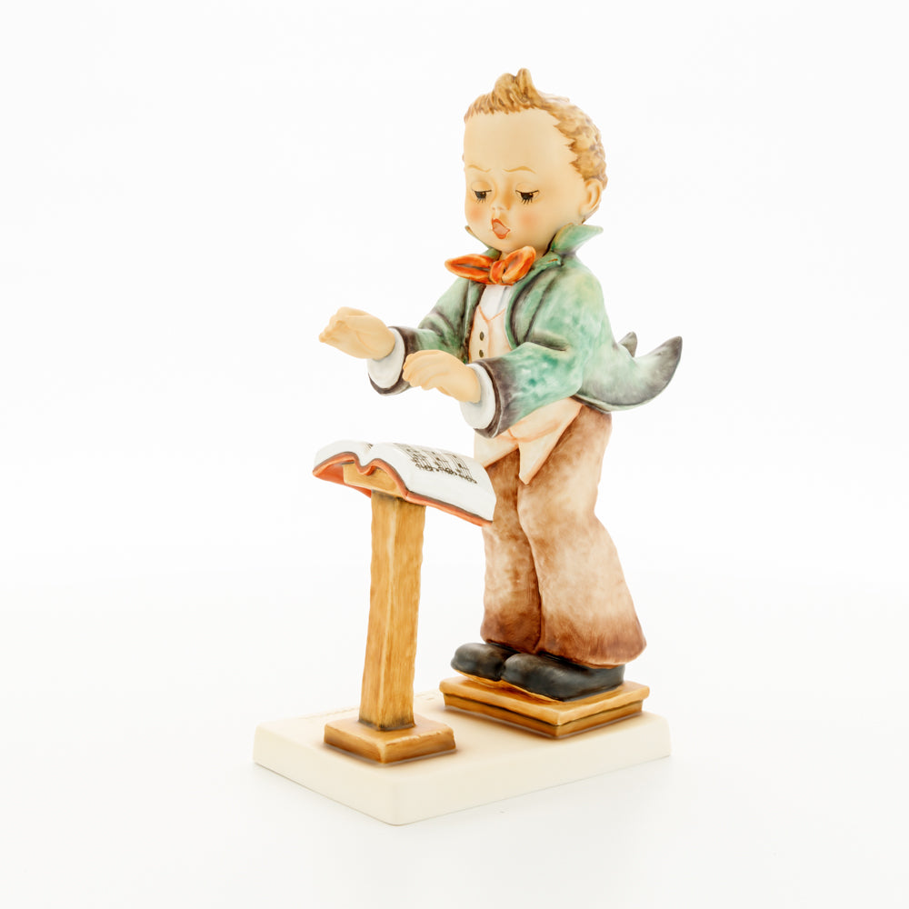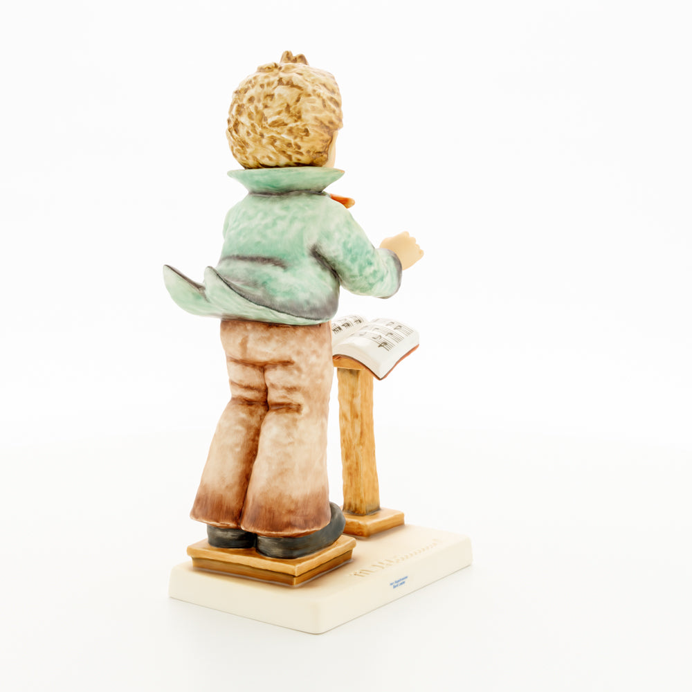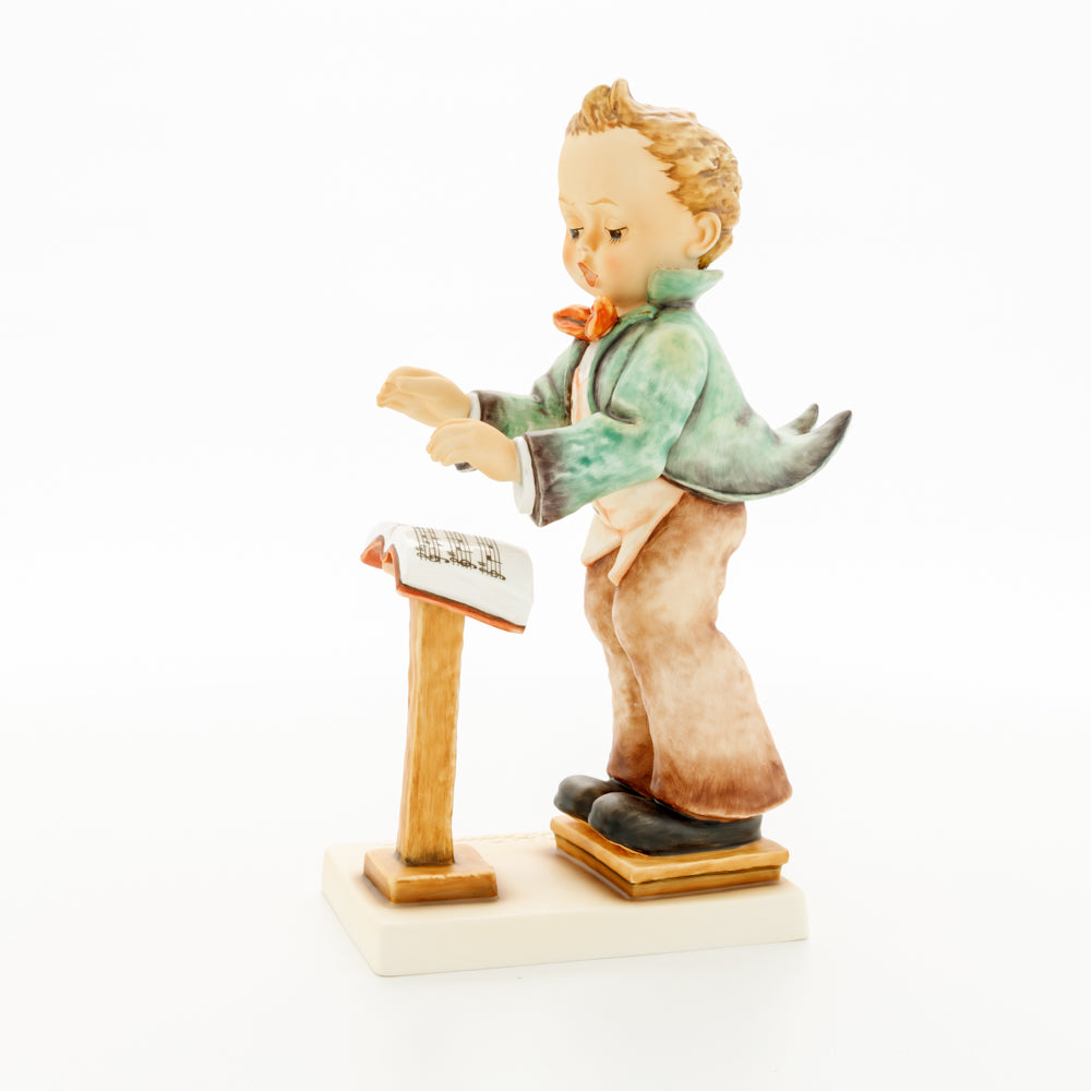 Diese Figur wurde 1939 von Arthus Möller entworfen. Es gibt viele Größen- und Farbvarianten. Sie ist Bestandteil einer Figurensammlung, die zusammen das Hummel-Orchester ausmachen. 1987 kam eine Variante auf den Markt, die Bestandteil der „Kleinen Musikanten“ ist. Über einen Zeitraum von 4 Jahren wurde hierzu jährlich eine Figur herausgebracht. Diese Figur ist die letzte in der Serie.