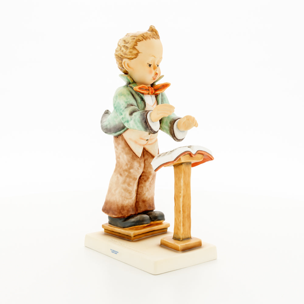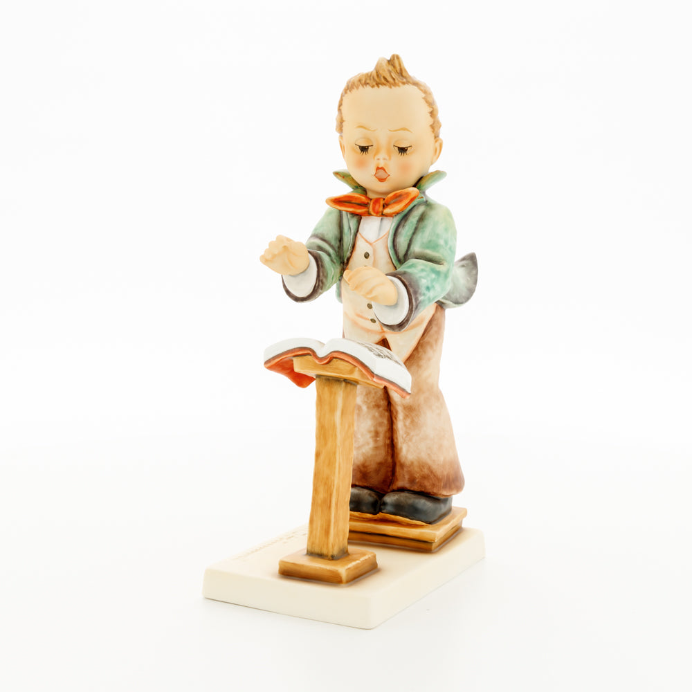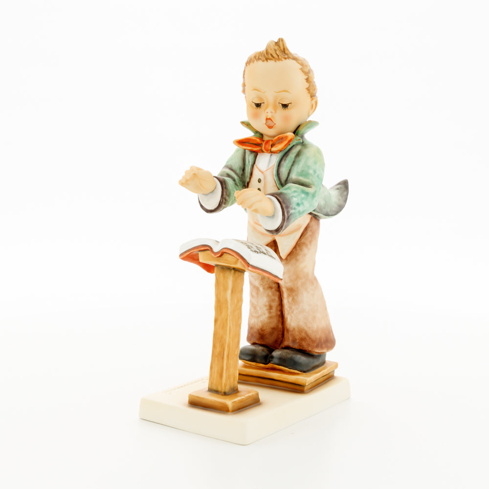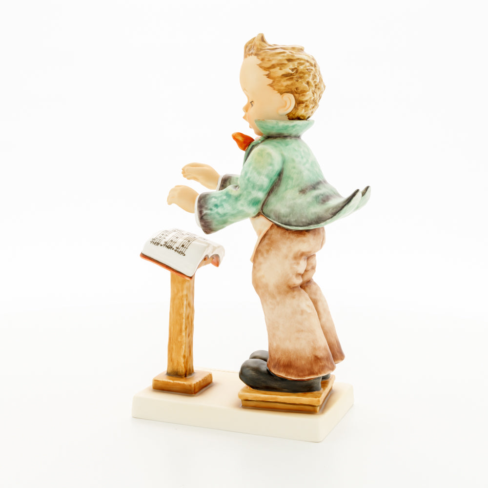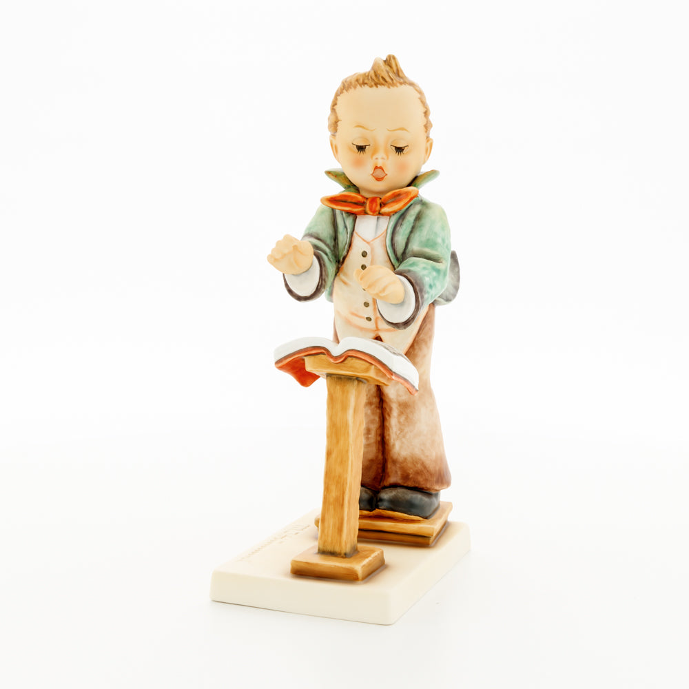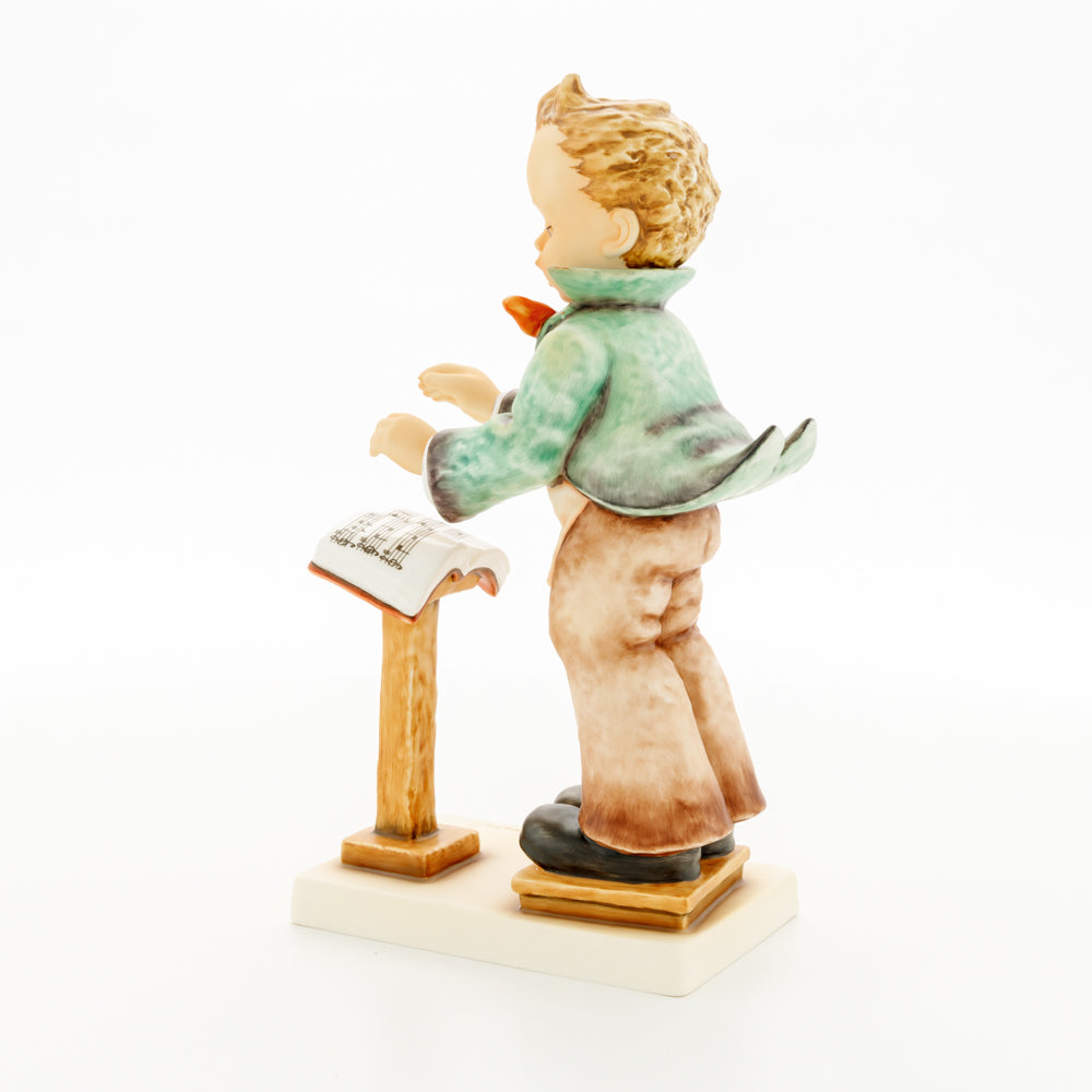 Diese Figur wurde 1939 von Arthus Möller entworfen. Es gibt viele Größen- und Farbvarianten. Sie ist Bestandteil einer Figurensammlung, die zusammen das Hummel-Orchester ausmachen. 1987 kam eine Variante auf den Markt, die Bestandteil der „Kleinen Musikanten“ ist. Über einen Zeitraum von 4 Jahren wurde hierzu jährlich eine Figur herausgebracht. Diese Figur ist die letzte in der Serie.
