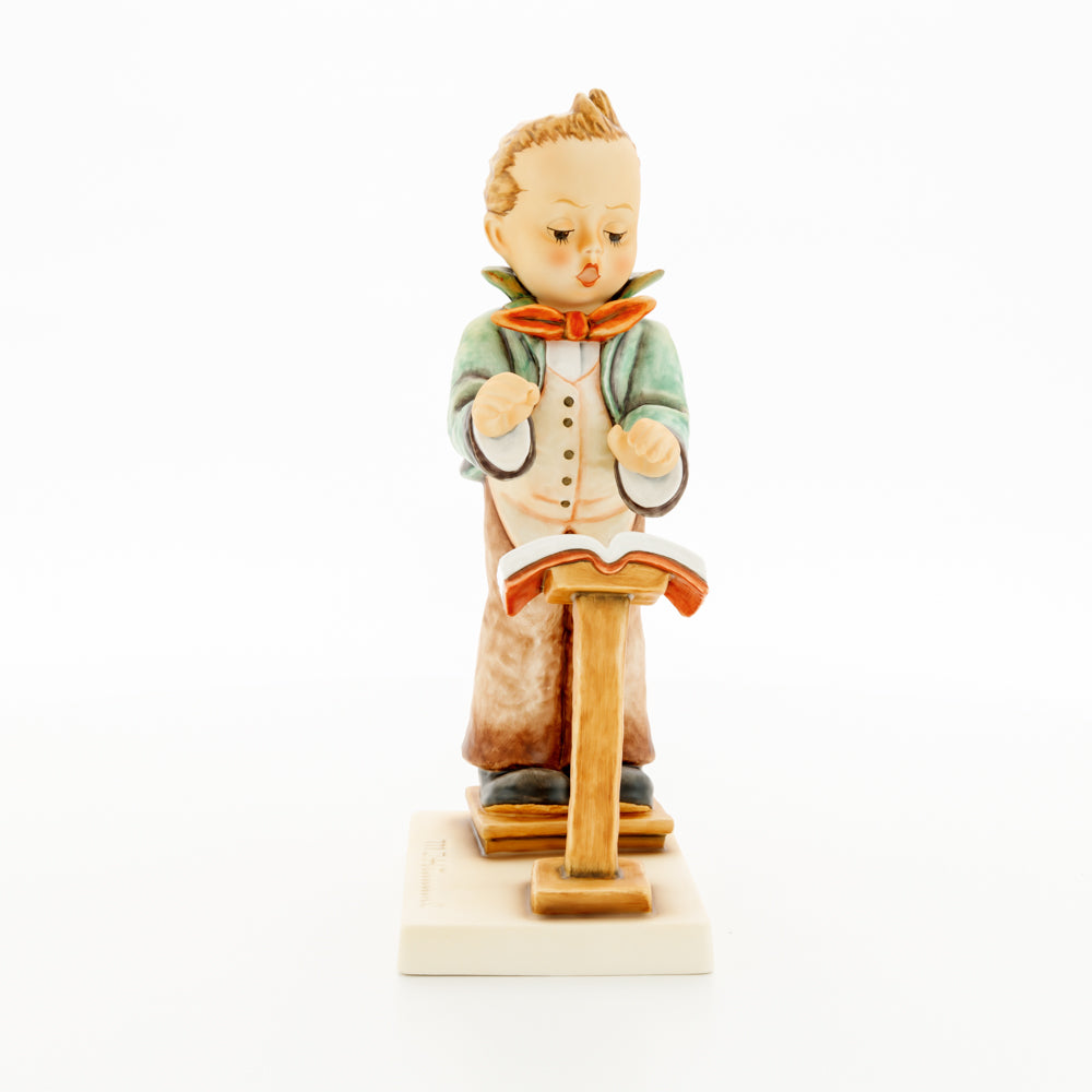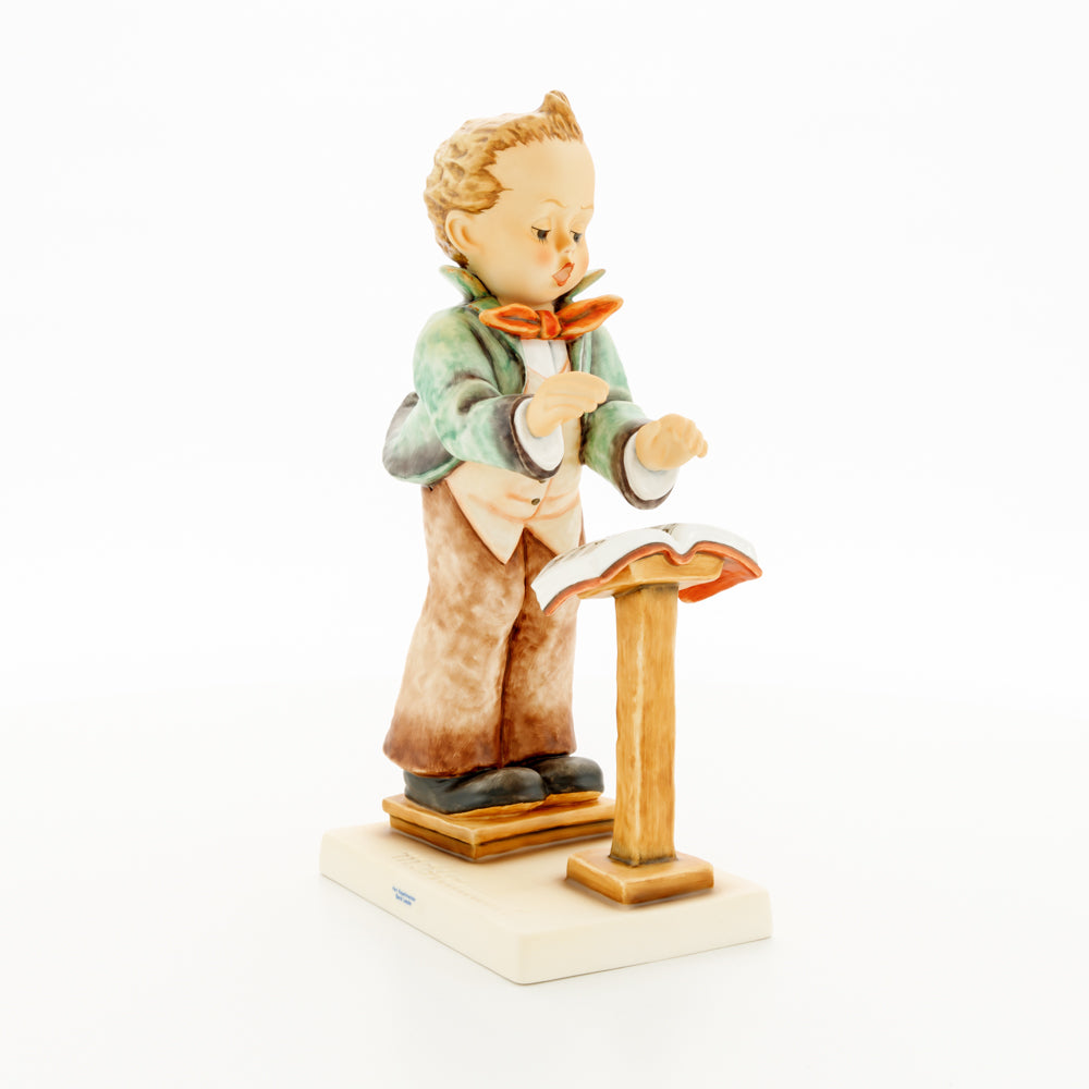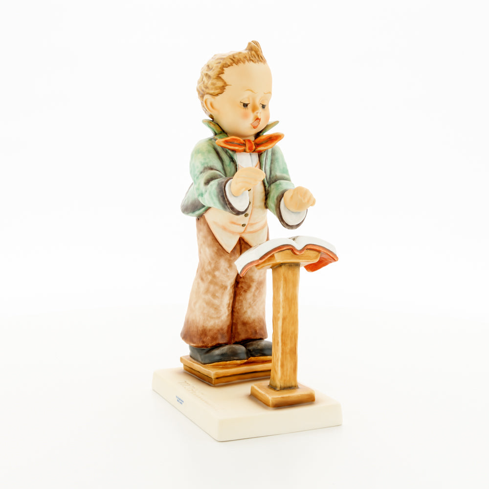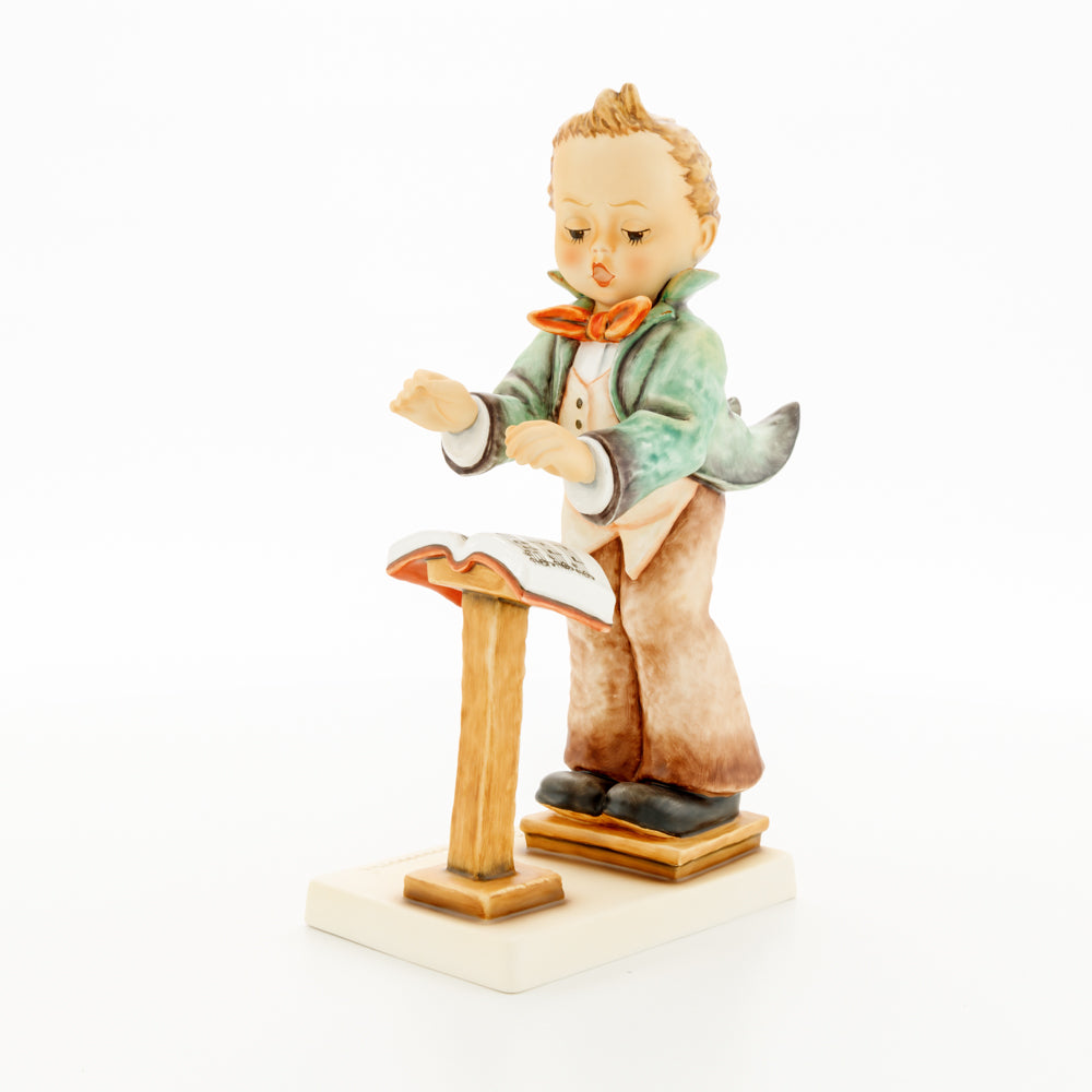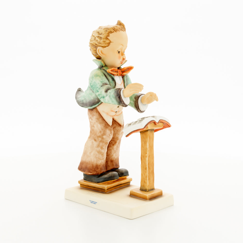 Diese Figur wurde 1939 von Arthus Möller entworfen. Es gibt viele Größen- und Farbvarianten. Sie ist Bestandteil einer Figurensammlung, die zusammen das Hummel-Orchester ausmachen. 1987 kam eine Variante auf den Markt, die Bestandteil der „Kleinen Musikanten“ ist. Über einen Zeitraum von 4 Jahren wurde hierzu jährlich eine Figur herausgebracht. Diese Figur ist die letzte in der Serie.