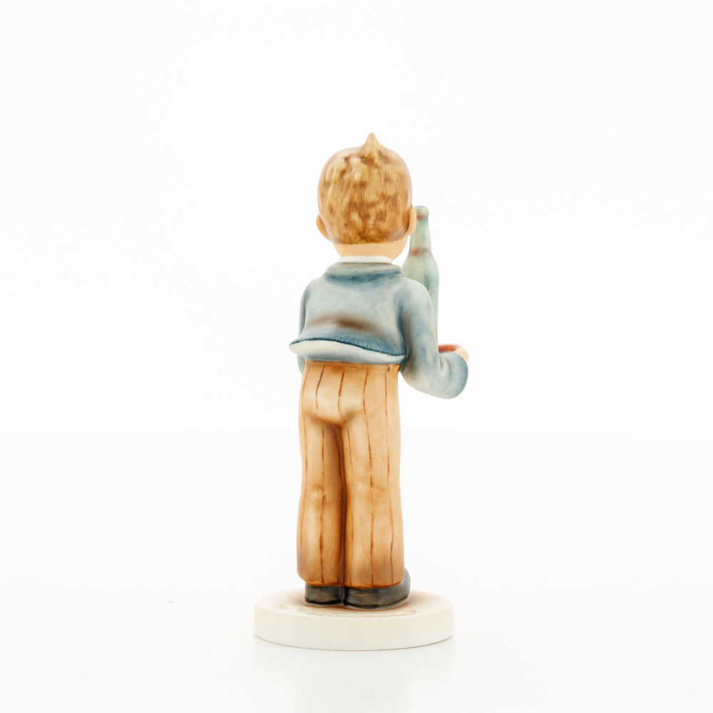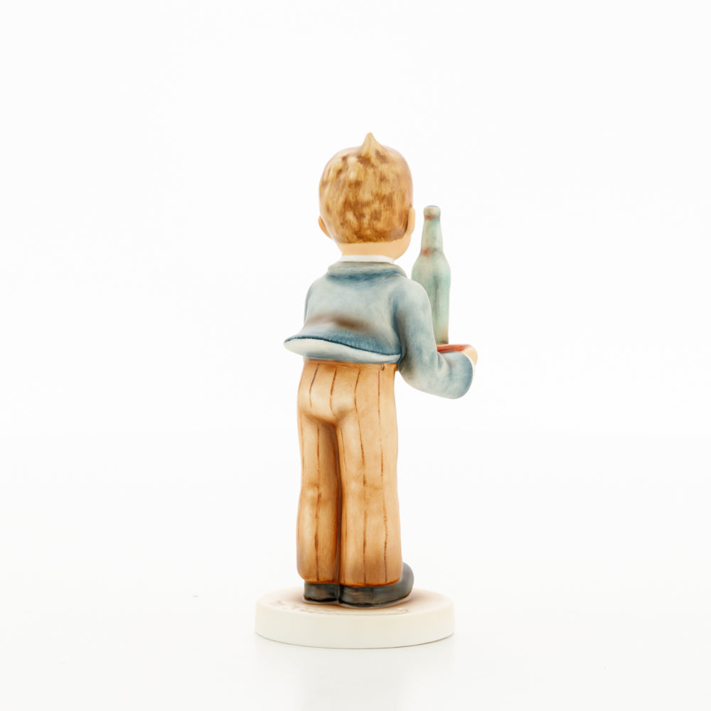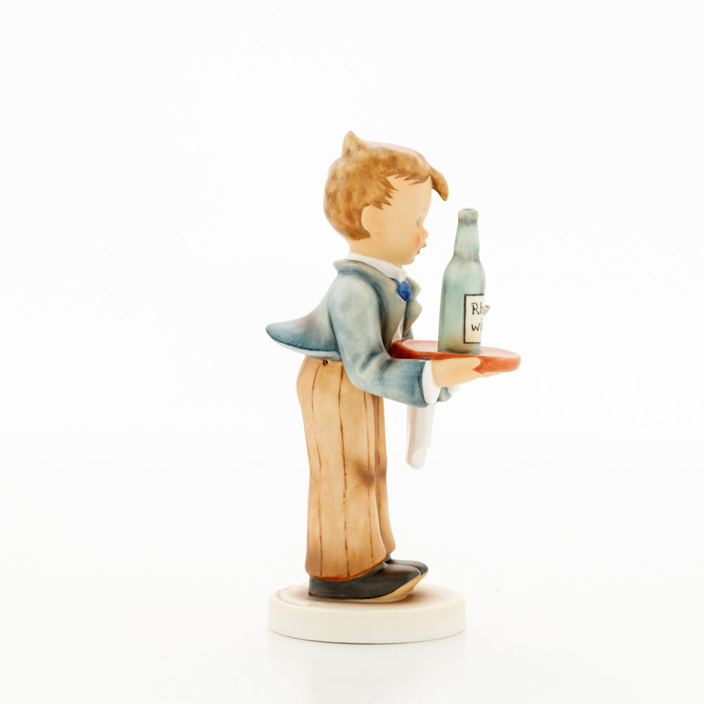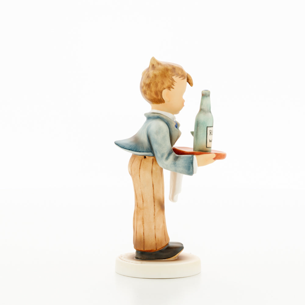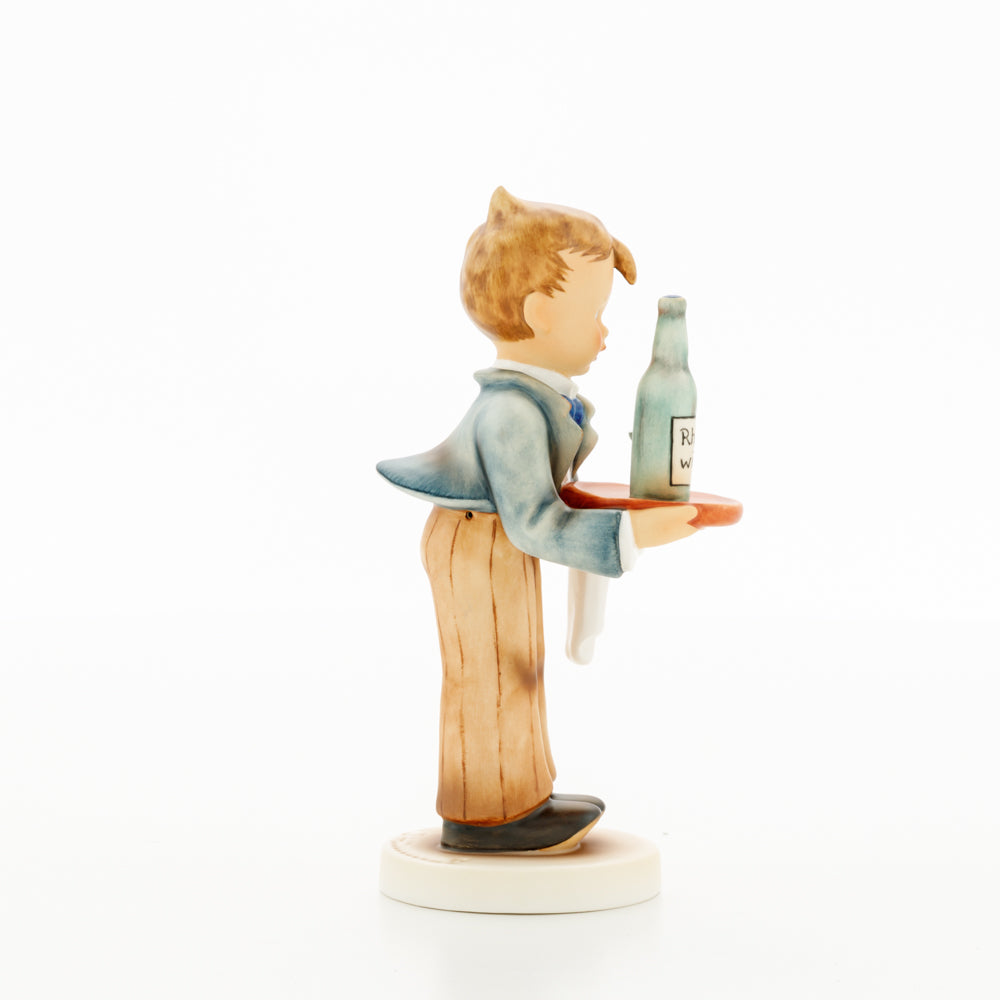 "Bloß nicht fallen lassen!" Vorsichtig und konzentriert trägt der Ober aus der Hummel Manufaktur Rödental das mit Getränken bestückte Tablett zu Tisch. Die original M.I. Hummel-Figur wurde 1943 von Arthur Möller gestaltet und war zunächst mit grauer Jacke und grau gestreifter Hose gekleidet. Anfang der 50er-Jahre wurde die bezaubernde Hummel-Figur "umgekleidet". Denn ab diesem Zeitpunkt war der Ober aus dem Hause Hummel in blauer Jacke und braun gestreifter Hose zu sehen. Darüber hinaus ist der geschäftige Hummel-Bub in zwei verschiedenen Größen erhältlich. Die Hummel-Figur, die ebenfalls nach den original Zeichnungen der Schwester Maria Innocentia Hummel gestaltet wurde, ist ein ideales Geschenk zur bestandenen Prüfung der Berufsschule oder aber auch zum Renteneintritt für Personen, die in dem entsprechenden Beruf gearbeitet haben.