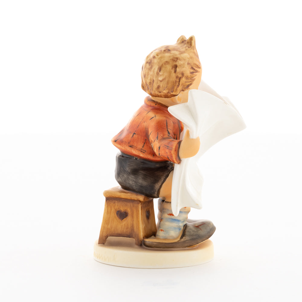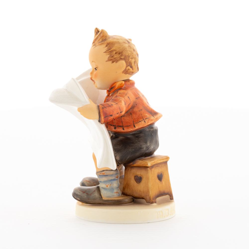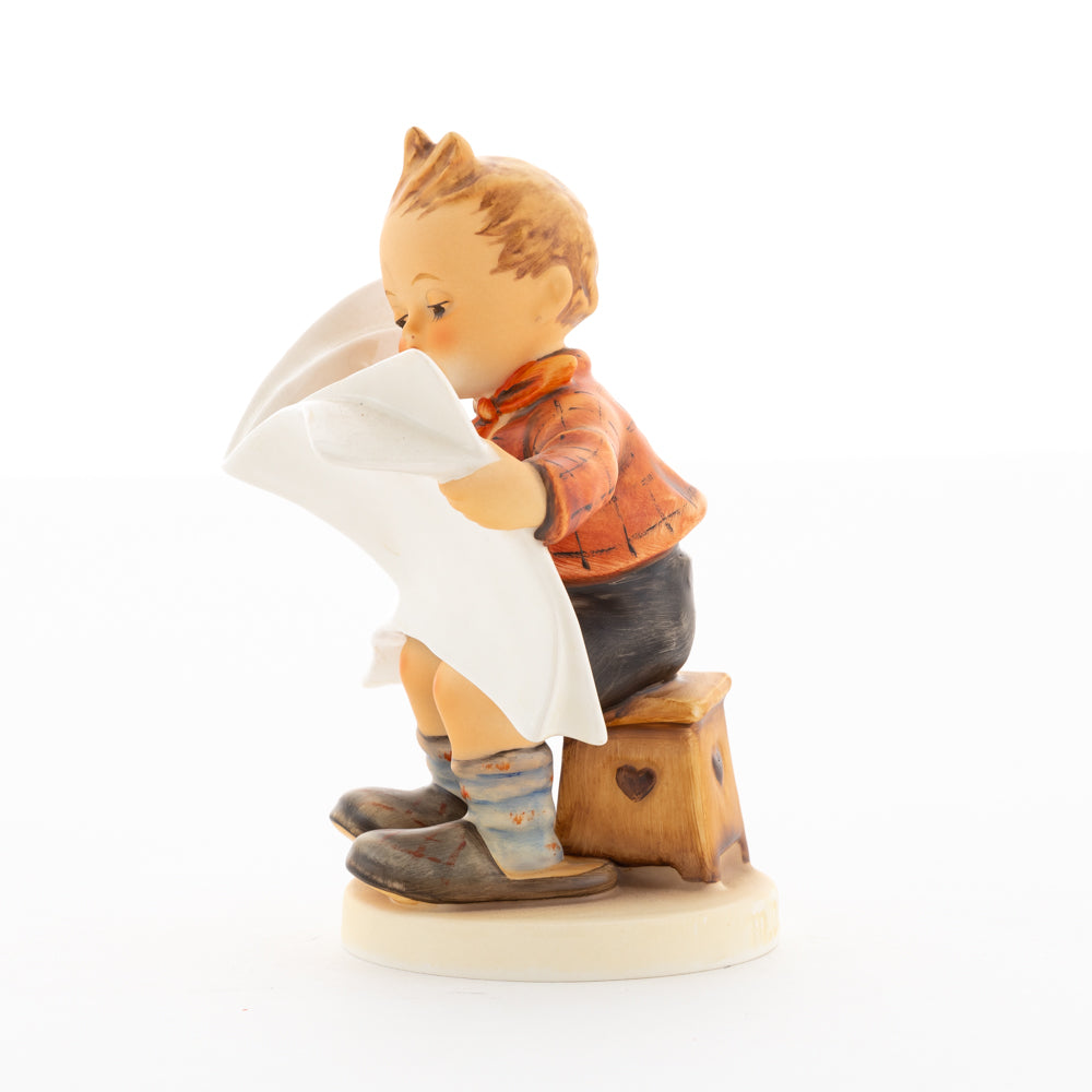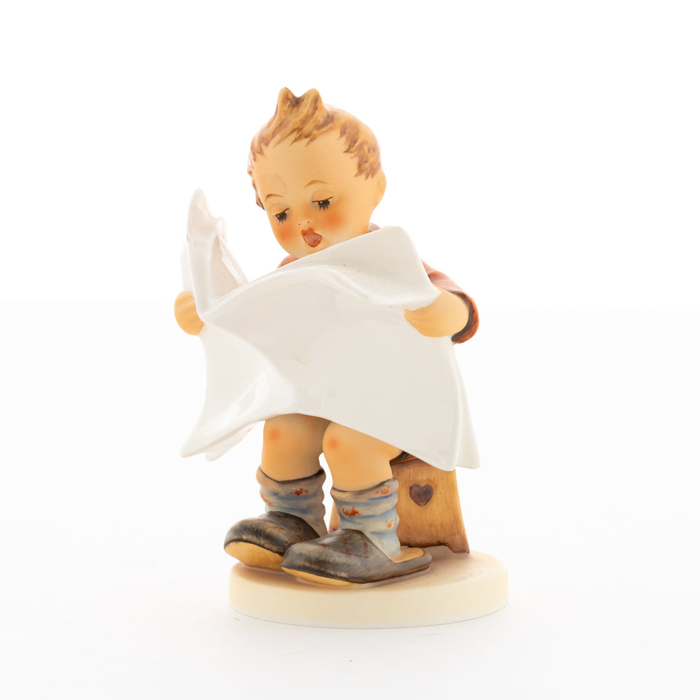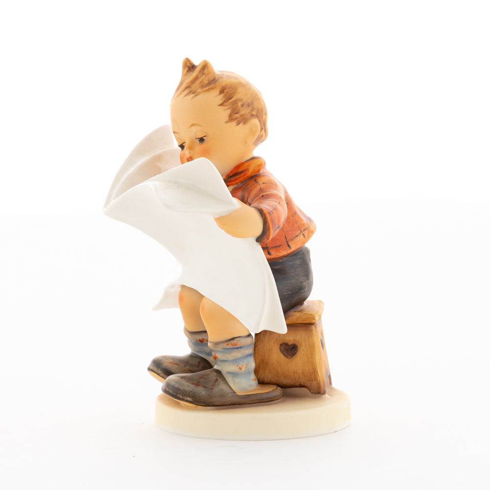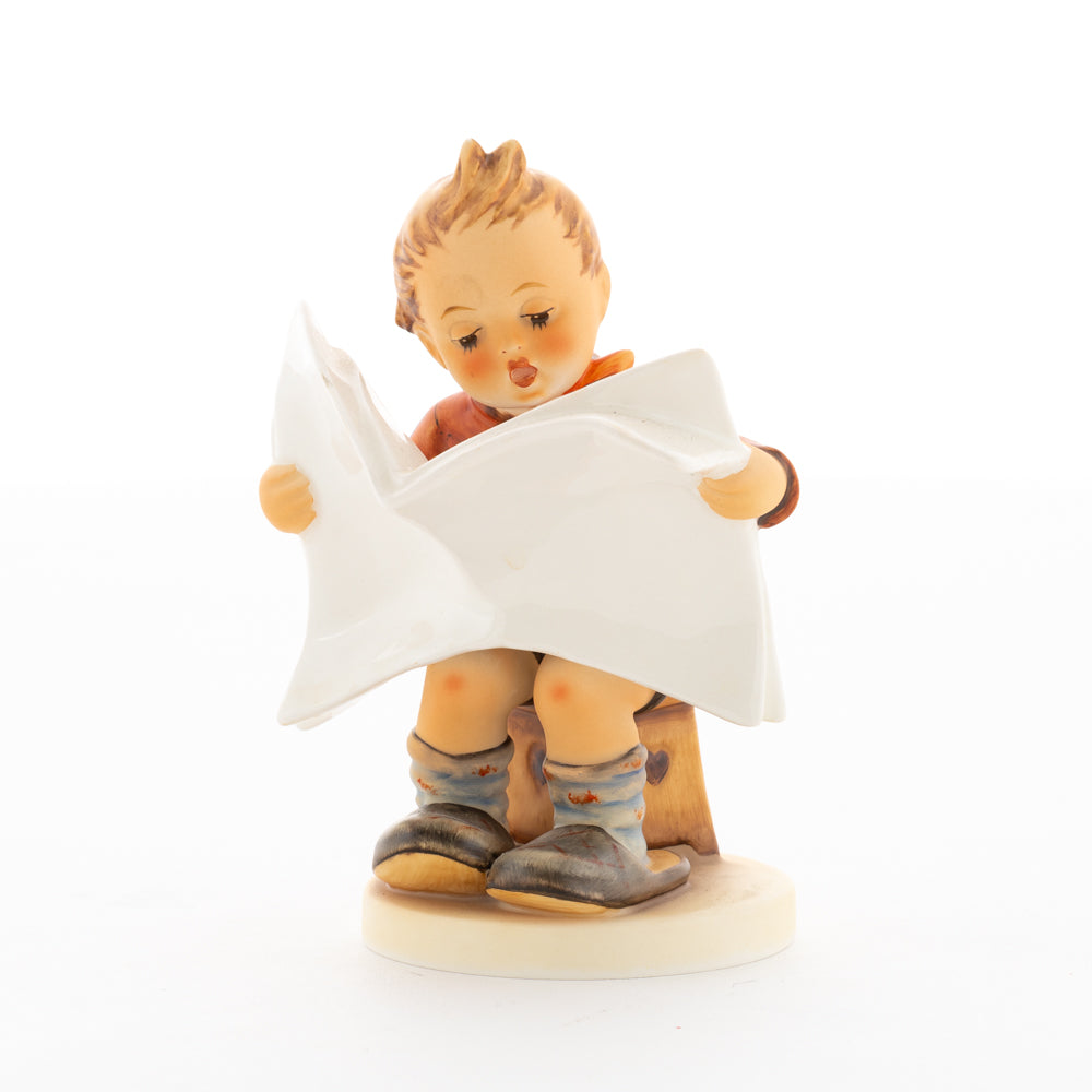 Was wohl heute in der Zeitung steht? Äußerst aufmerksam studiert der kleine Hummel-Bub die neuesten Nachrichten. Meistermodelleur Arthur Möller erschuf die original M.I. Hummel-Figur mit dem Namen "Das Allerneuste" im Jahr 1946. Das Besondere an dieser Hummel-Figur ist, dass sie sich - wie zahlreiche andere Figuren aus der Hummel Manufaktur - individuell beschriften lässt. Nutzen Sie die Möglichkeit, den Namen der Zeitung von unseren Malern individuell formulieren zu lassen. Ob Sie sich für "Das Allerneueste", "Hummel-Post", "Berliner Runde" oder "Münchner Anzeiger" entscheiden - die Auswahl treffen Sie. Vielleicht heißt die Zeitung auch nach dem Beschenkten "Post für Max" oder "Gretel-Kurier"? Bestellen Sie Ihre persönliche Gravur für 20 Euro einfach dazu.