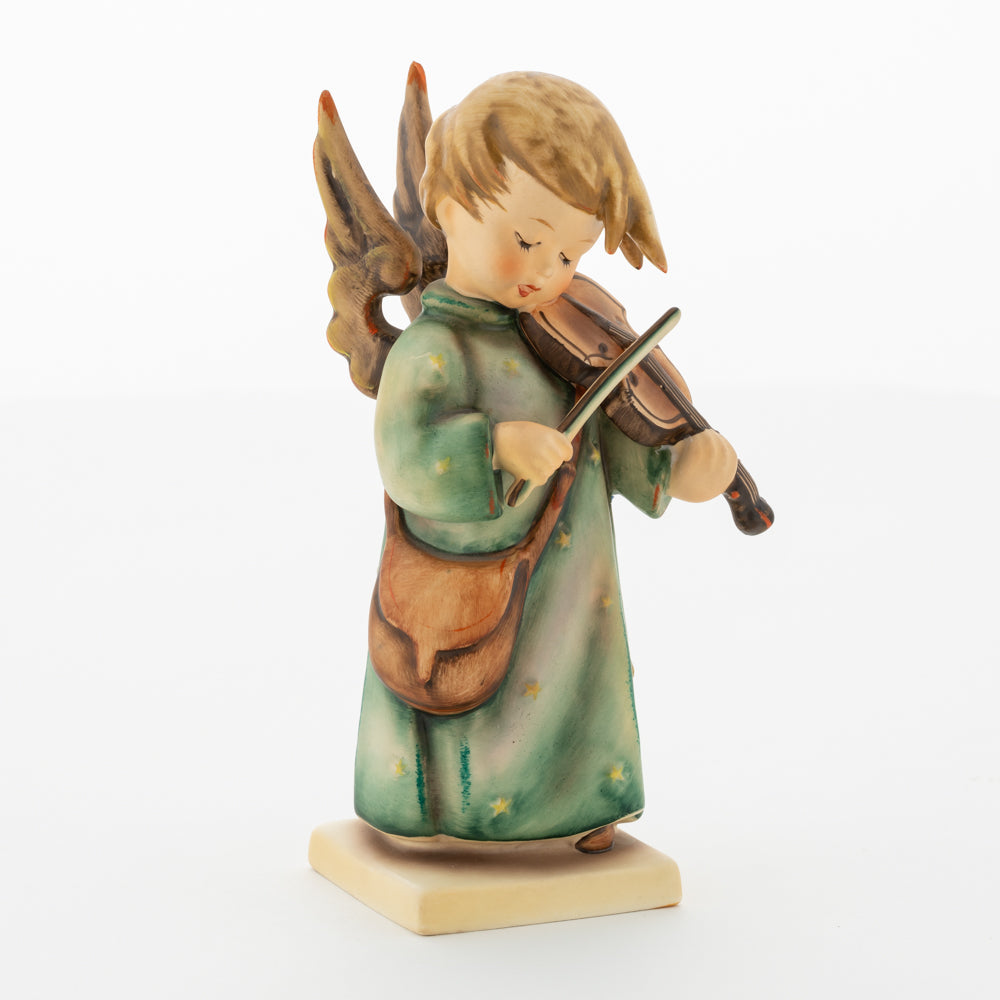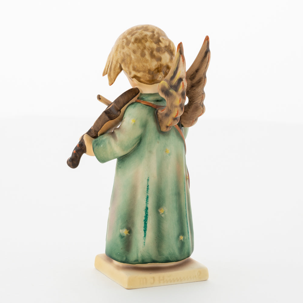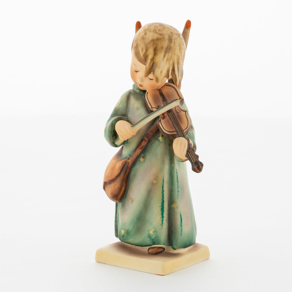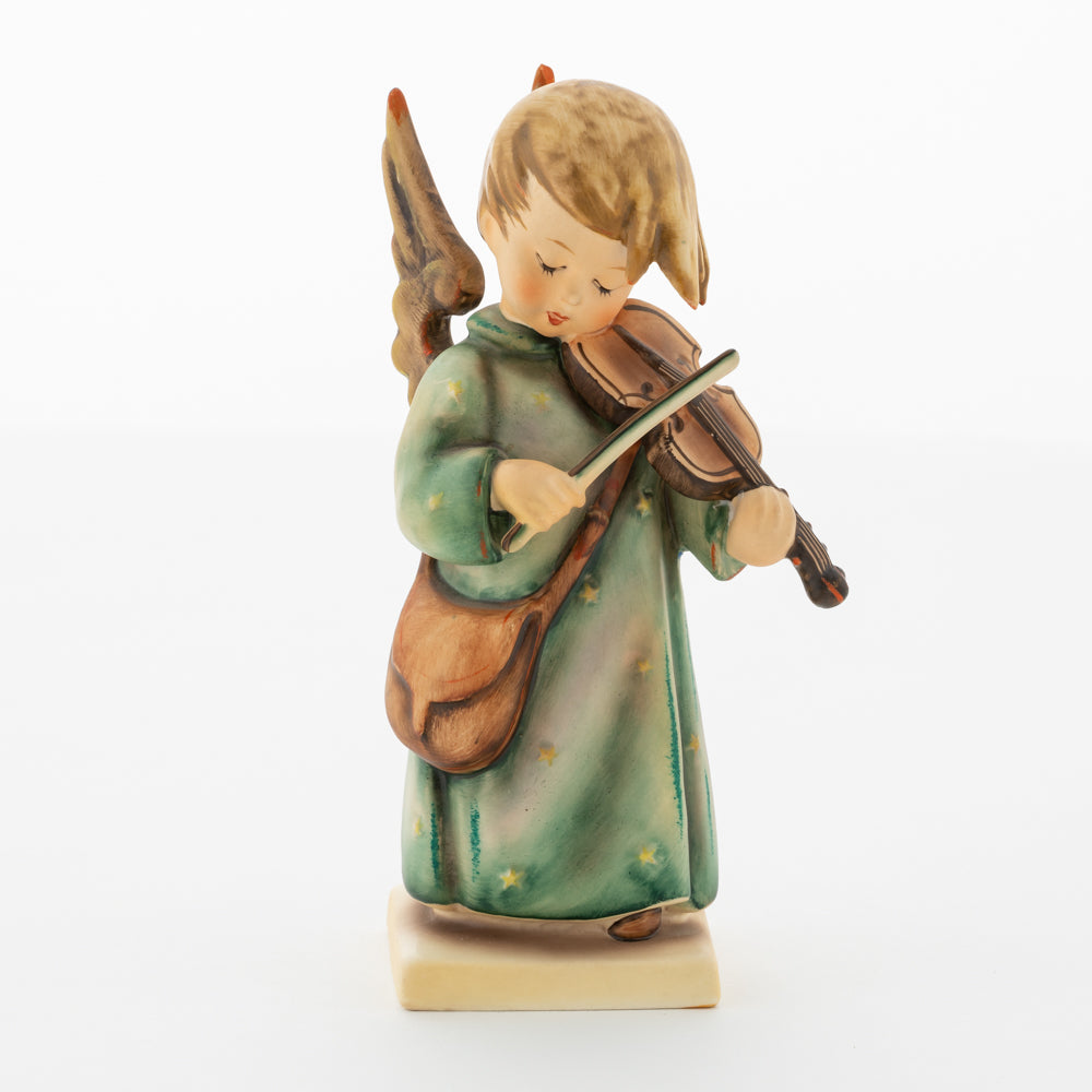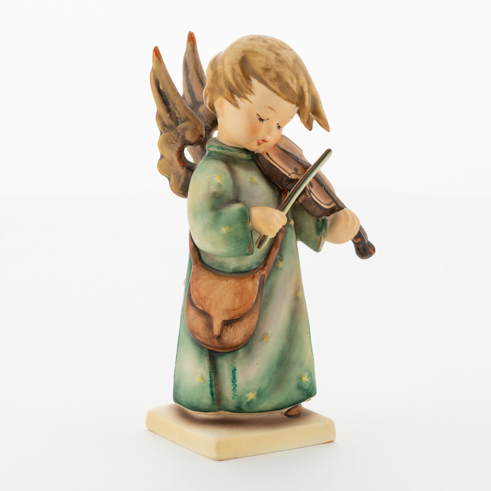 Wunderbar ergänzt wird „Himmlische Klänge“ von der Figur „Weihnachtslied“ (HUM 343/I) – der kleine Engel mit dem roten Gewand singt voller Elan sein Lied. Weitere Hummel-Figuren, die den Zauber der Weihnachtszeit mittels Engeln darstellen, sind unter anderem „Stille Nacht“ (HUM 261 2/0) oder „Klangvolles Duett“ (HUM 2096/Q).