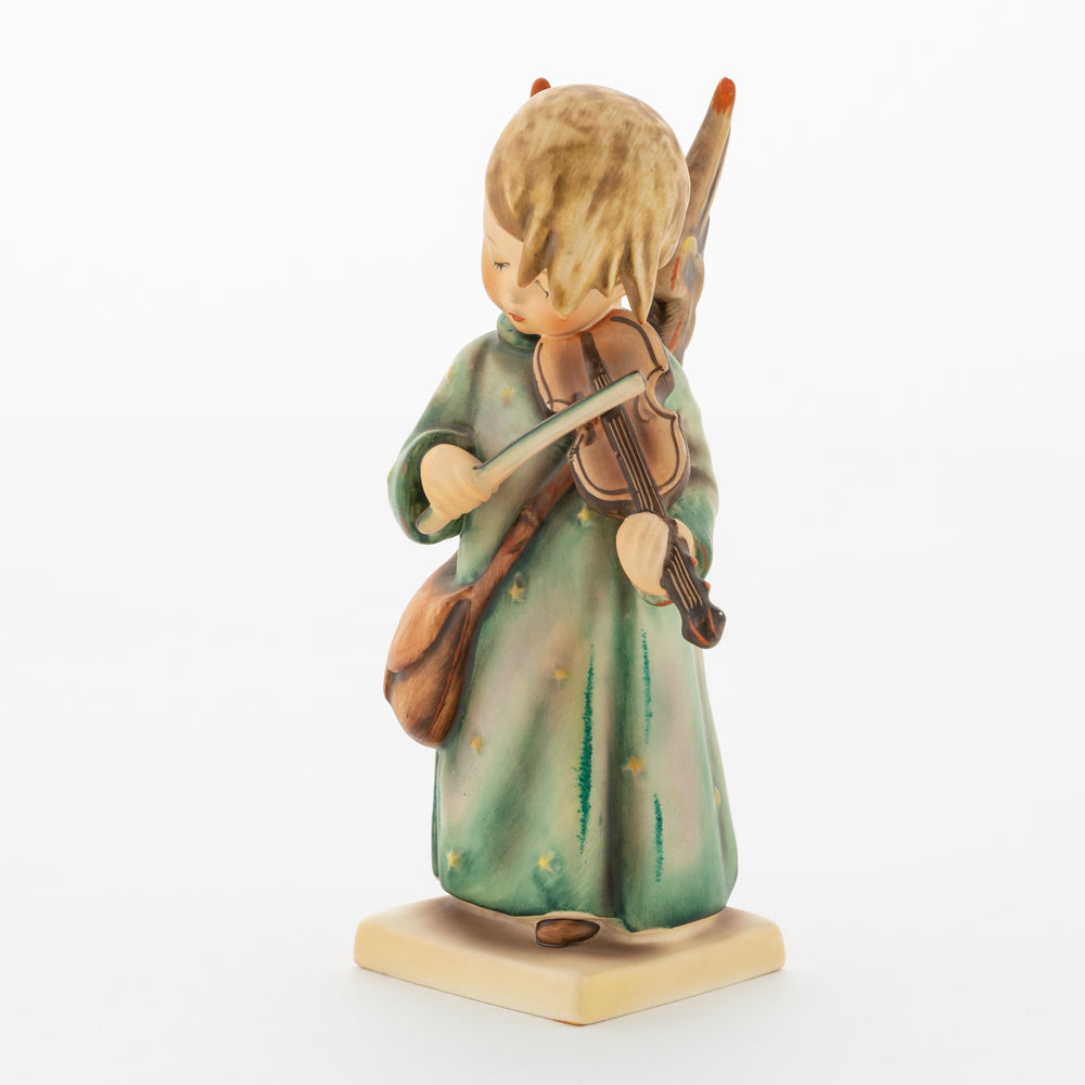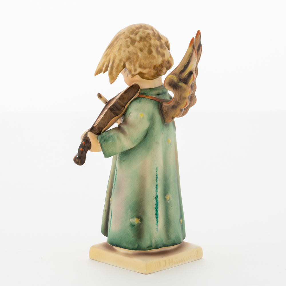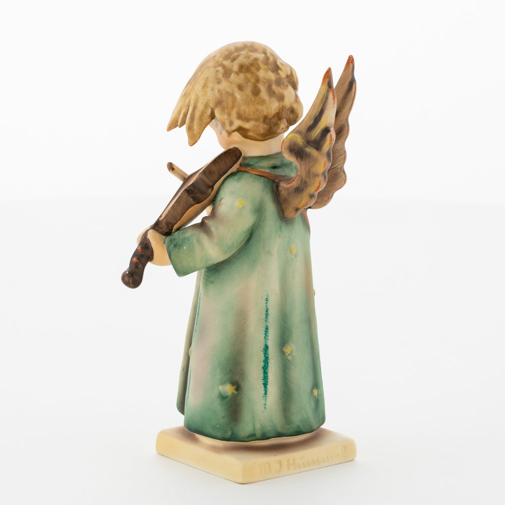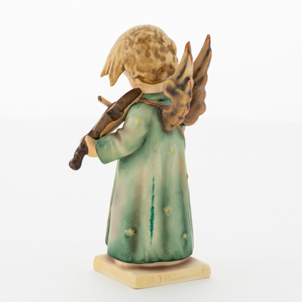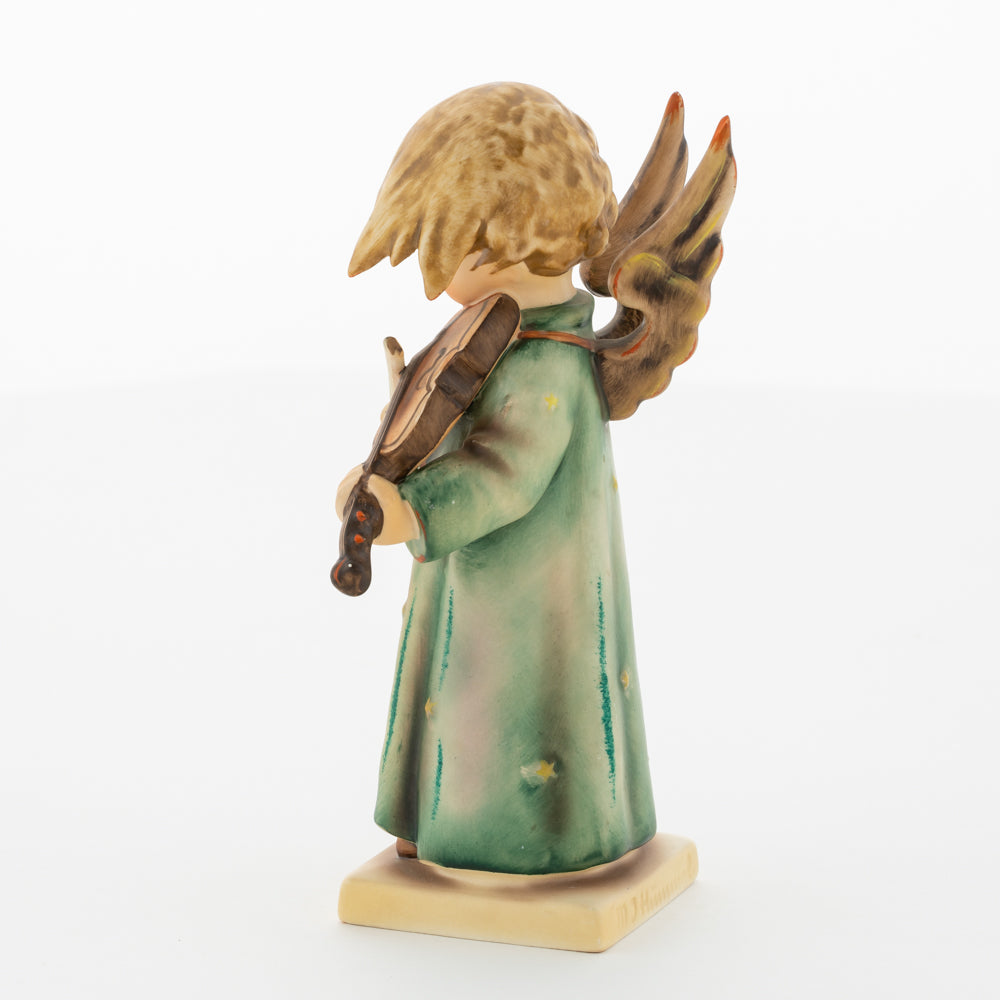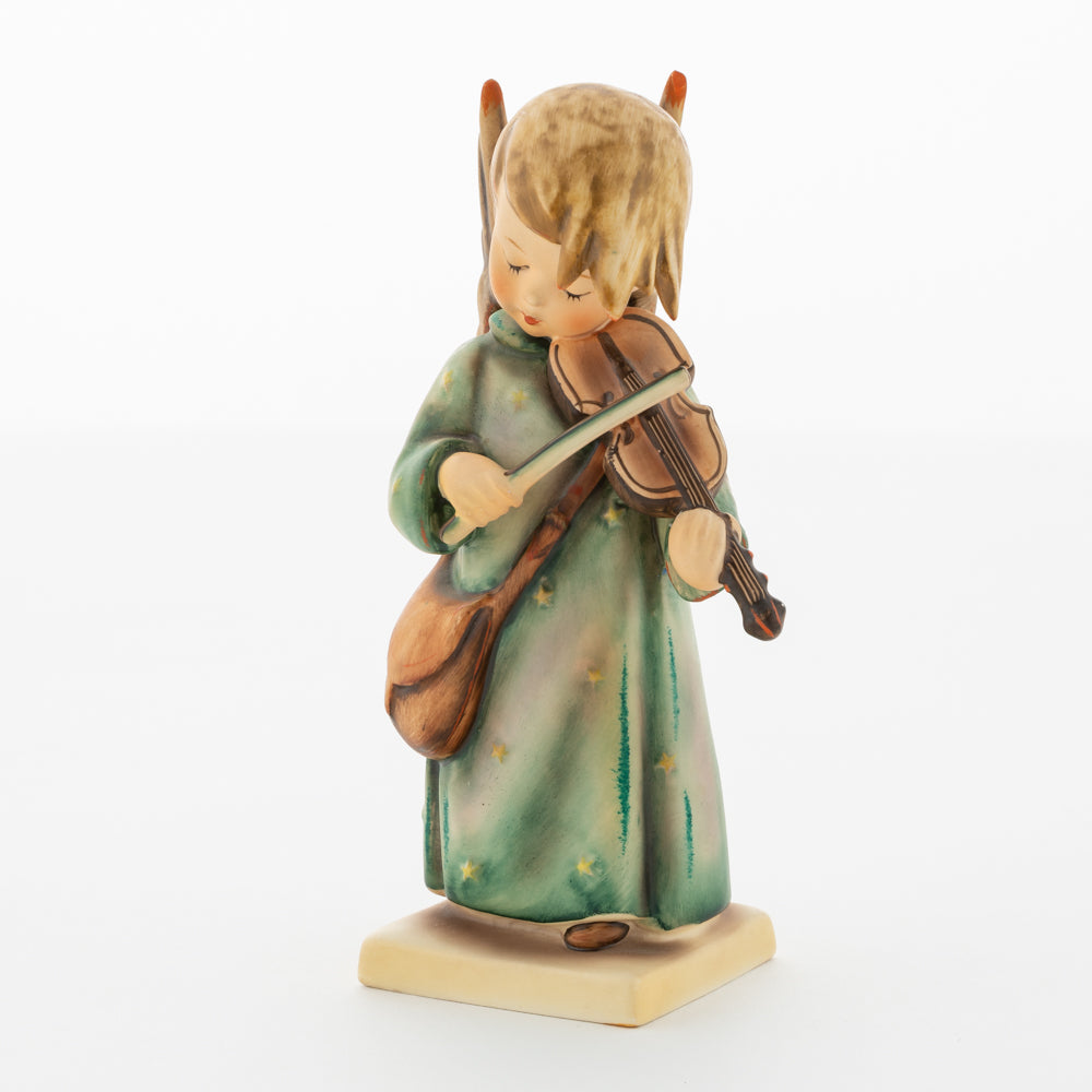 Wunderbar ergänzt wird „Himmlische Klänge“ von der Figur „Weihnachtslied“ (HUM 343/I) – der kleine Engel mit dem roten Gewand singt voller Elan sein Lied. Weitere Hummel-Figuren, die den Zauber der Weihnachtszeit mittels Engeln darstellen, sind unter anderem „Stille Nacht“ (HUM 261 2/0) oder „Klangvolles Duett“ (HUM 2096/Q).