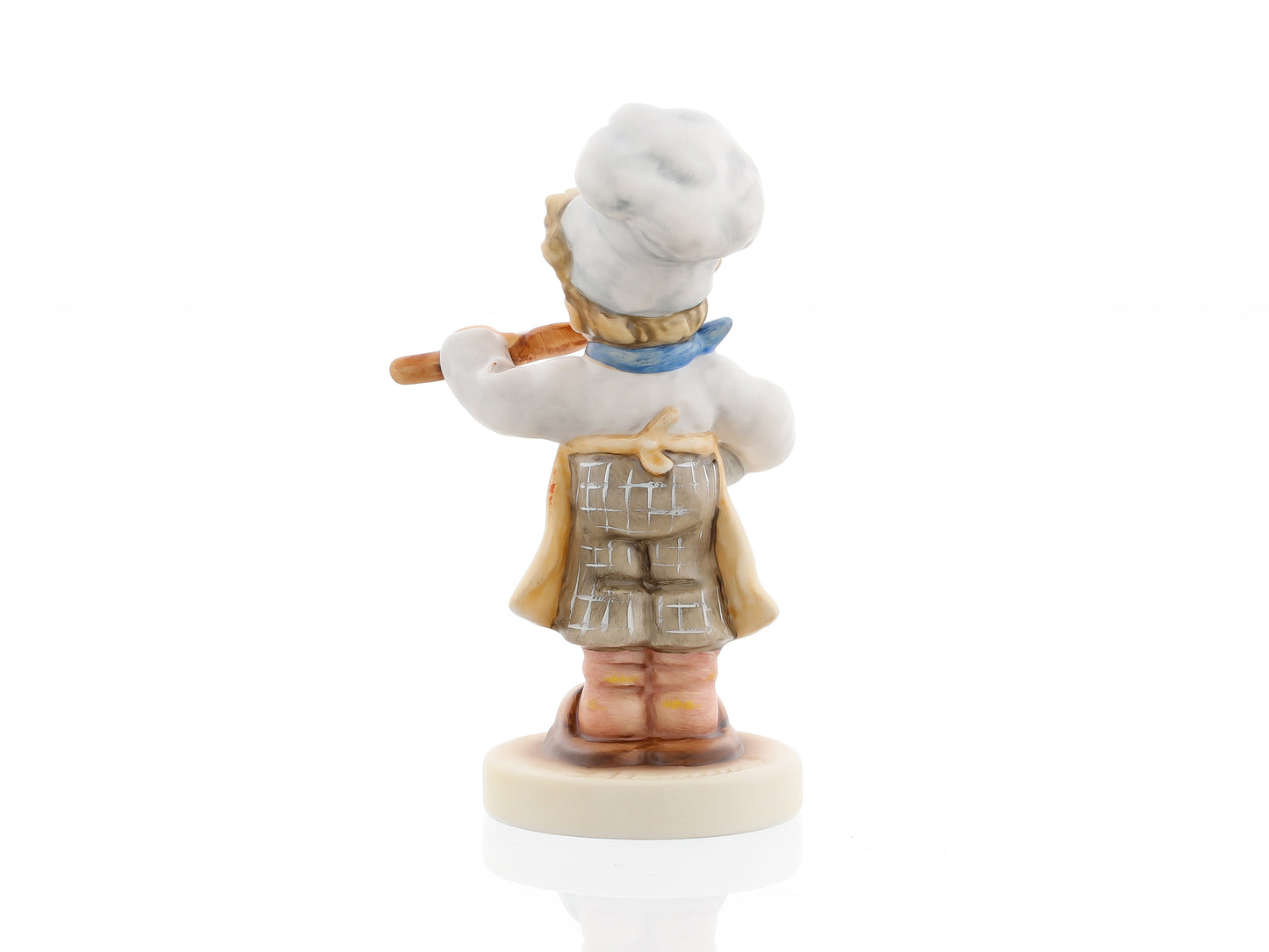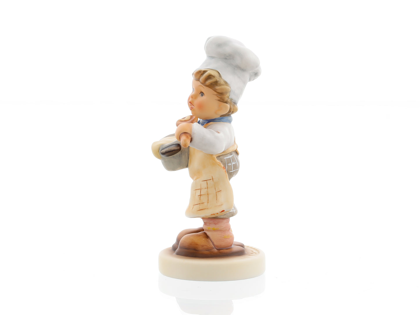 Gewidmet ist diese Hummel-Figur dem fränkischen Sternekoch Alexander Herrmann. Der mit zwei Michelin-Sternen ausgezeichnete Koch aus Wirsberg und die Hummel Manufaktur aus Rödental vereinen fränkische Heimatliebe in dieser Figur. Ausgestattet mit Kochmütze und Kochlöffel schmeckt der „Meisterkoch“ gerade seine nächste Köstlichkeit ab.