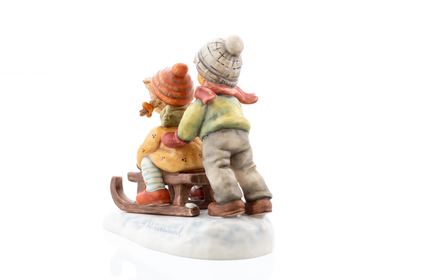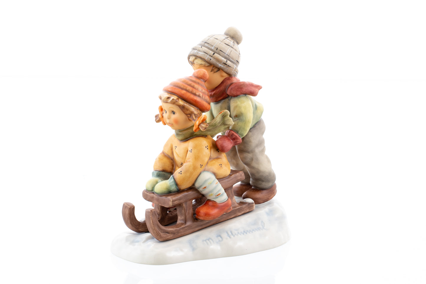 Mit keinem anderen lässt es sich so gut Schlitten fahren wie mit dem großen Bruder. So geht es zumindest unserem kleinen winterbegeisterten Hummel-Mädchen. Beide Hummel-Kinder sind dick eingepackt und haben vom vielen Schlittenfahren bereits ganz rote Wangen bekommen. Aber aufgepasst, kleines Madla, halte dich gut fest! Dein großer Bruder gibt dir mächtig Anschub. Und wer weiß? Vielleicht schwingt er sich ja selbst auch noch auf den Schlitten.