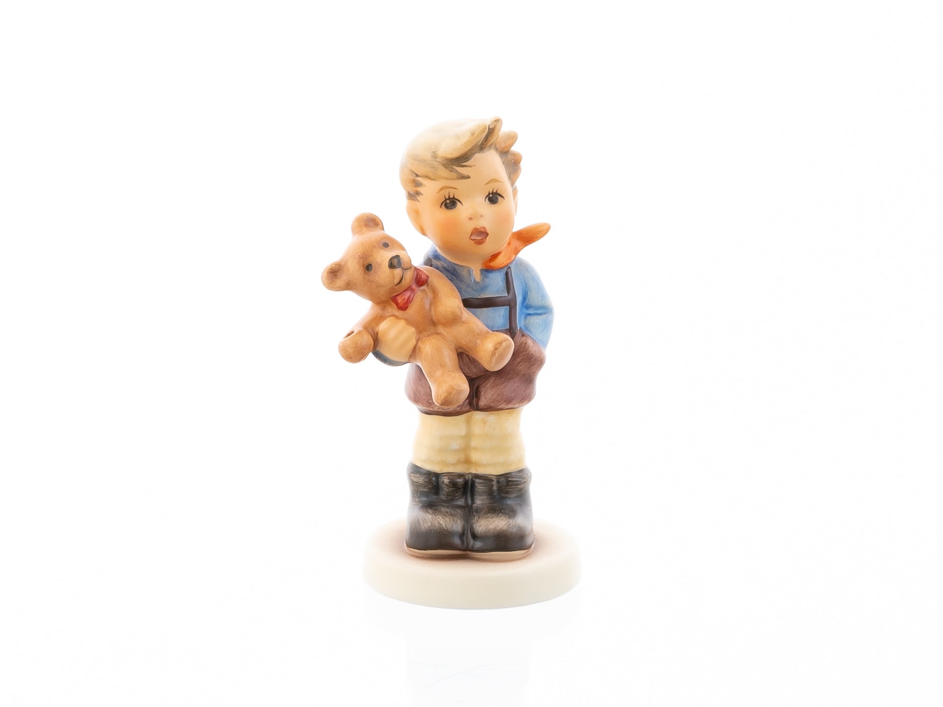 So geht es auch unserem blonden Hummel-Bub, der seinen Teddybären ganz fest im Arm hält. Wie sein plüschiger Freund trägt auch er ein rotes Halsband. Welche Geschichten er seinem Lieblingskuscheltier wohl anvertraut? Lassen Sie sich von dem leicht erschrockenen Gesichtsausdruck und den etwas geröteten Wangen nicht beirren: Auf die nächste Reise nimmt der Blondschopf seinen Gefährten ganz sicher mit.