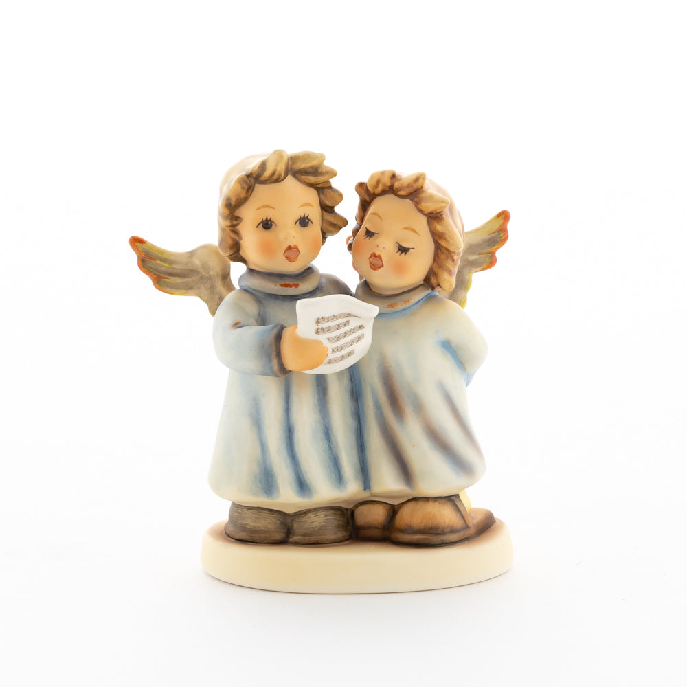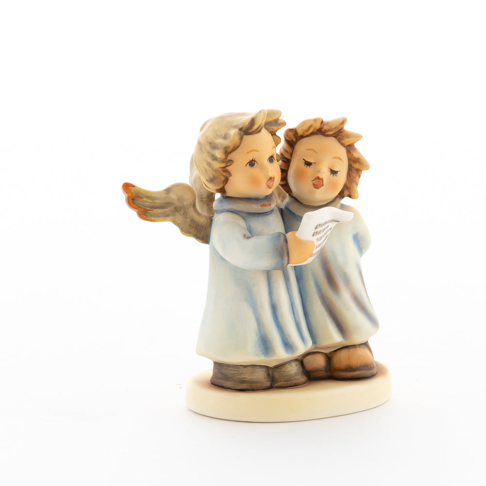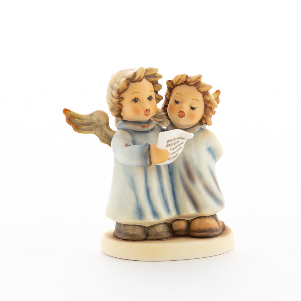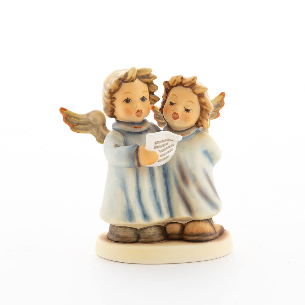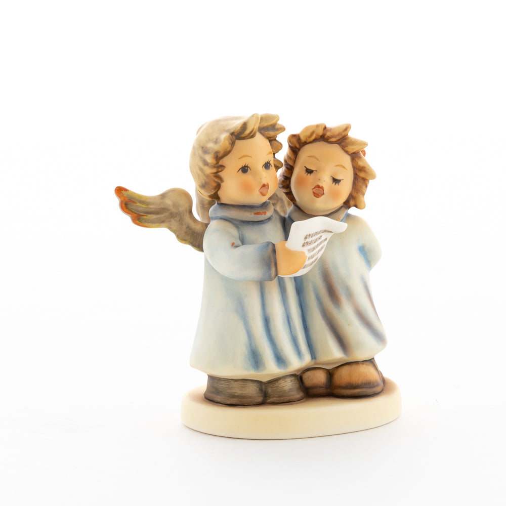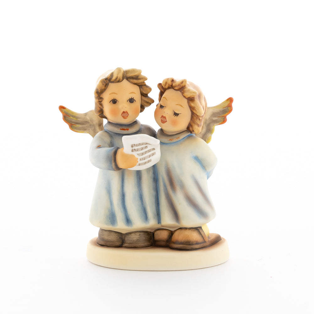Welch goldene Stimmen – man kann sie beinahe hören! Diese zwei Engelchen, 1999 von Helmut Fischer modelliert, singen gemeinsam in ihren blauen Gewändern. Das Notenblatt fest in der Hand lauschen sie der himmlischen Melodie und machen sie mit ihren glockenklaren Stimmen vollkommen. Sogar die kleinen Noten sind auf dem Liederzettel verewigt. Darüber hinaus liegt besonderes Augenmerk auf den Flügeln der beiden Engel, die mit roten Details versehen wurden. Beim Anblick der beiden Figuren entsteht definitiv besinnliche Stimmung.