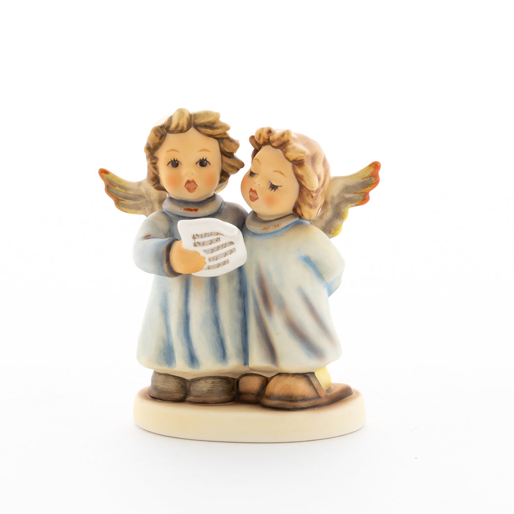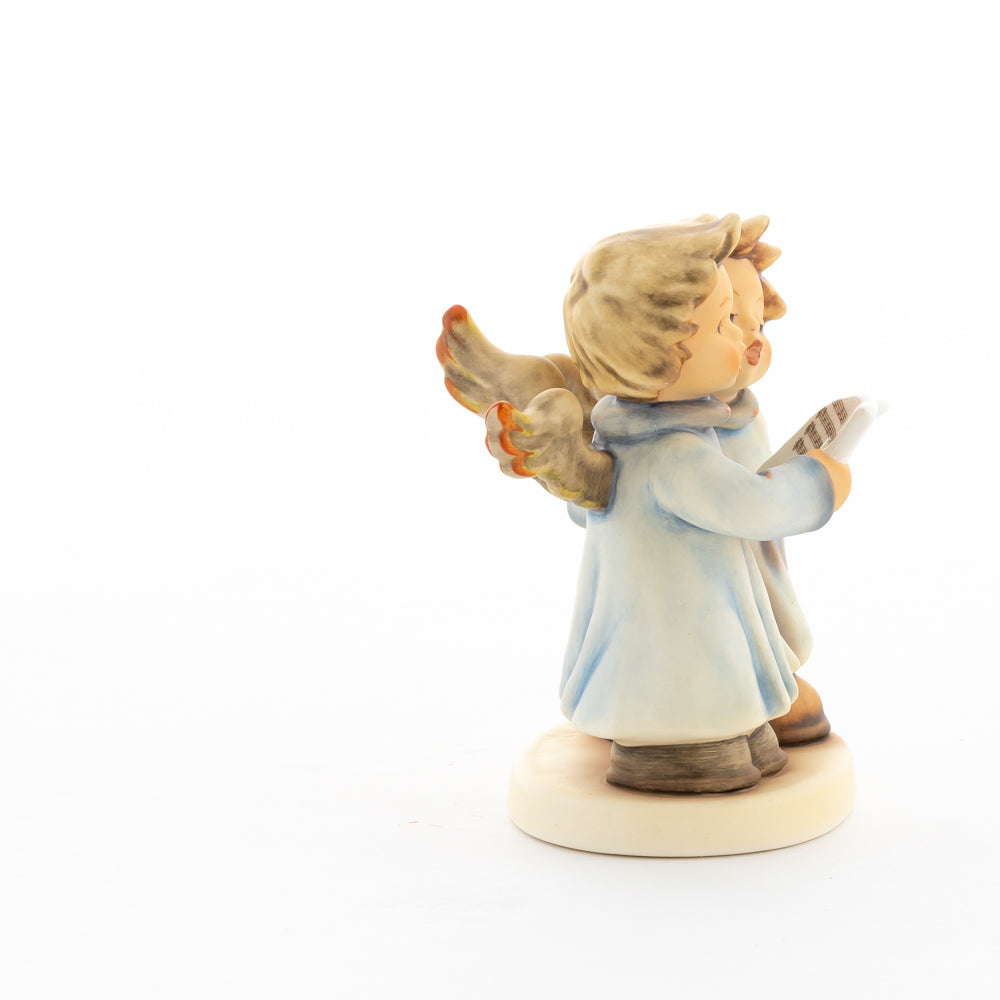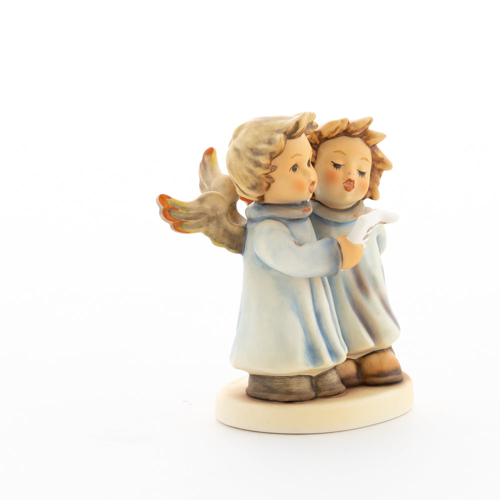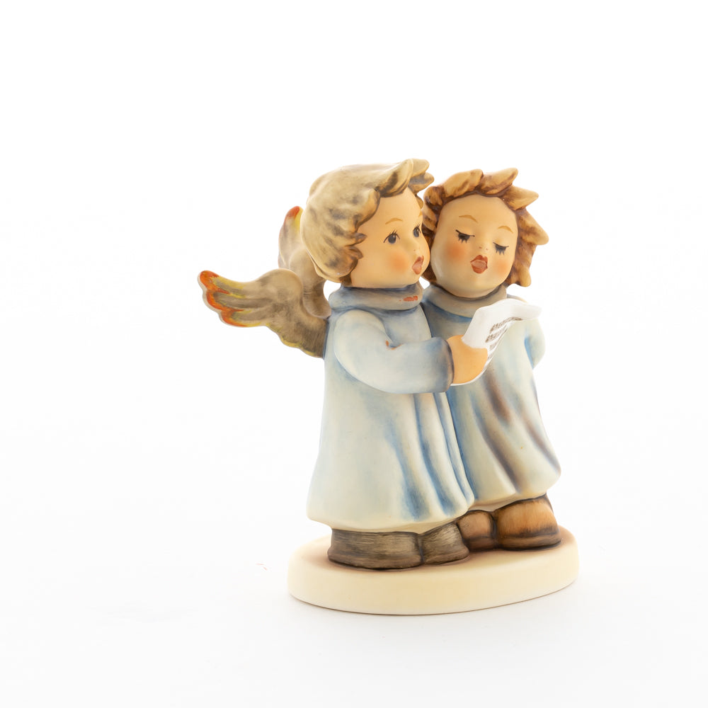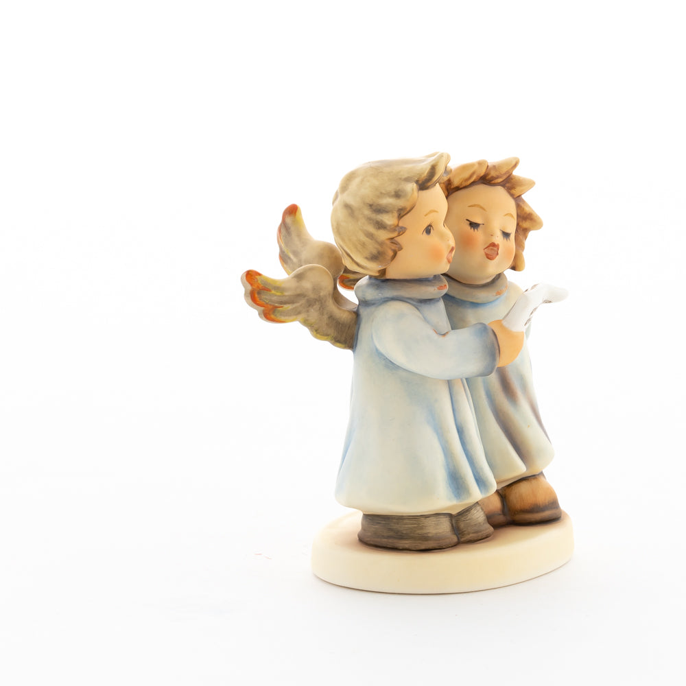 Welch goldene Stimmen – man kann sie beinahe hören! Diese zwei Engelchen, 1999 von Helmut Fischer modelliert, singen gemeinsam in ihren blauen Gewändern. Das Notenblatt fest in der Hand lauschen sie der himmlischen Melodie und machen sie mit ihren glockenklaren Stimmen vollkommen. Sogar die kleinen Noten sind auf dem Liederzettel verewigt. Darüber hinaus liegt besonderes Augenmerk auf den Flügeln der beiden Engel, die mit roten Details versehen wurden. Beim Anblick der beiden Figuren entsteht definitiv besinnliche Stimmung.