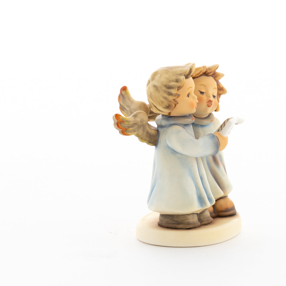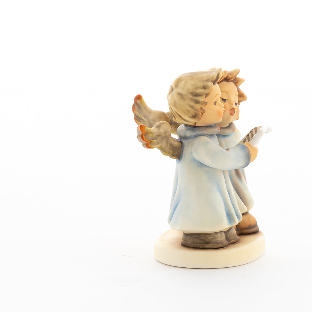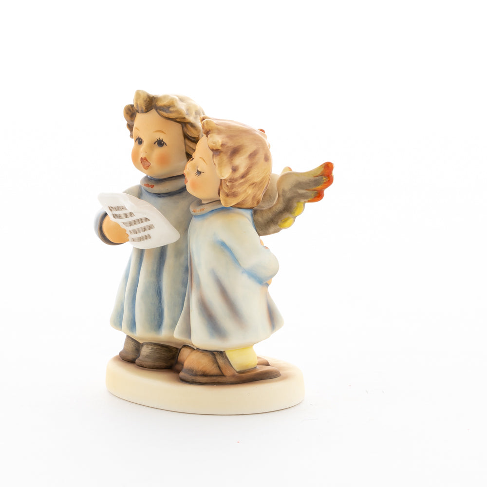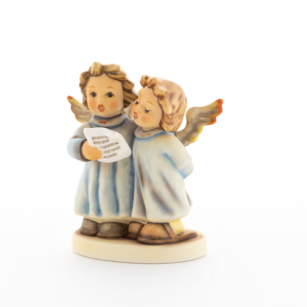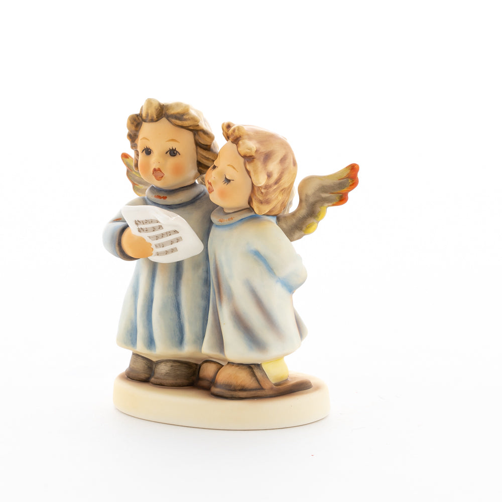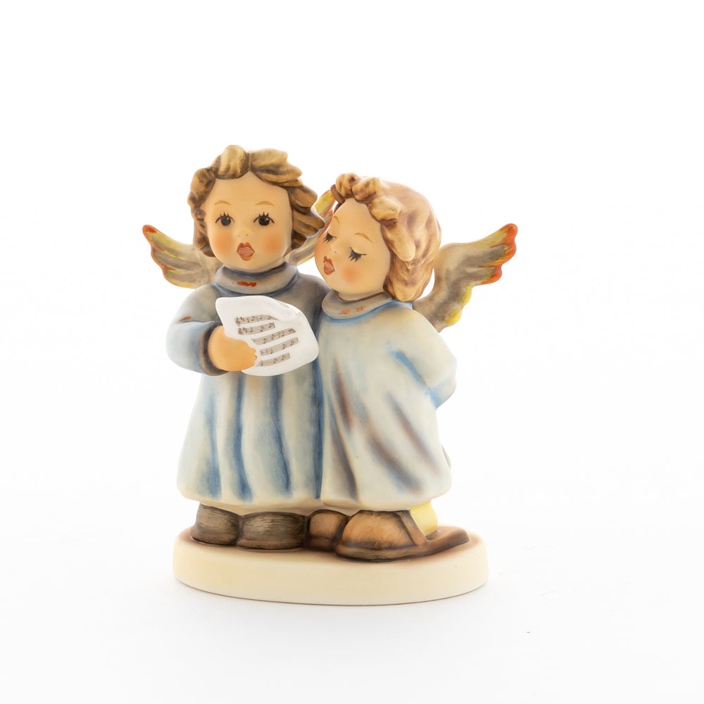 Welch goldene Stimmen – man kann sie beinahe hören! Diese zwei Engelchen, 1999 von Helmut Fischer modelliert, singen gemeinsam in ihren blauen Gewändern. Das Notenblatt fest in der Hand lauschen sie der himmlischen Melodie und machen sie mit ihren glockenklaren Stimmen vollkommen. Sogar die kleinen Noten sind auf dem Liederzettel verewigt. Darüber hinaus liegt besonderes Augenmerk auf den Flügeln der beiden Engel, die mit roten Details versehen wurden. Beim Anblick der beiden Figuren entsteht definitiv besinnliche Stimmung.
