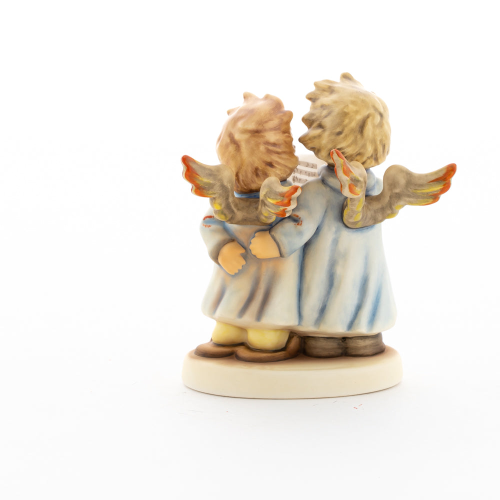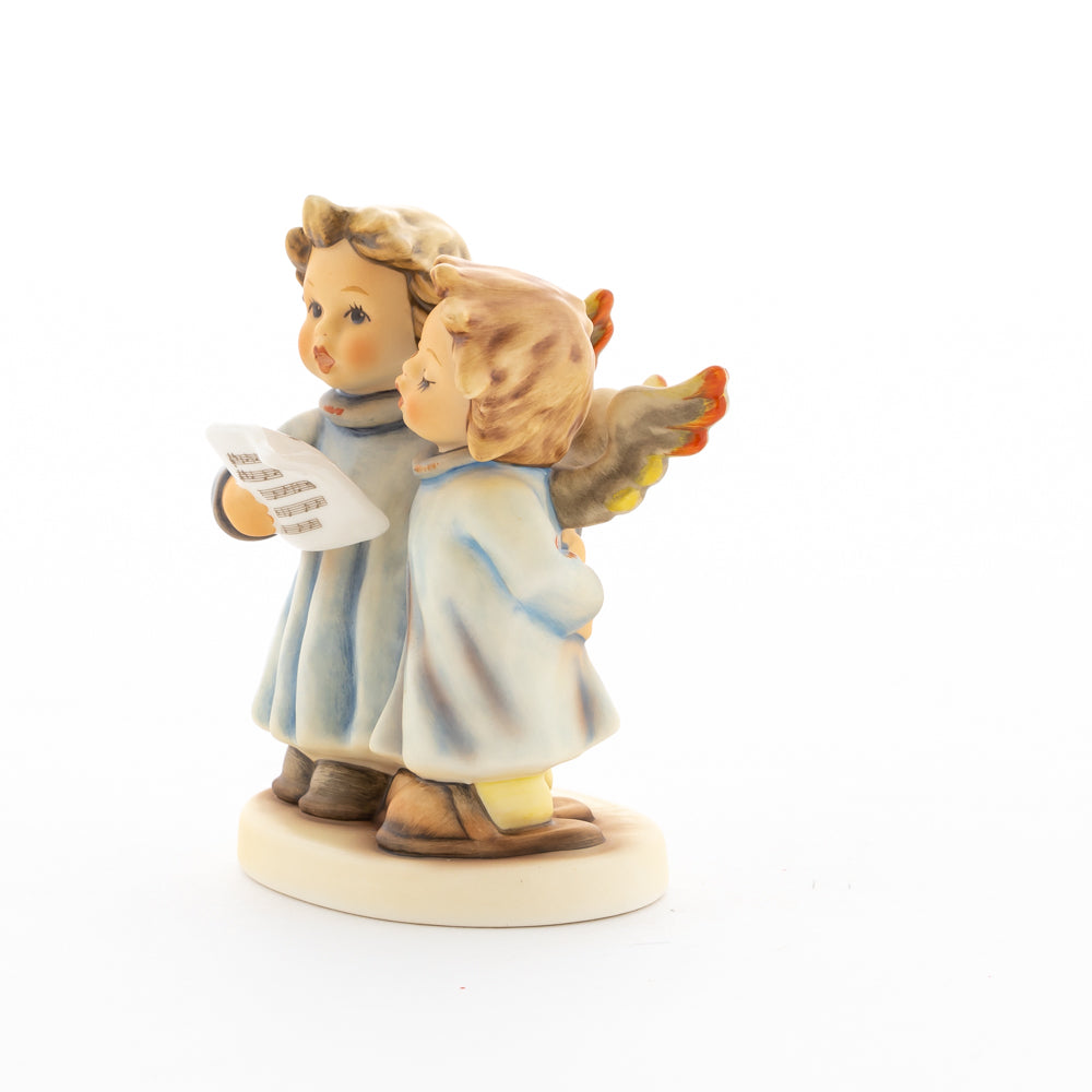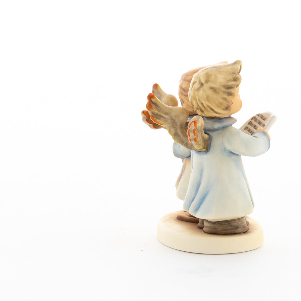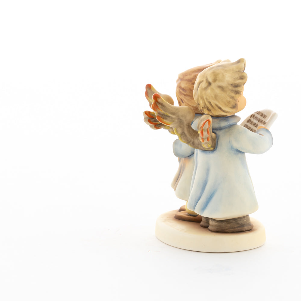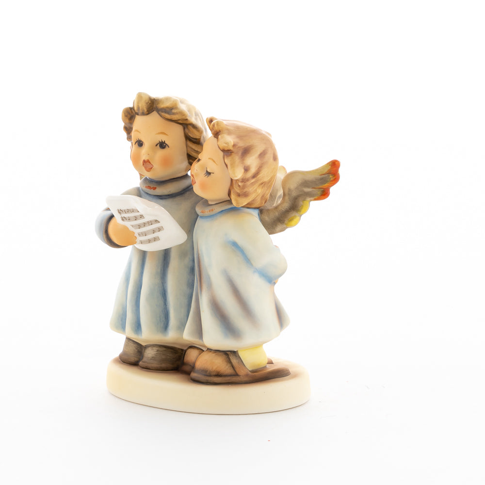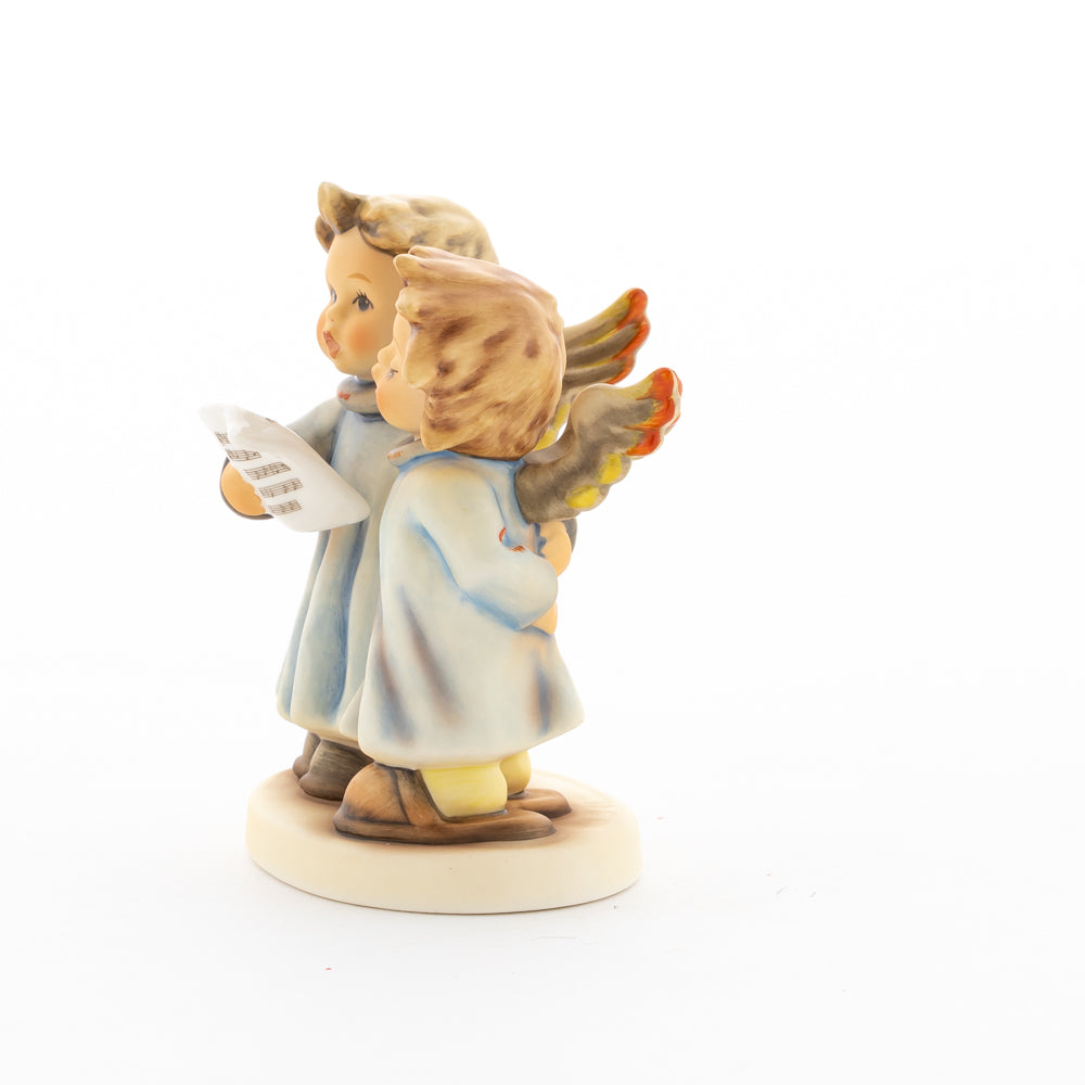 Welch goldene Stimmen – man kann sie beinahe hören! Diese zwei Engelchen, 1999 von Helmut Fischer modelliert, singen gemeinsam in ihren blauen Gewändern. Das Notenblatt fest in der Hand lauschen sie der himmlischen Melodie und machen sie mit ihren glockenklaren Stimmen vollkommen. Sogar die kleinen Noten sind auf dem Liederzettel verewigt. Darüber hinaus liegt besonderes Augenmerk auf den Flügeln der beiden Engel, die mit roten Details versehen wurden. Beim Anblick der beiden Figuren entsteht definitiv besinnliche Stimmung.