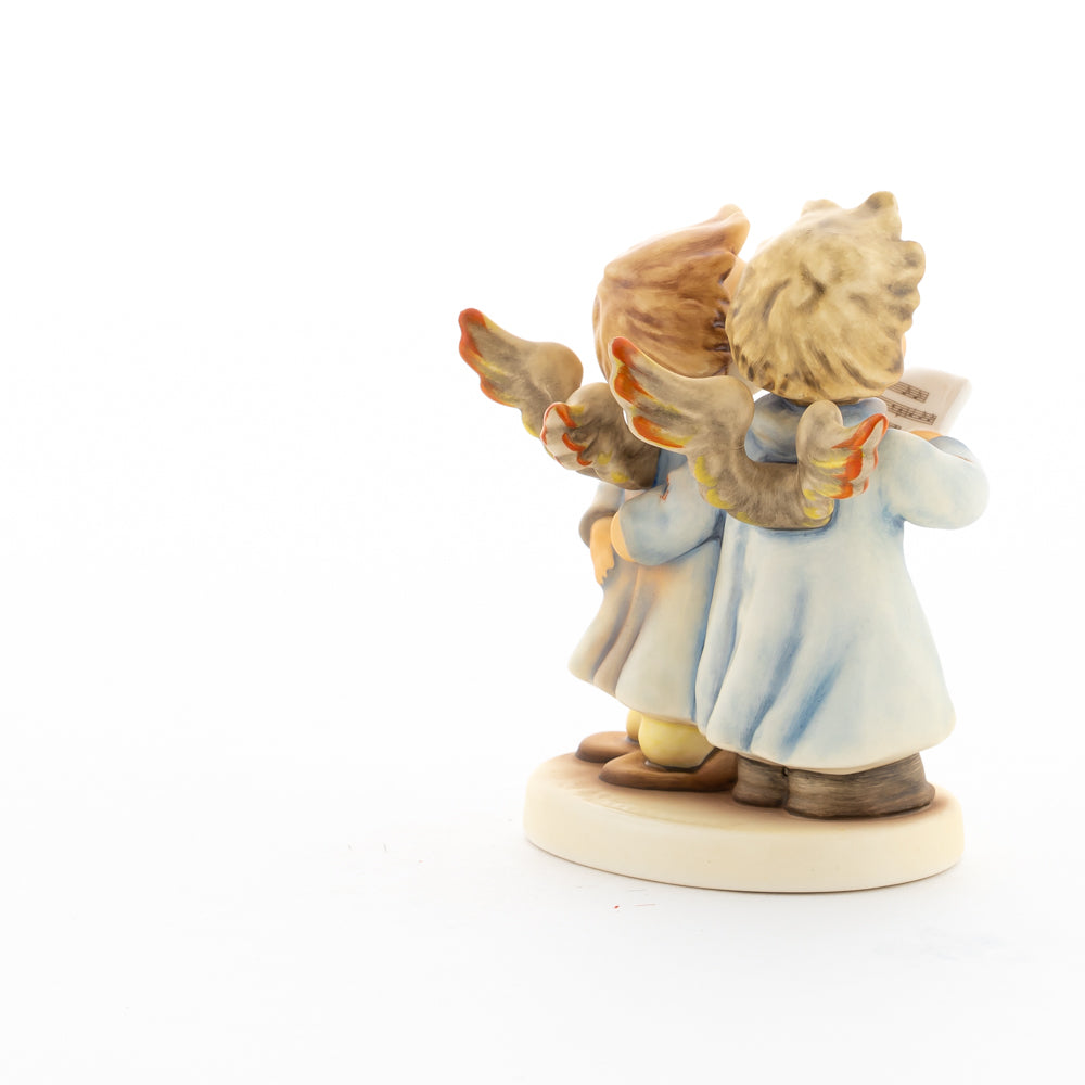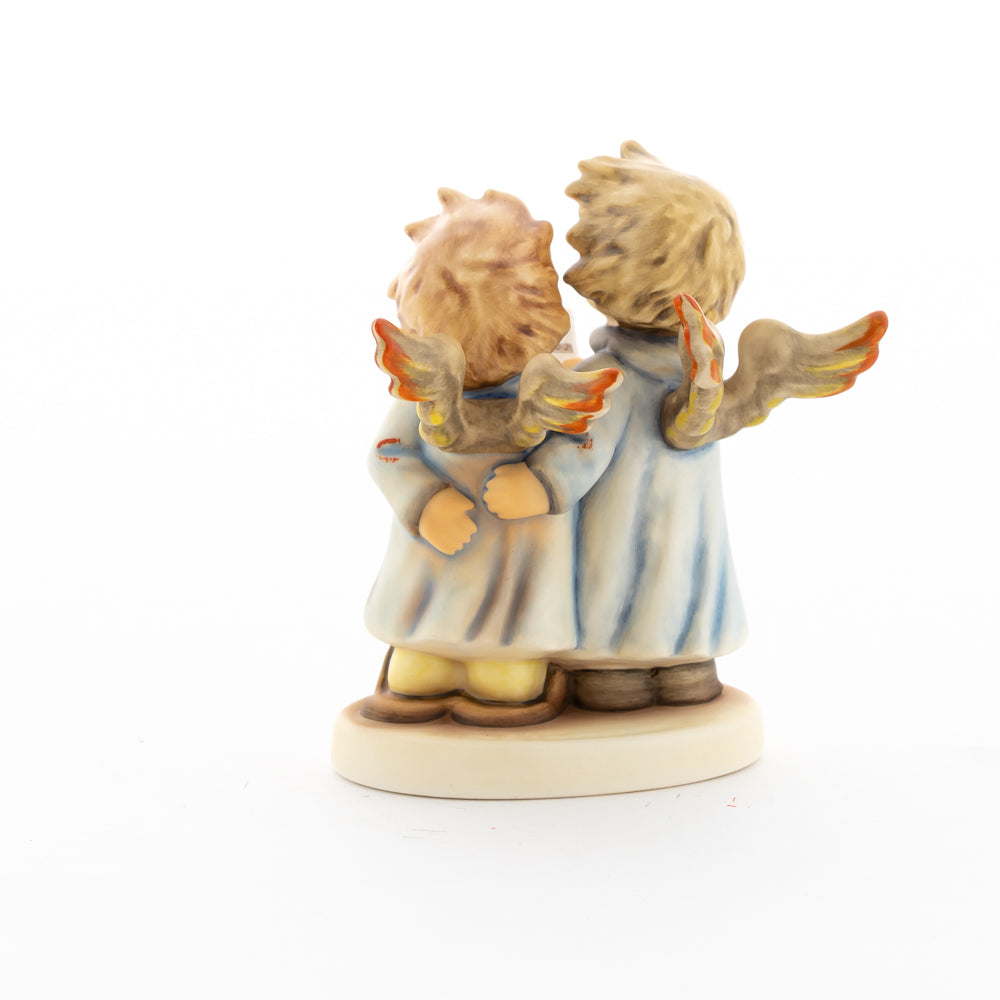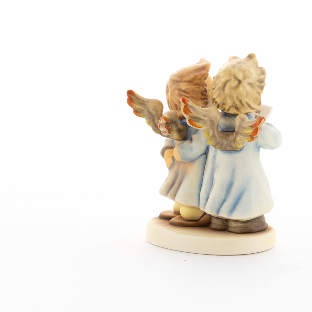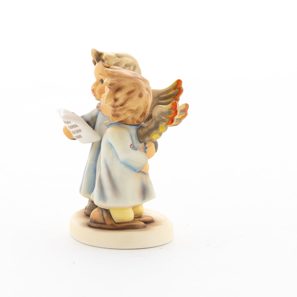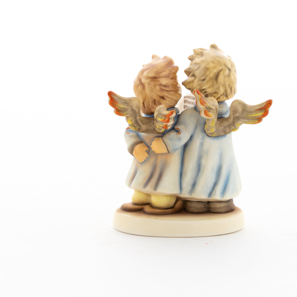 Welch goldene Stimmen – man kann sie beinahe hören! Diese zwei Engelchen, 1999 von Helmut Fischer modelliert, singen gemeinsam in ihren blauen Gewändern. Das Notenblatt fest in der Hand lauschen sie der himmlischen Melodie und machen sie mit ihren glockenklaren Stimmen vollkommen. Sogar die kleinen Noten sind auf dem Liederzettel verewigt. Darüber hinaus liegt besonderes Augenmerk auf den Flügeln der beiden Engel, die mit roten Details versehen wurden. Beim Anblick der beiden Figuren entsteht definitiv besinnliche Stimmung.
