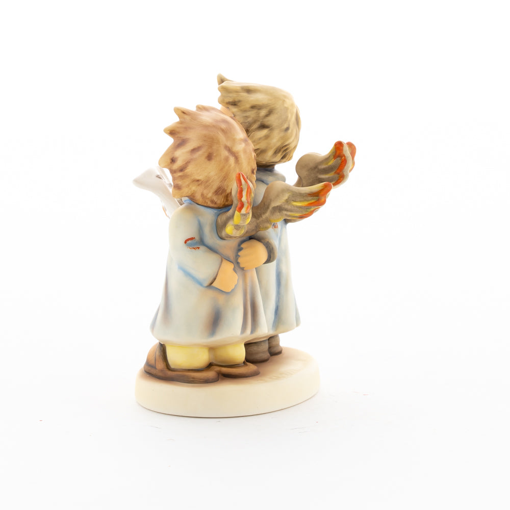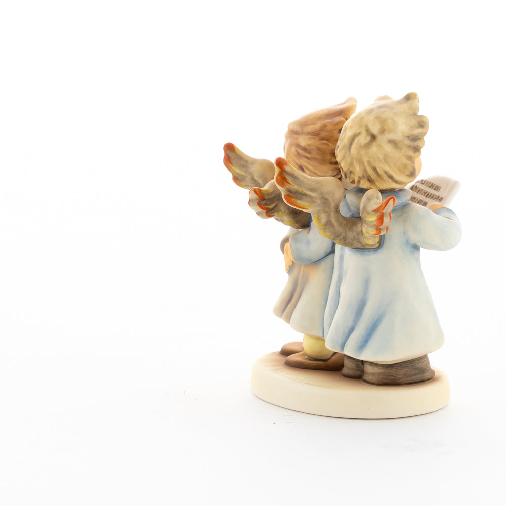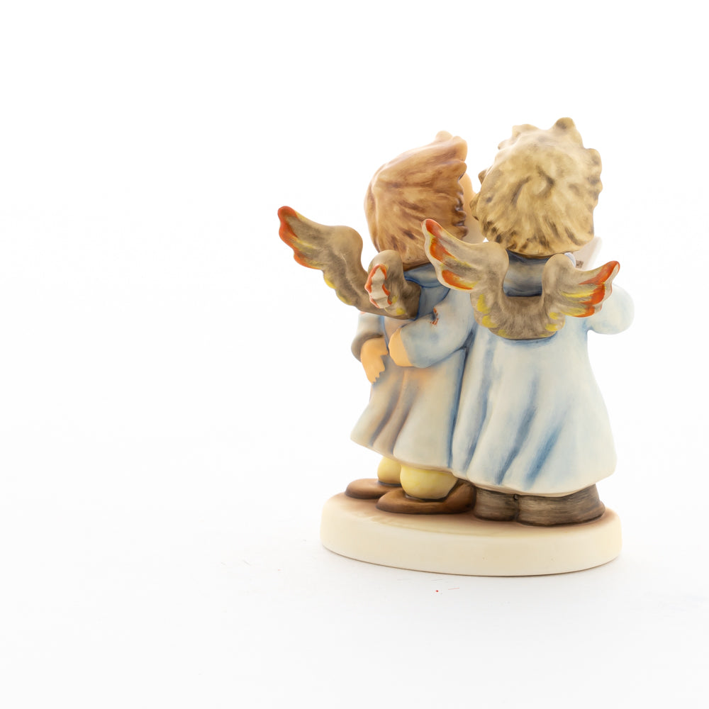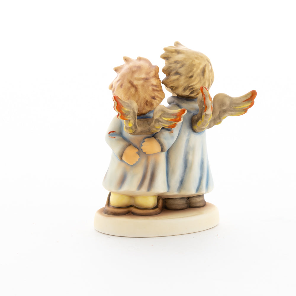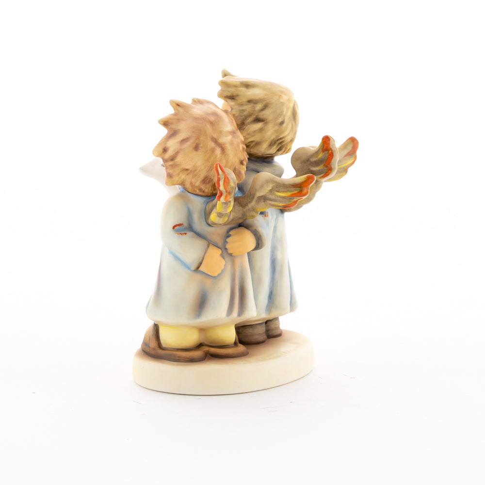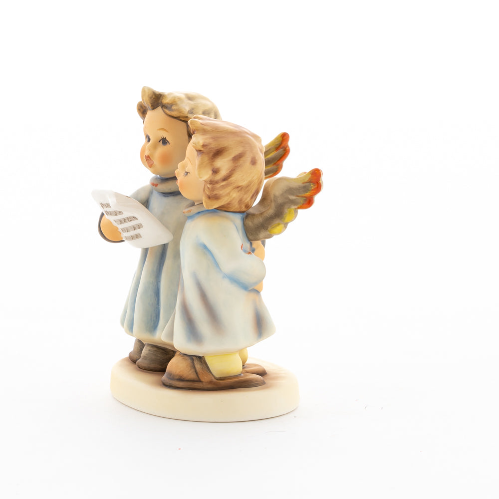 Welch goldene Stimmen – man kann sie beinahe hören! Diese zwei Engelchen, 1999 von Helmut Fischer modelliert, singen gemeinsam in ihren blauen Gewändern. Das Notenblatt fest in der Hand lauschen sie der himmlischen Melodie und machen sie mit ihren glockenklaren Stimmen vollkommen. Sogar die kleinen Noten sind auf dem Liederzettel verewigt. Darüber hinaus liegt besonderes Augenmerk auf den Flügeln der beiden Engel, die mit roten Details versehen wurden. Beim Anblick der beiden Figuren entsteht definitiv besinnliche Stimmung.
