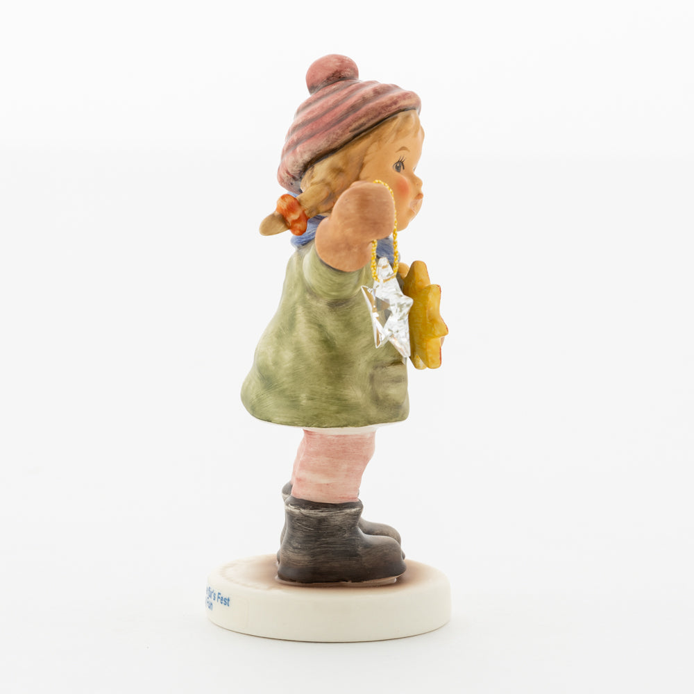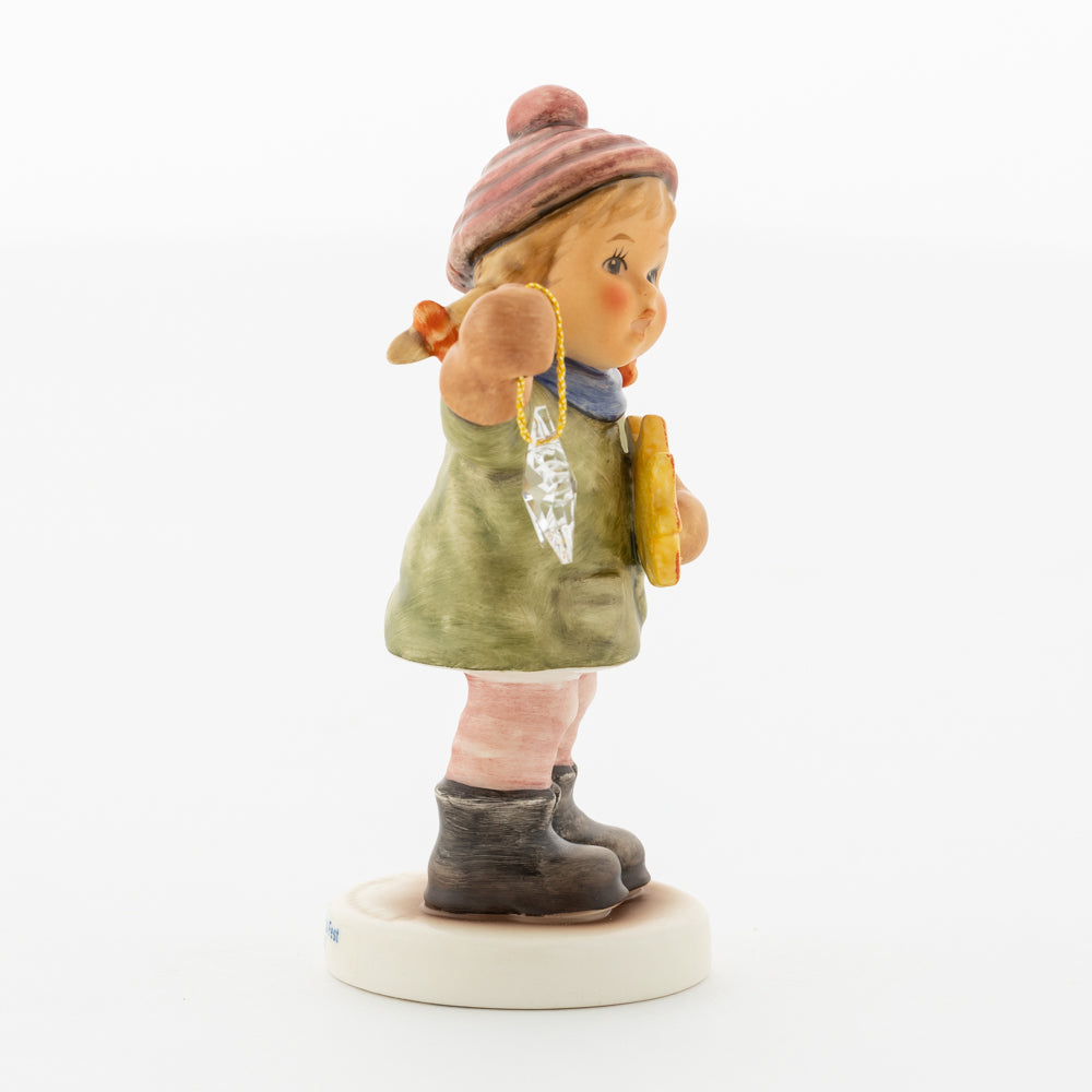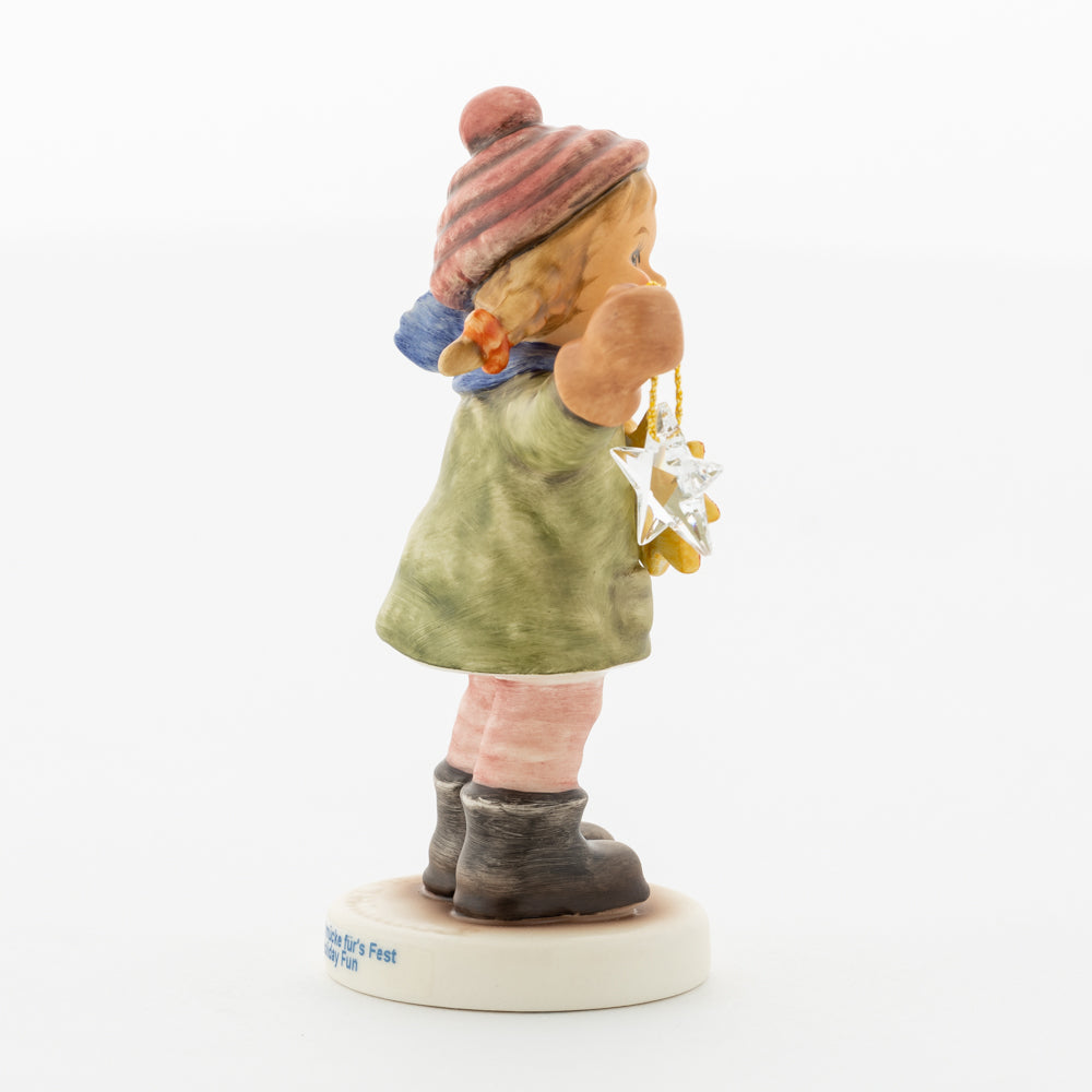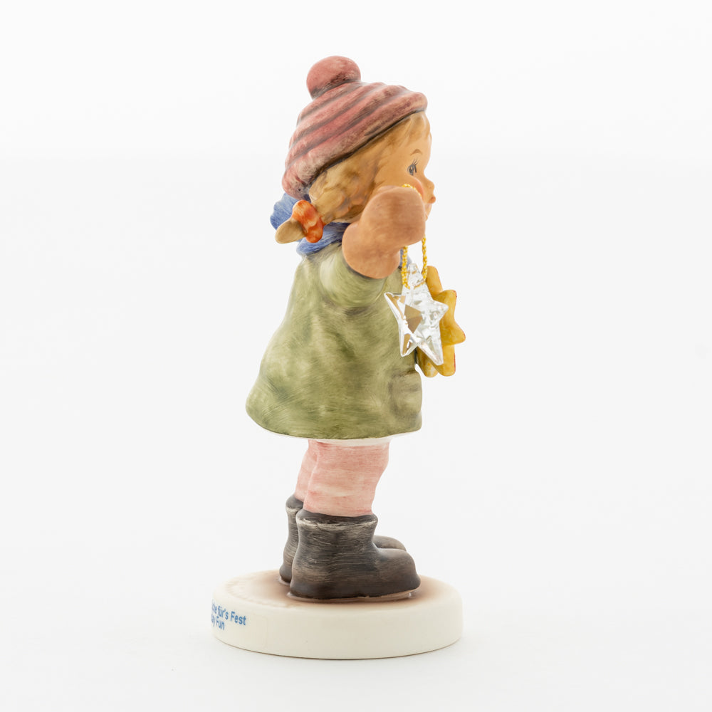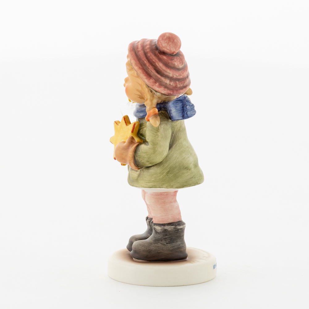 Das erste Mal darf unser kleines Hummel-Mädchen helfen, den Baum zu schmücken. Die roten Bäckchen sind vor Freude gerötet. Vorsichtig trägt das Kind den kostbaren kristallinen Swarovski-Stern vor sich her, damit er auch ja nicht zerbricht. Den zweiten goldenen Stern hat es fest an die Brust gedrückt. Ach, wie sehr es sich doch auf Weihnachten freut! Im Jahr 2004 fing Modelleurin Tamara Fuchs diese liebevolle Szene ein, die Sie durch die Weihnachtszeit begleiten wird und das Herz erfreut.