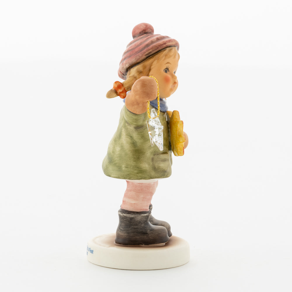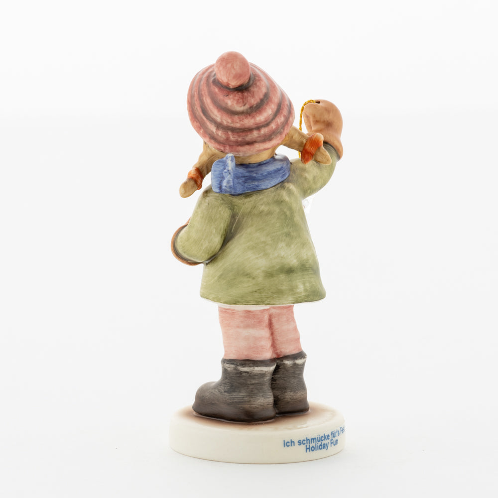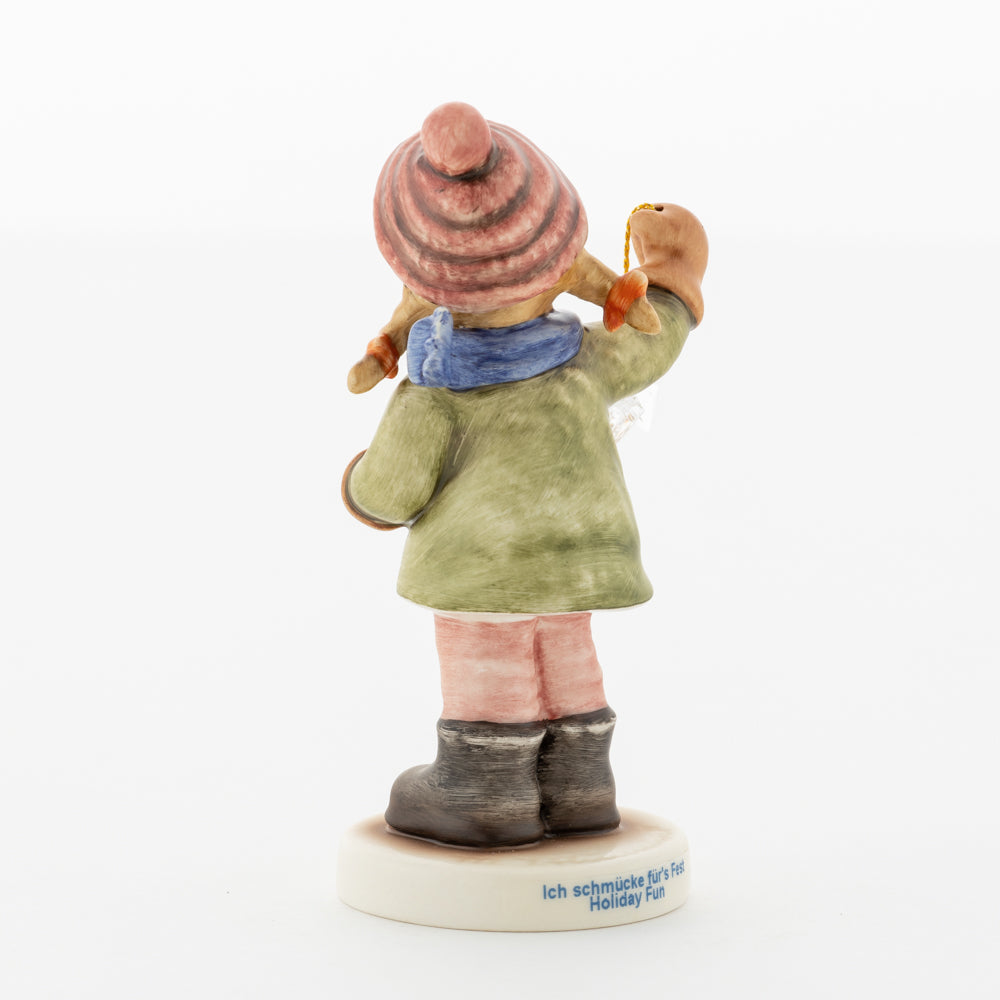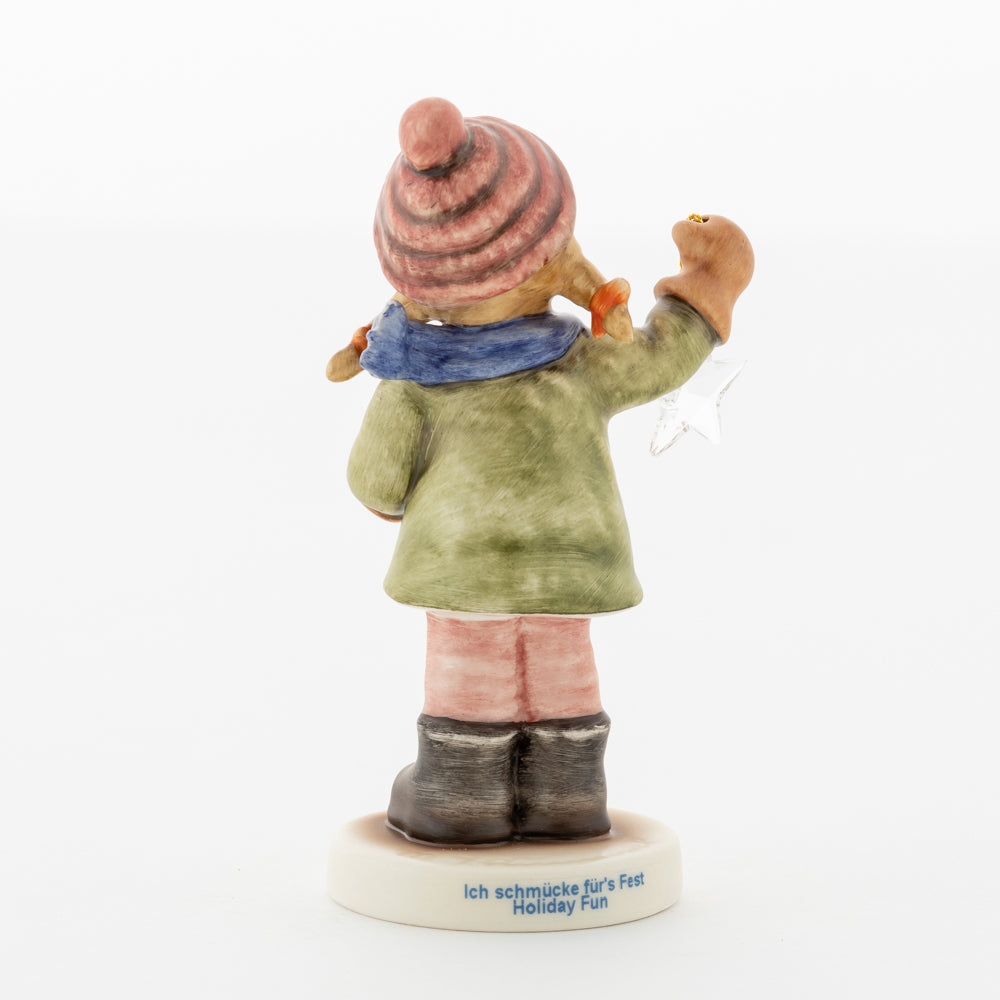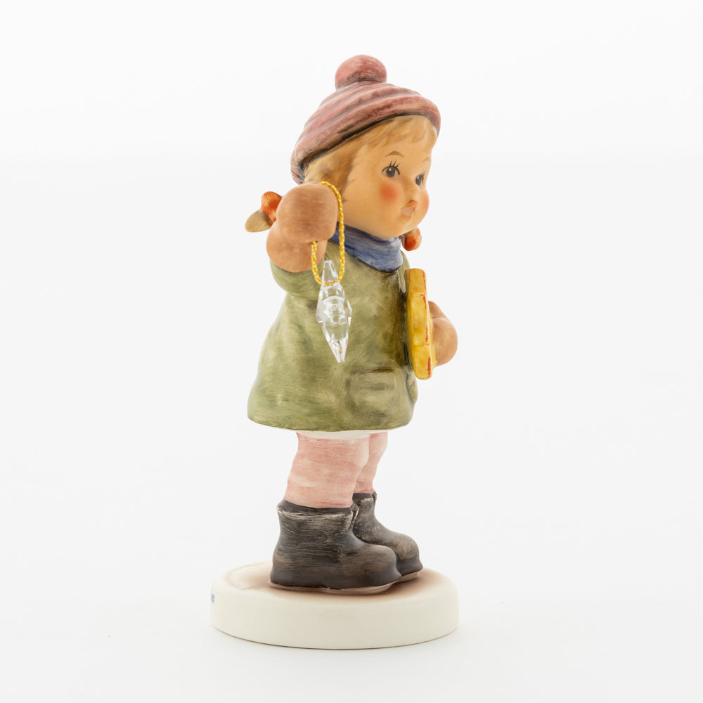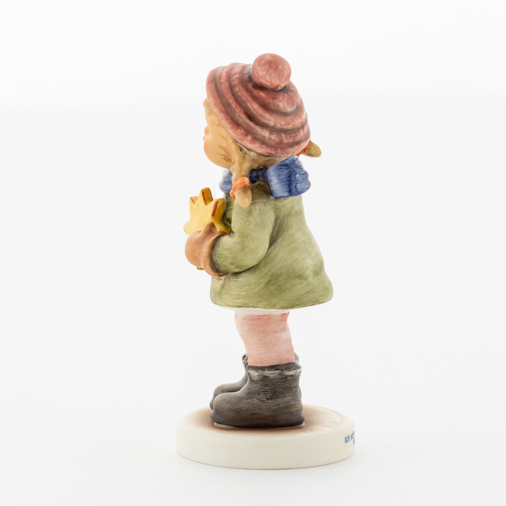 Das erste Mal darf unser kleines Hummel-Mädchen helfen, den Baum zu schmücken. Die roten Bäckchen sind vor Freude gerötet. Vorsichtig trägt das Kind den kostbaren kristallinen Swarovski-Stern vor sich her, damit er auch ja nicht zerbricht. Den zweiten goldenen Stern hat es fest an die Brust gedrückt. Ach, wie sehr es sich doch auf Weihnachten freut! Im Jahr 2004 fing Modelleurin Tamara Fuchs diese liebevolle Szene ein, die Sie durch die Weihnachtszeit begleiten wird und das Herz erfreut.