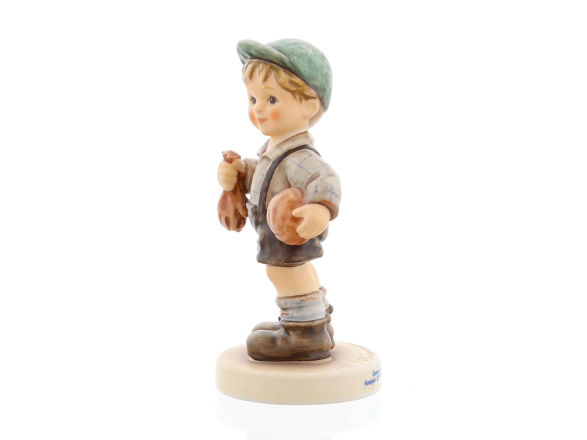 Das weibliche Pendant zu „Gewonnen“ finden Sie in „Magst spielen?“ (HUM 2274). Ebenfalls dazu passend: „Erster Platz“ (HUM 2420). Glücksmomente wie diese fing Schwester Maria Innocentia Hummel zu Lebzeiten en masse ein und verewigte die schönsten davon in ihren Zeichnungen. Heute dienen die Zeichnungen als Vorlagen für die Hummel-Figuren, die seit 1935 von Hand modelliert und gestaltet werden. „Gewonnen“ wurde 2008 in die Hummel-Familie aufgenommen.
