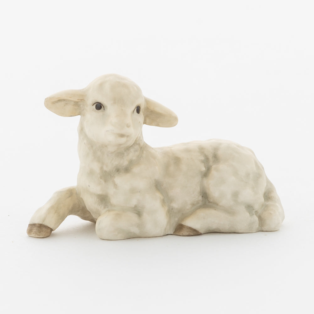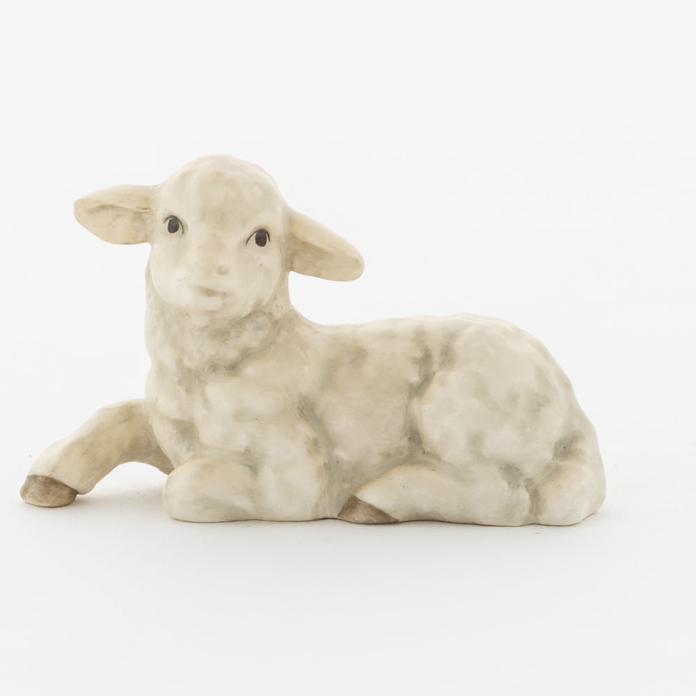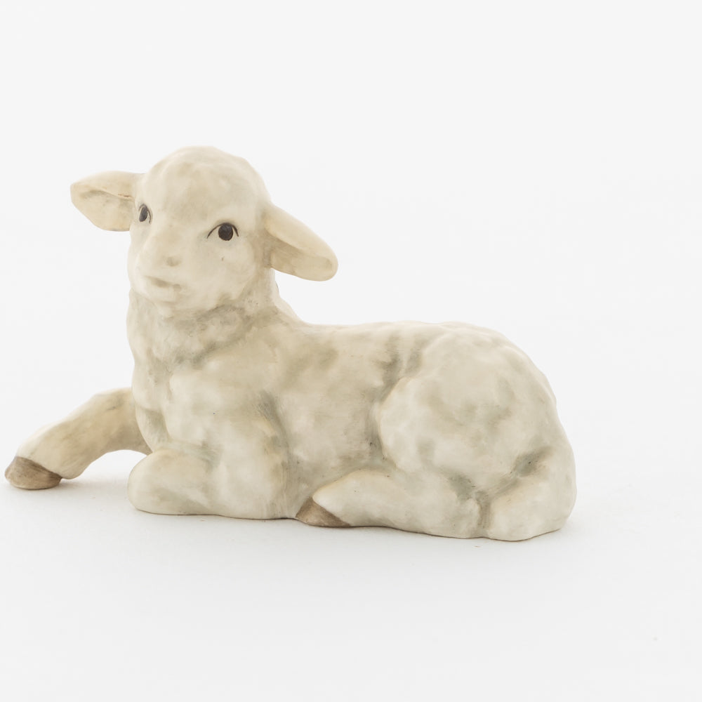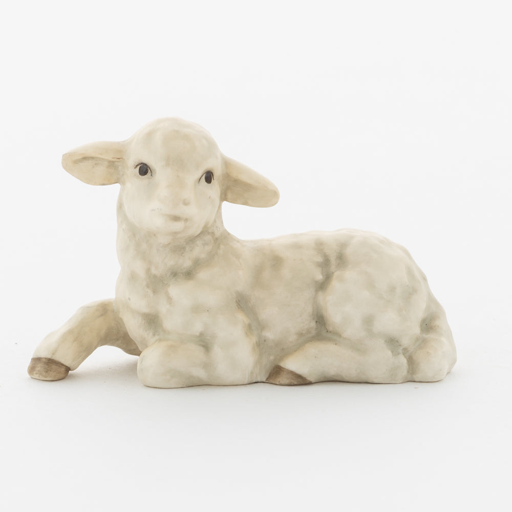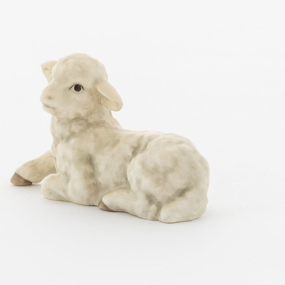 Für viele vielleicht nur ein dekorativer Zusatz zur Weihnachtskrippe, für uns ein essenzieller Baustein der Geschichte: unsere weißen Lämmer. In der Bibel ist das Beisein von Tieren nicht eindeutig belegt, aber es ist denkbar, dass die Hirten ihre Lämmer mit in den Stall brachten. Stalltiere kommen nur in einer der beiden Versionen der Weihnachtsgeschichte vor, nämlich im Lukasevangelium, das in den Jahren 80 bis 90 n. Chr. aufgeschrieben wurde. Im Original sind es Ochs und Esel, die Maria und Josef begegnen, das neugeborene Kind wärmen und auf der Welt willkommen heißen. So verweisen die klassischen Stalltiere auch auf den überlieferten Geburtsort Jesu in der Krippe und stehen für seine ärmliche Herkunft. Das liegende Lamm ergänzt die Szenerie gemeinsam mit dem stehenden Lamm (HUM 2230/P) sowie dem Kälbchen (HUM 2230/M).