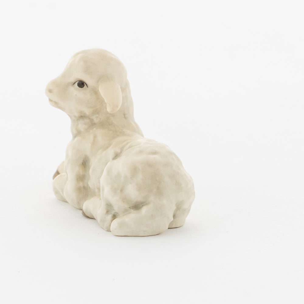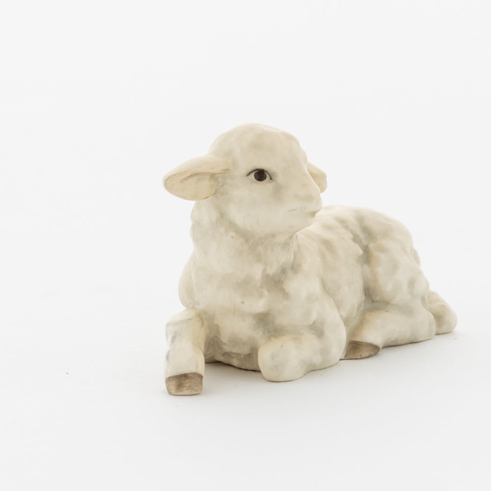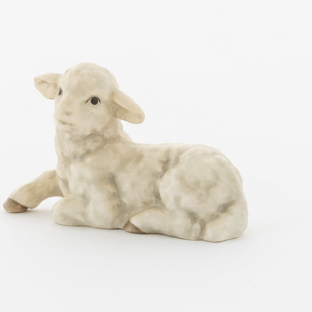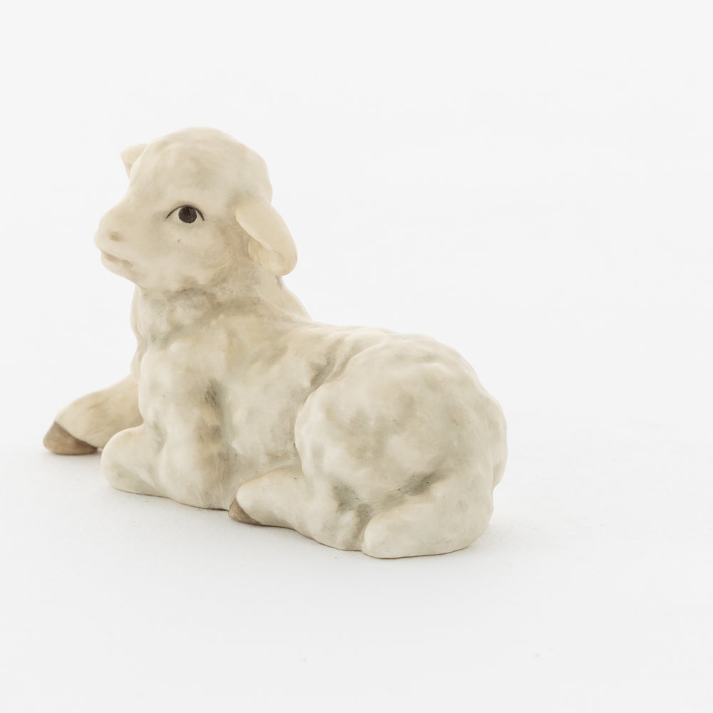 Für viele vielleicht nur ein dekorativer Zusatz zur Weihnachtskrippe, für uns ein essenzieller Baustein der Geschichte: unsere weißen Lämmer. In der Bibel ist das Beisein von Tieren nicht eindeutig belegt, aber es ist denkbar, dass die Hirten ihre Lämmer mit in den Stall brachten. Stalltiere kommen nur in einer der beiden Versionen der Weihnachtsgeschichte vor, nämlich im Lukasevangelium, das in den Jahren 80 bis 90 n. Chr. aufgeschrieben wurde. Im Original sind es Ochs und Esel, die Maria und Josef begegnen, das neugeborene Kind wärmen und auf der Welt willkommen heißen. So verweisen die klassischen Stalltiere auch auf den überlieferten Geburtsort Jesu in der Krippe und stehen für seine ärmliche Herkunft. Das liegende Lamm ergänzt die Szenerie gemeinsam mit dem stehenden Lamm (HUM 2230/P) sowie dem Kälbchen (HUM 2230/M).