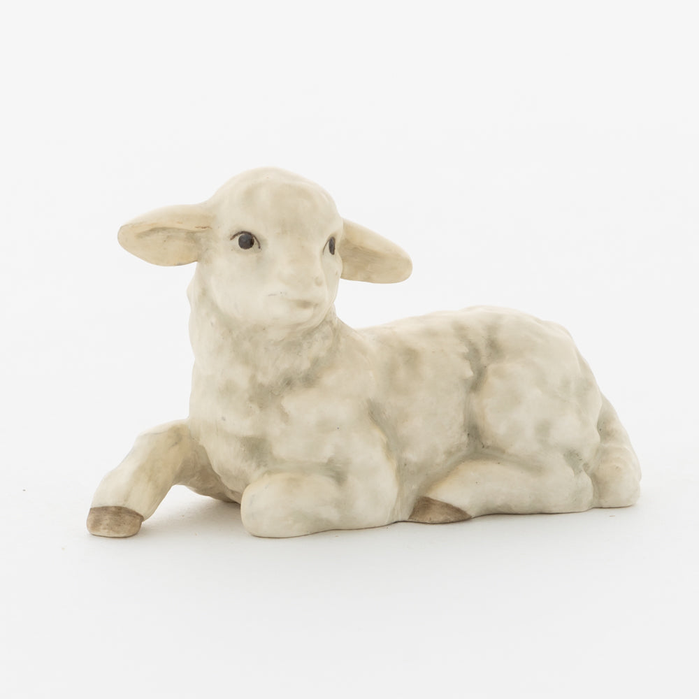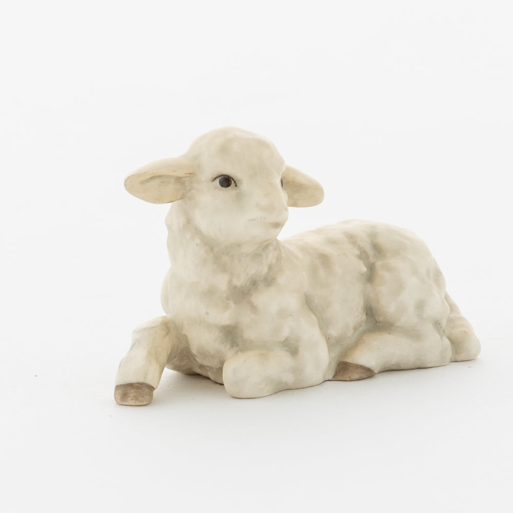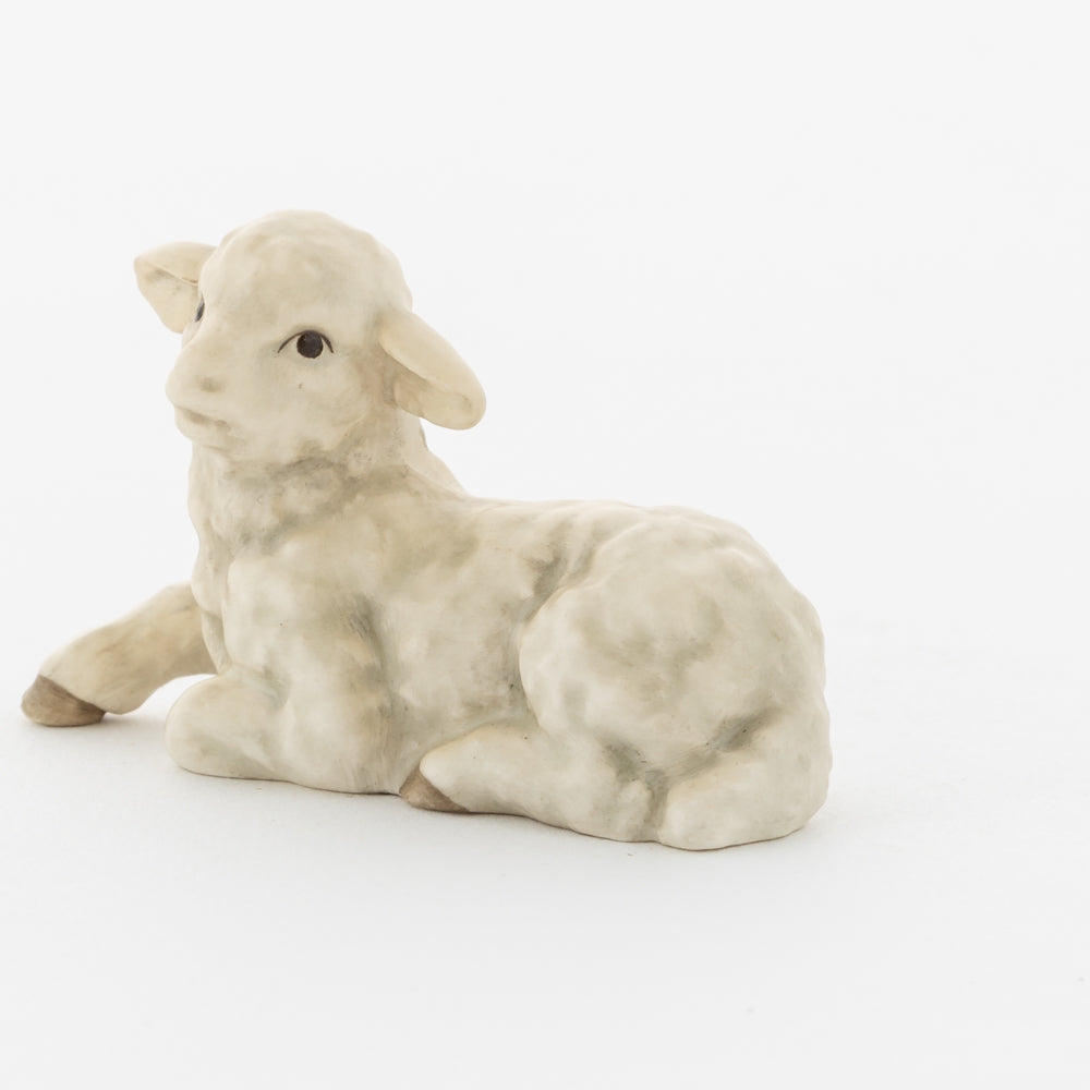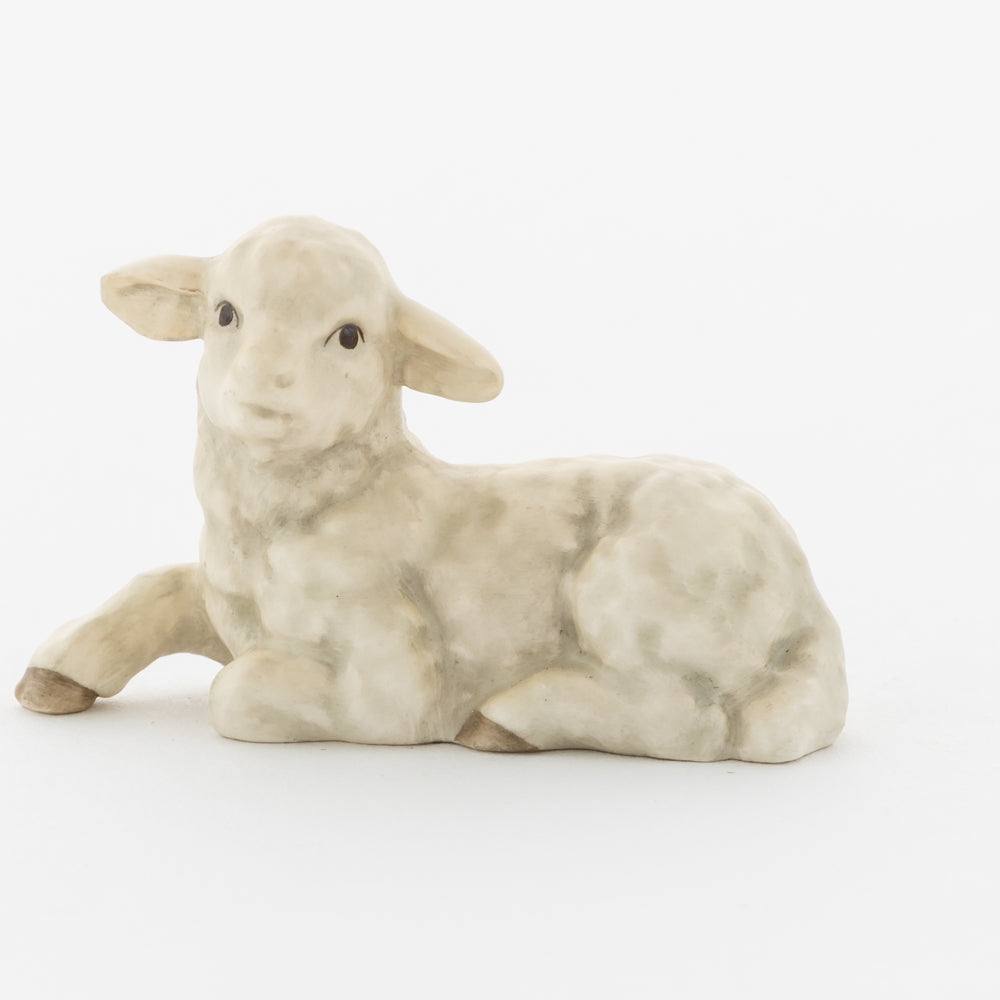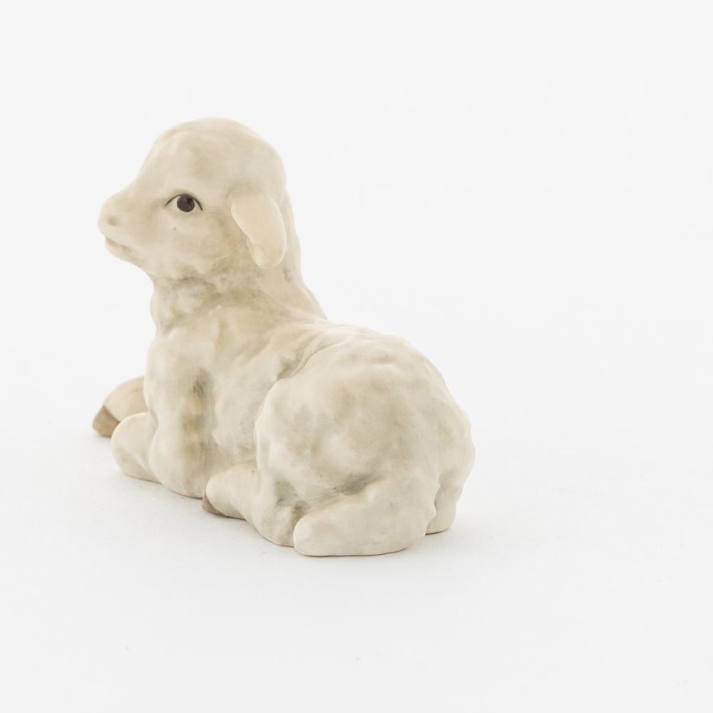 Für viele vielleicht nur ein dekorativer Zusatz zur Weihnachtskrippe, für uns ein essenzieller Baustein der Geschichte: unsere weißen Lämmer. In der Bibel ist das Beisein von Tieren nicht eindeutig belegt, aber es ist denkbar, dass die Hirten ihre Lämmer mit in den Stall brachten. Stalltiere kommen nur in einer der beiden Versionen der Weihnachtsgeschichte vor, nämlich im Lukasevangelium, das in den Jahren 80 bis 90 n. Chr. aufgeschrieben wurde. Im Original sind es Ochs und Esel, die Maria und Josef begegnen, das neugeborene Kind wärmen und auf der Welt willkommen heißen. So verweisen die klassischen Stalltiere auch auf den überlieferten Geburtsort Jesu in der Krippe und stehen für seine ärmliche Herkunft. Das liegende Lamm ergänzt die Szenerie gemeinsam mit dem stehenden Lamm (HUM 2230/P) sowie dem Kälbchen (HUM 2230/M).