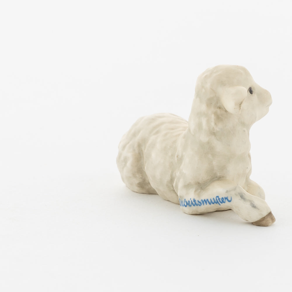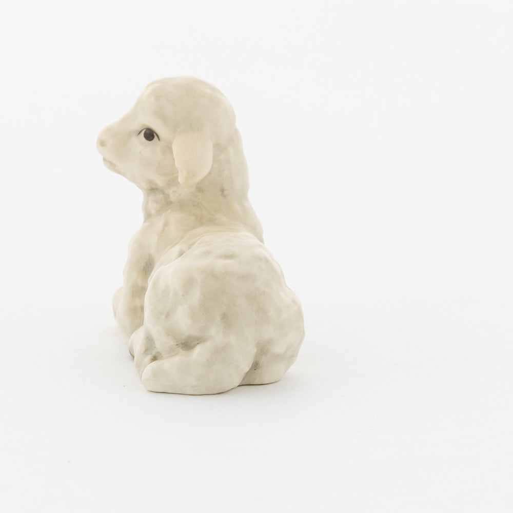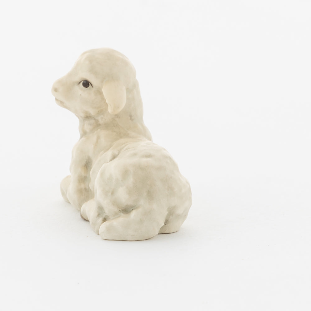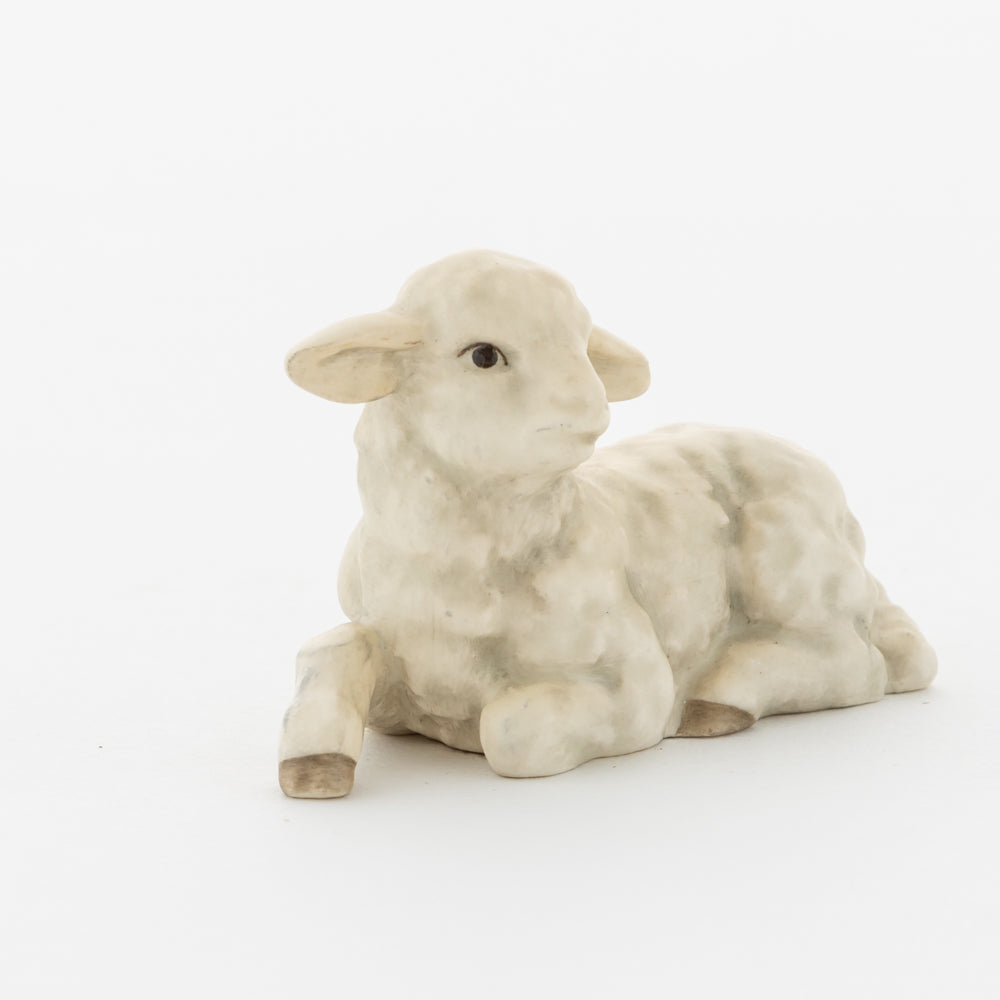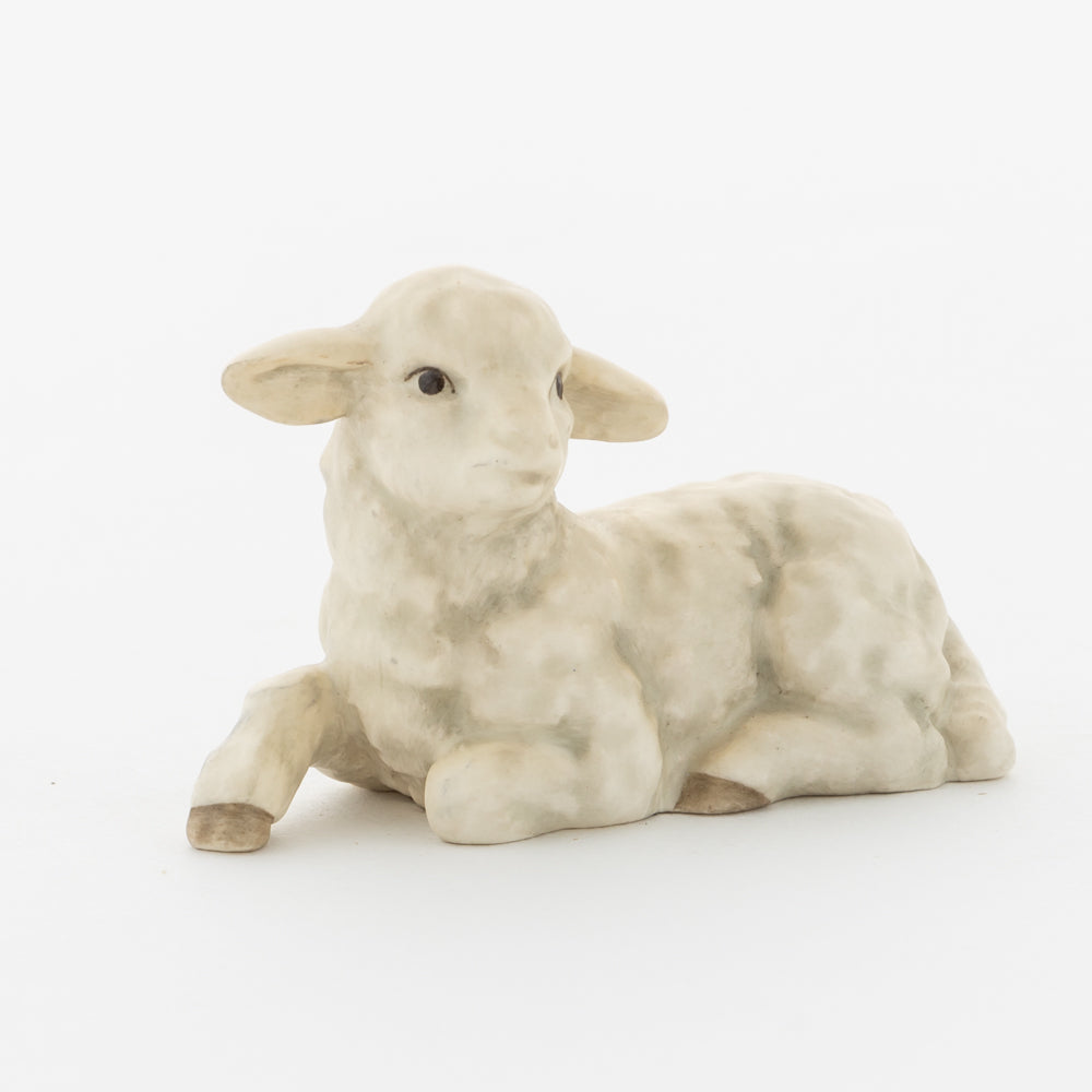Für viele vielleicht nur ein dekorativer Zusatz zur Weihnachtskrippe, für uns ein essenzieller Baustein der Geschichte: unsere weißen Lämmer. In der Bibel ist das Beisein von Tieren nicht eindeutig belegt, aber es ist denkbar, dass die Hirten ihre Lämmer mit in den Stall brachten. Stalltiere kommen nur in einer der beiden Versionen der Weihnachtsgeschichte vor, nämlich im Lukasevangelium, das in den Jahren 80 bis 90 n. Chr. aufgeschrieben wurde. Im Original sind es Ochs und Esel, die Maria und Josef begegnen, das neugeborene Kind wärmen und auf der Welt willkommen heißen. So verweisen die klassischen Stalltiere auch auf den überlieferten Geburtsort Jesu in der Krippe und stehen für seine ärmliche Herkunft. Das liegende Lamm ergänzt die Szenerie gemeinsam mit dem stehenden Lamm (HUM 2230/P) sowie dem Kälbchen (HUM 2230/M).