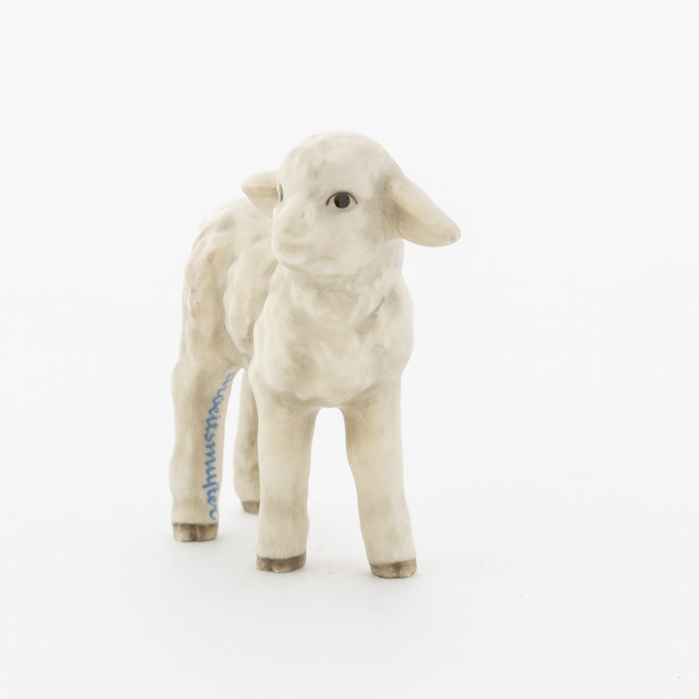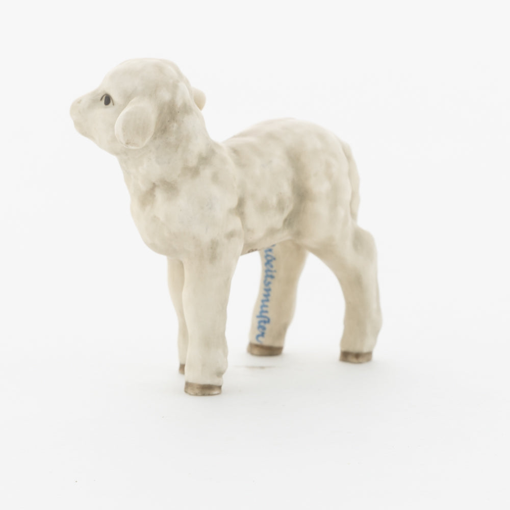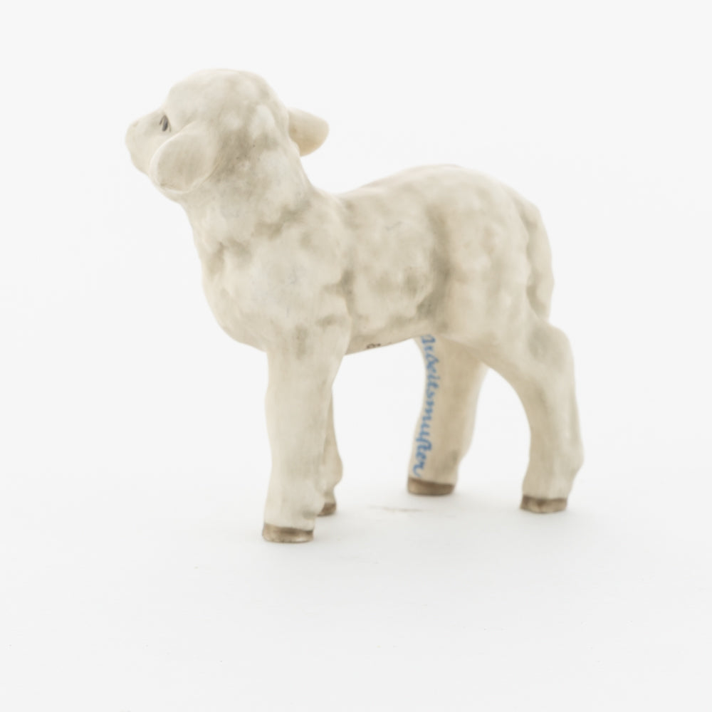 Das unschuldige Tier passt perfekt in das Ensemble der biblischen Erzählung. Gemeinsam mit seinem Gegenpart, dem liegenden Lamm (HUM 2230/O), sowie dem Kälbchen (HUM 2230/M)
