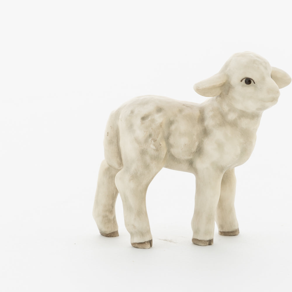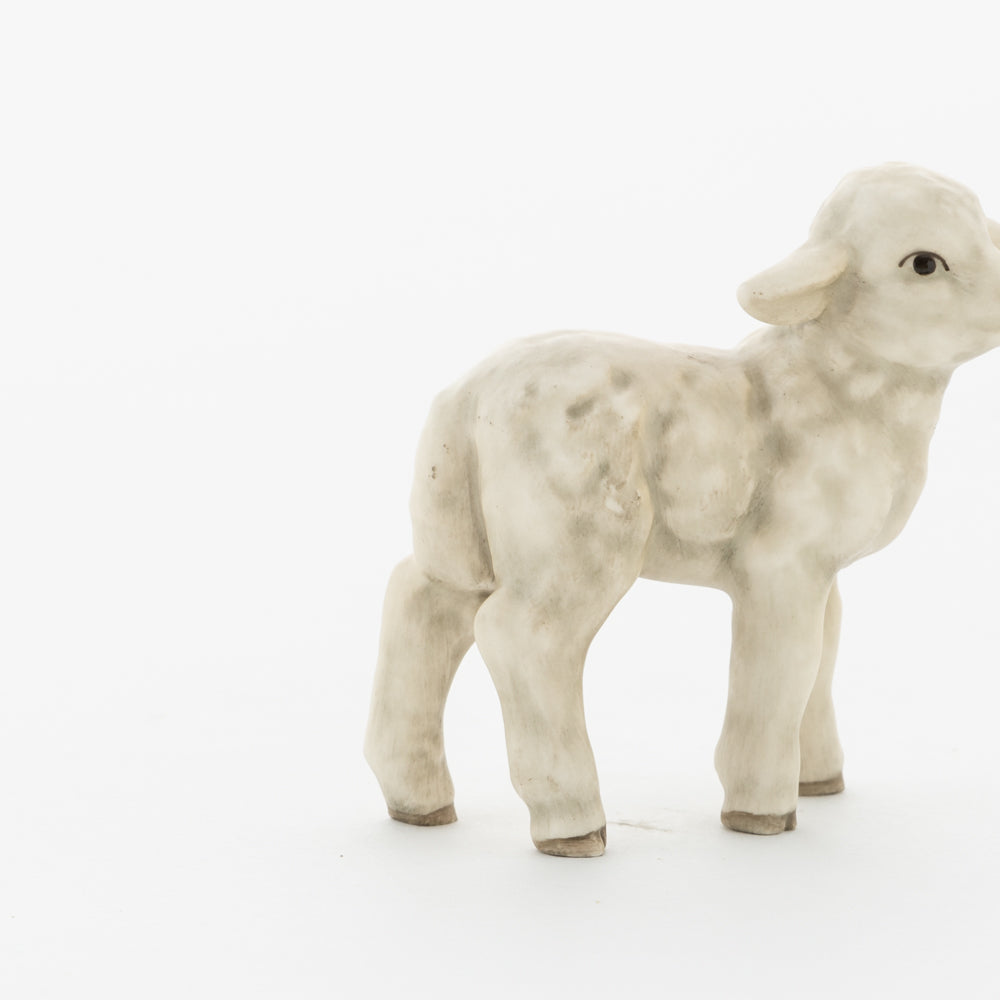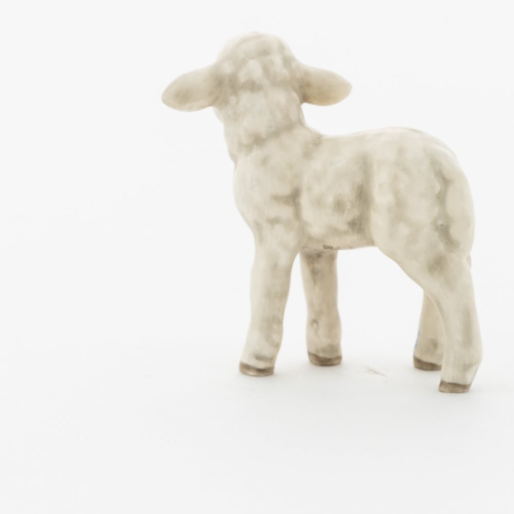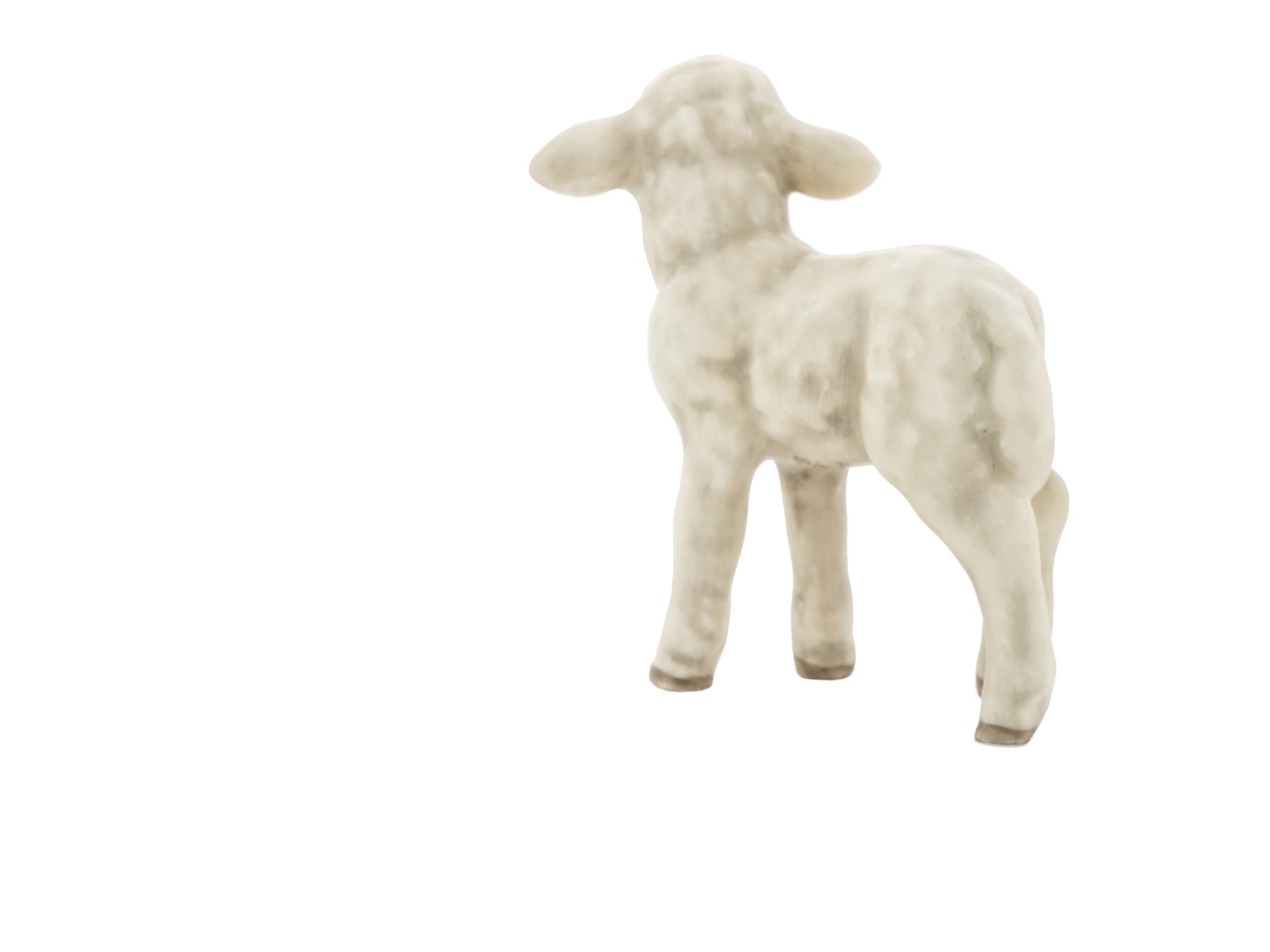 Das unschuldige Tier passt perfekt in das Ensemble der biblischen Erzählung. Gemeinsam mit seinem Gegenpart, dem liegenden Lamm (HUM 2230/O), sowie dem Kälbchen (HUM 2230/M)