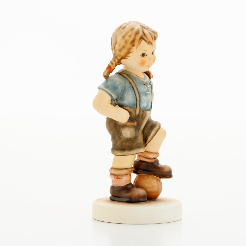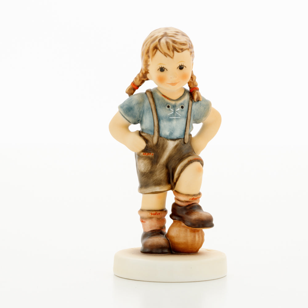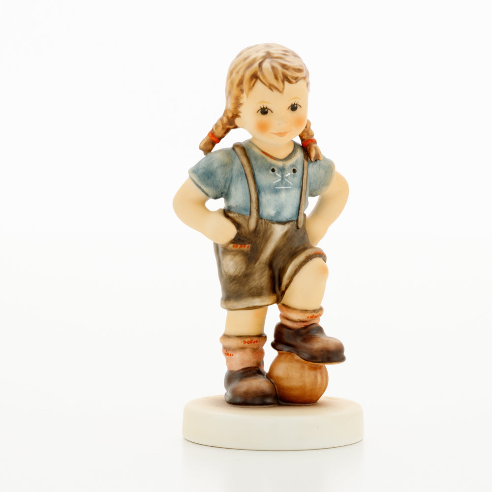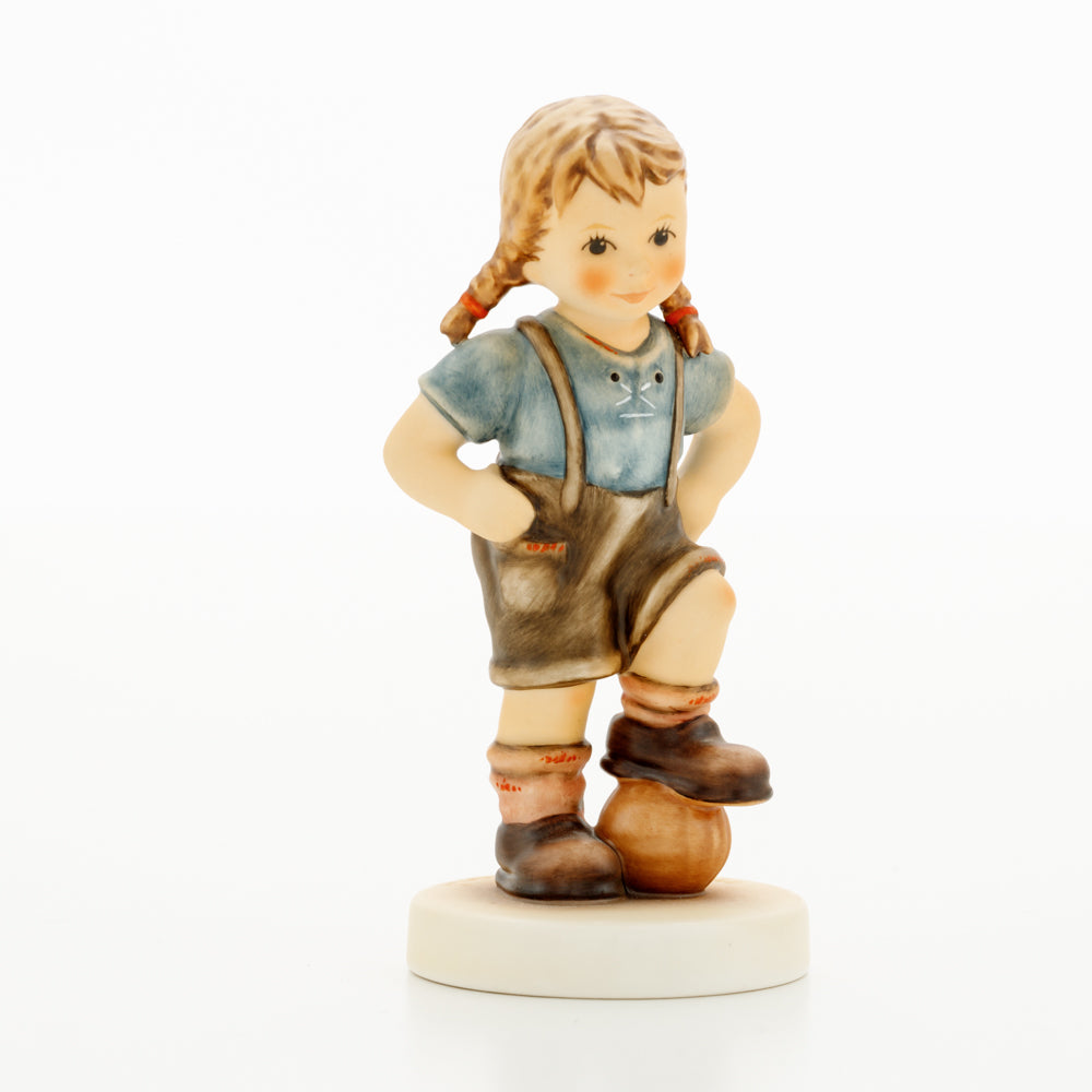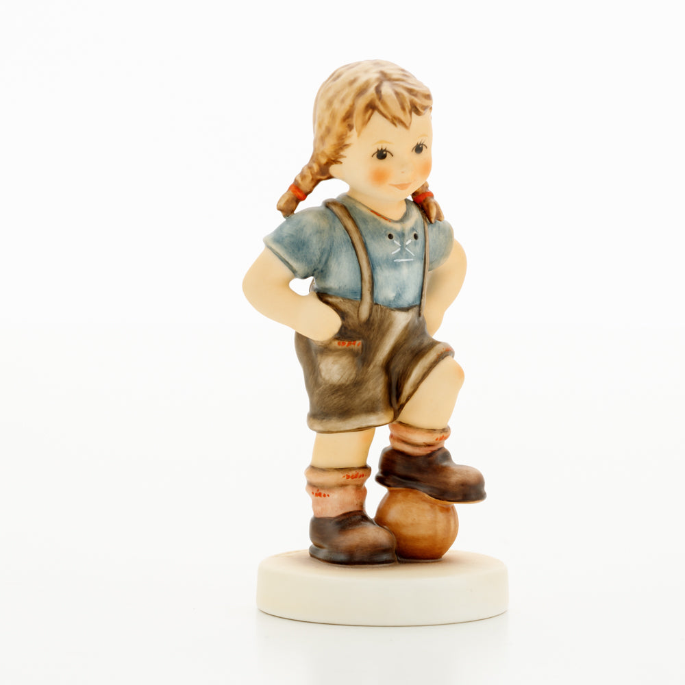 Gemeinsam macht das Leben doch gleich viel mehr Spaß: Herausfordernd, aber dennoch herzlich dreinblickend, steht unsere Sportsfreundin in feschen Lederhosen da und stützt einen Fuß auf einem Ball ab – ganz so, als würde das Spiel gleich weitergehen. Vorher fragt sie jedoch „Magst spielen?“ und lädt ein, mitzumachen. Modelleurin Tamara Fuchs hat dem aufgeweckten Hummel-Mädchen 2008 Leben eingehaucht – ein wunderbarer Klassiker aus der Hummel Manufaktur.Perfekt zu dieser Figur passt auch unsere Hummelfigur „Erster Platz“ (HUM 2420), die einen kleinen Rennfahrer zeigt, der seine Medaille für den wohlverdienten Platz 1 in der Hand hält, sowie„Gewonnen“ (HUM 2212)– ein kleiner Hummel-Junge, der mit seinem grünen Käppi und dem Ball unterm Arm das perfekte Pendant zu „Magst spielen?“ darstellt.