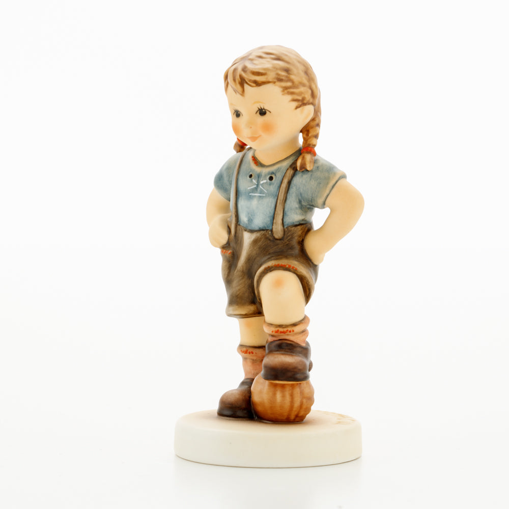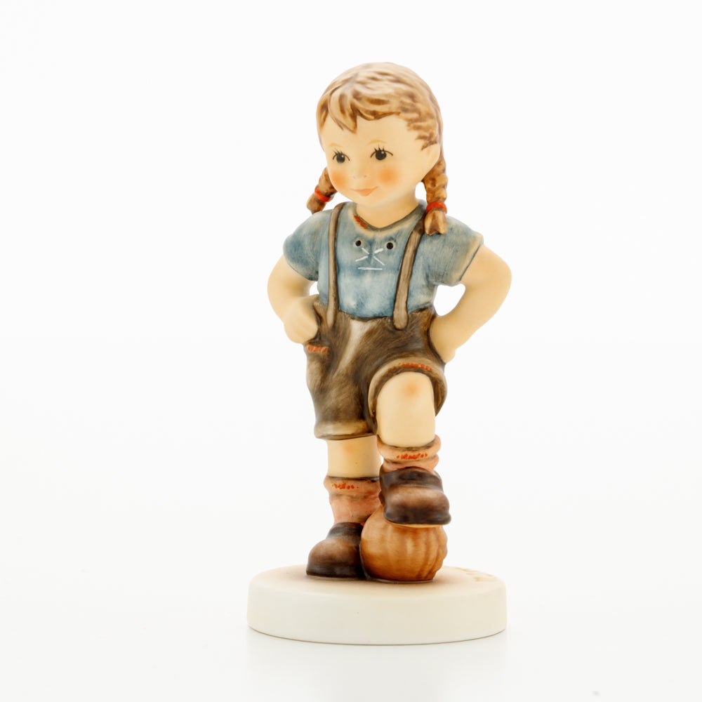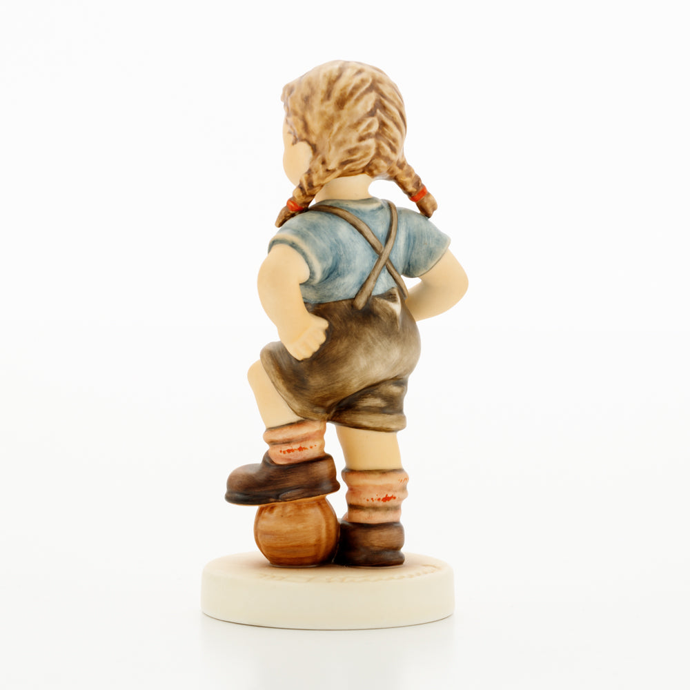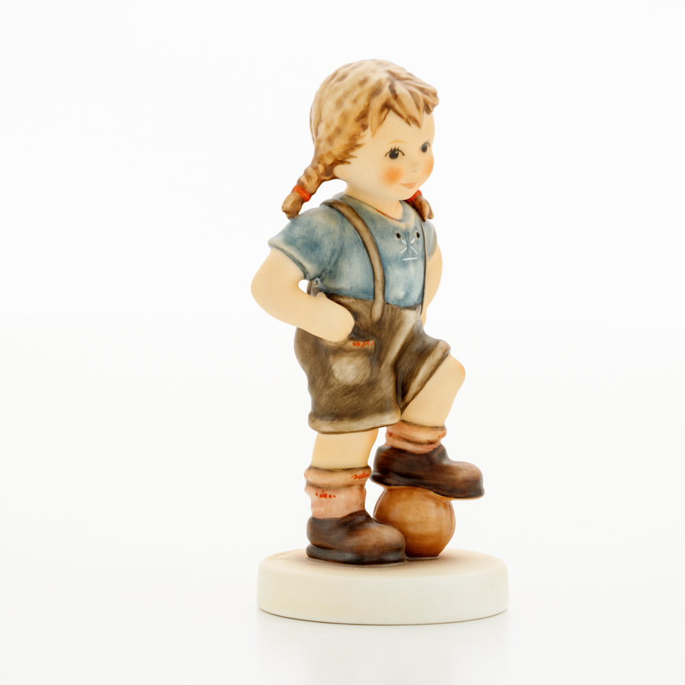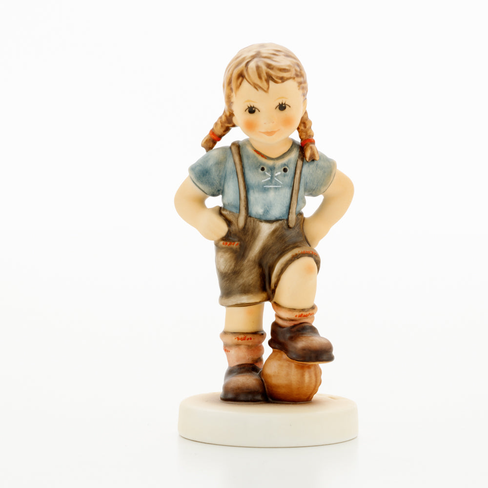 Gemeinsam macht das Leben doch gleich viel mehr Spaß: Herausfordernd, aber dennoch herzlich dreinblickend, steht unsere Sportsfreundin in feschen Lederhosen da und stützt einen Fuß auf einem Ball ab – ganz so, als würde das Spiel gleich weitergehen. Vorher fragt sie jedoch „Magst spielen?“ und lädt ein, mitzumachen. Modelleurin Tamara Fuchs hat dem aufgeweckten Hummel-Mädchen 2008 Leben eingehaucht – ein wunderbarer Klassiker aus der Hummel Manufaktur.Perfekt zu dieser Figur passt auch unsere Hummelfigur „Erster Platz“ (HUM 2420), die einen kleinen Rennfahrer zeigt, der seine Medaille für den wohlverdienten Platz 1 in der Hand hält, sowie„Gewonnen“ (HUM 2212)– ein kleiner Hummel-Junge, der mit seinem grünen Käppi und dem Ball unterm Arm das perfekte Pendant zu „Magst spielen?“ darstellt.