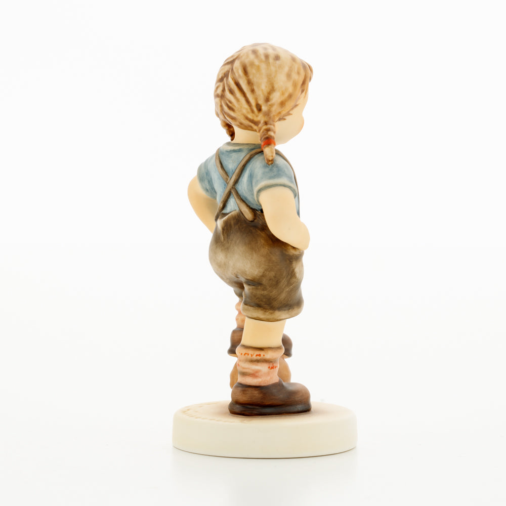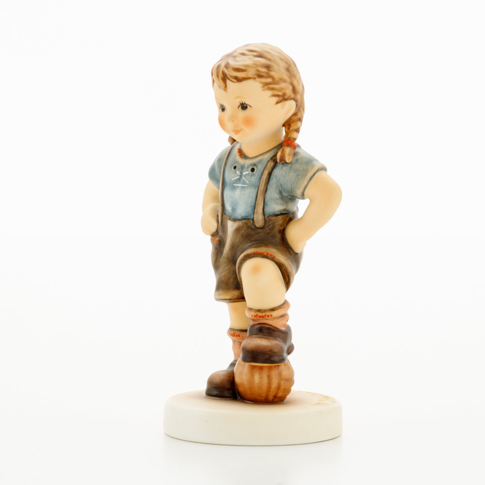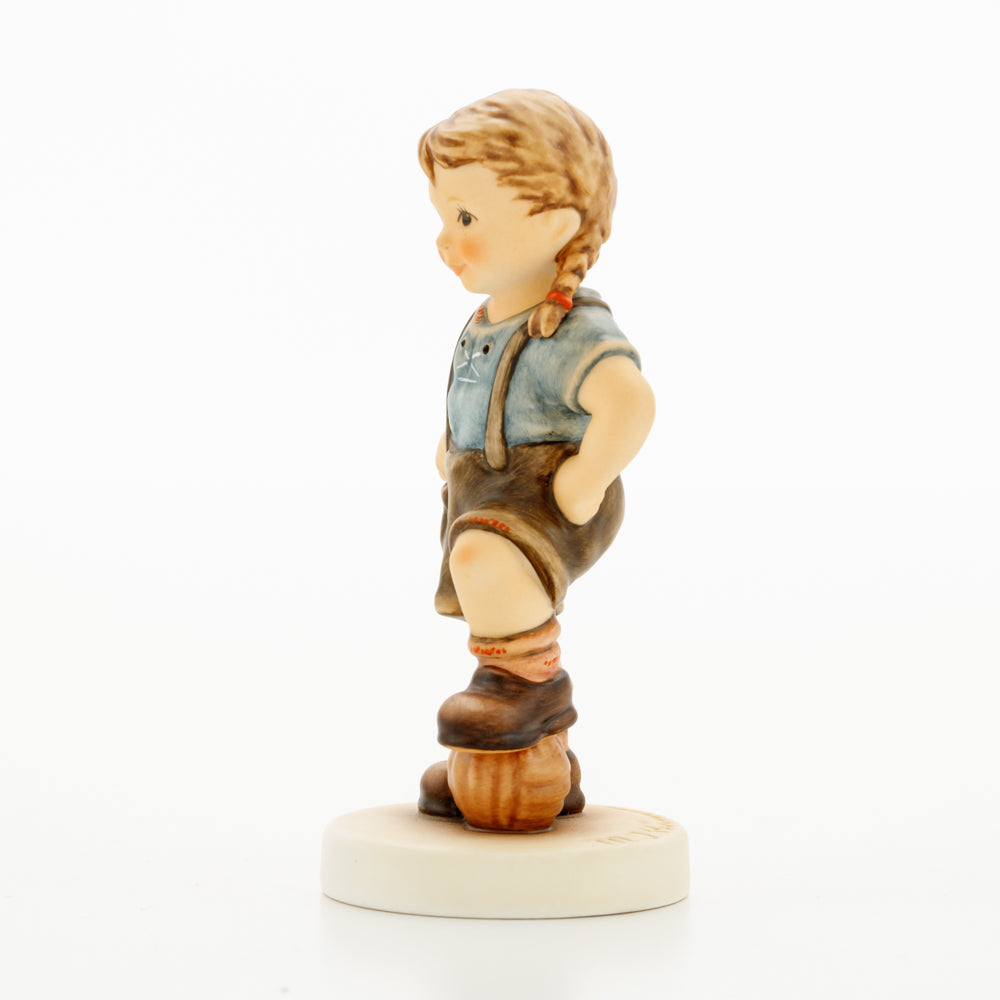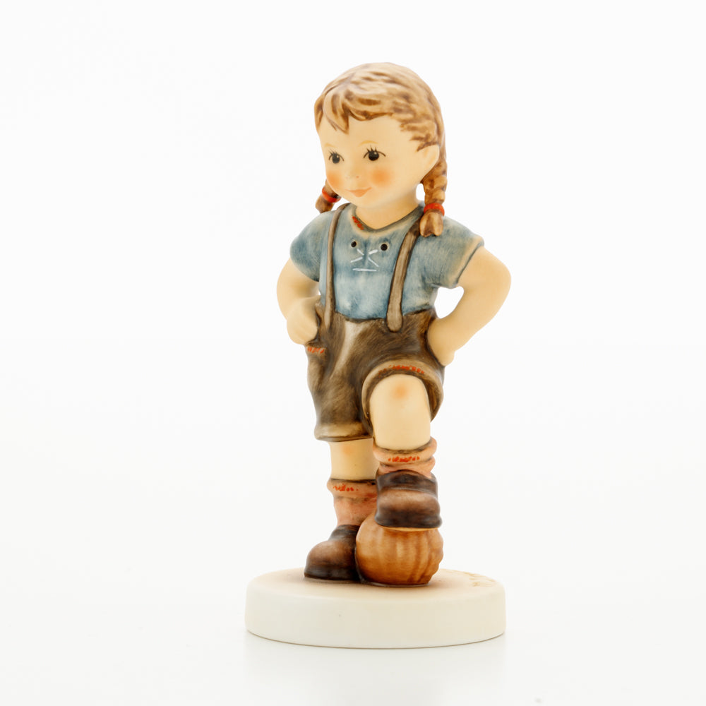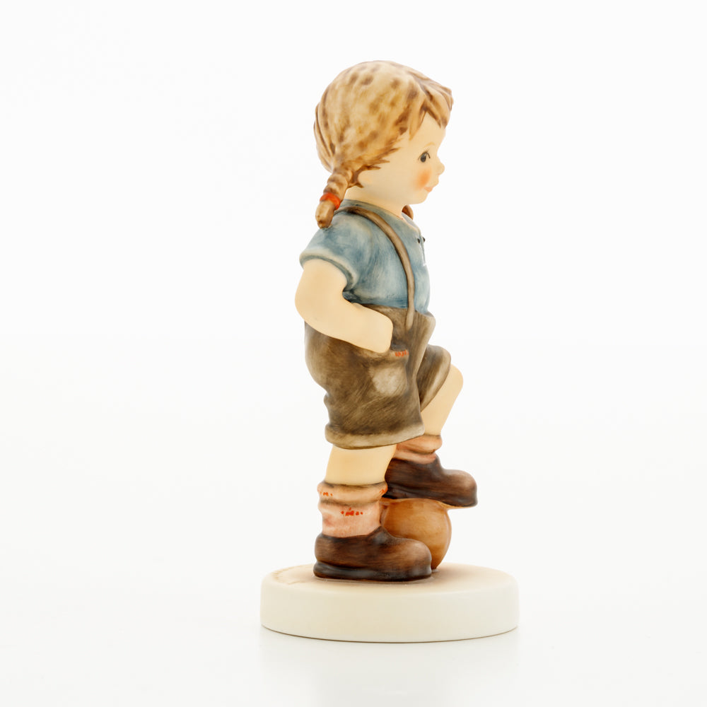 Gemeinsam macht das Leben doch gleich viel mehr Spaß: Herausfordernd, aber dennoch herzlich dreinblickend, steht unsere Sportsfreundin in feschen Lederhosen da und stützt einen Fuß auf einem Ball ab – ganz so, als würde das Spiel gleich weitergehen. Vorher fragt sie jedoch „Magst spielen?“ und lädt ein, mitzumachen. Modelleurin Tamara Fuchs hat dem aufgeweckten Hummel-Mädchen 2008 Leben eingehaucht – ein wunderbarer Klassiker aus der Hummel Manufaktur.Perfekt zu dieser Figur passt auch unsere Hummelfigur „Erster Platz“ (HUM 2420), die einen kleinen Rennfahrer zeigt, der seine Medaille für den wohlverdienten Platz 1 in der Hand hält, sowie„Gewonnen“ (HUM 2212)– ein kleiner Hummel-Junge, der mit seinem grünen Käppi und dem Ball unterm Arm das perfekte Pendant zu „Magst spielen?“ darstellt.