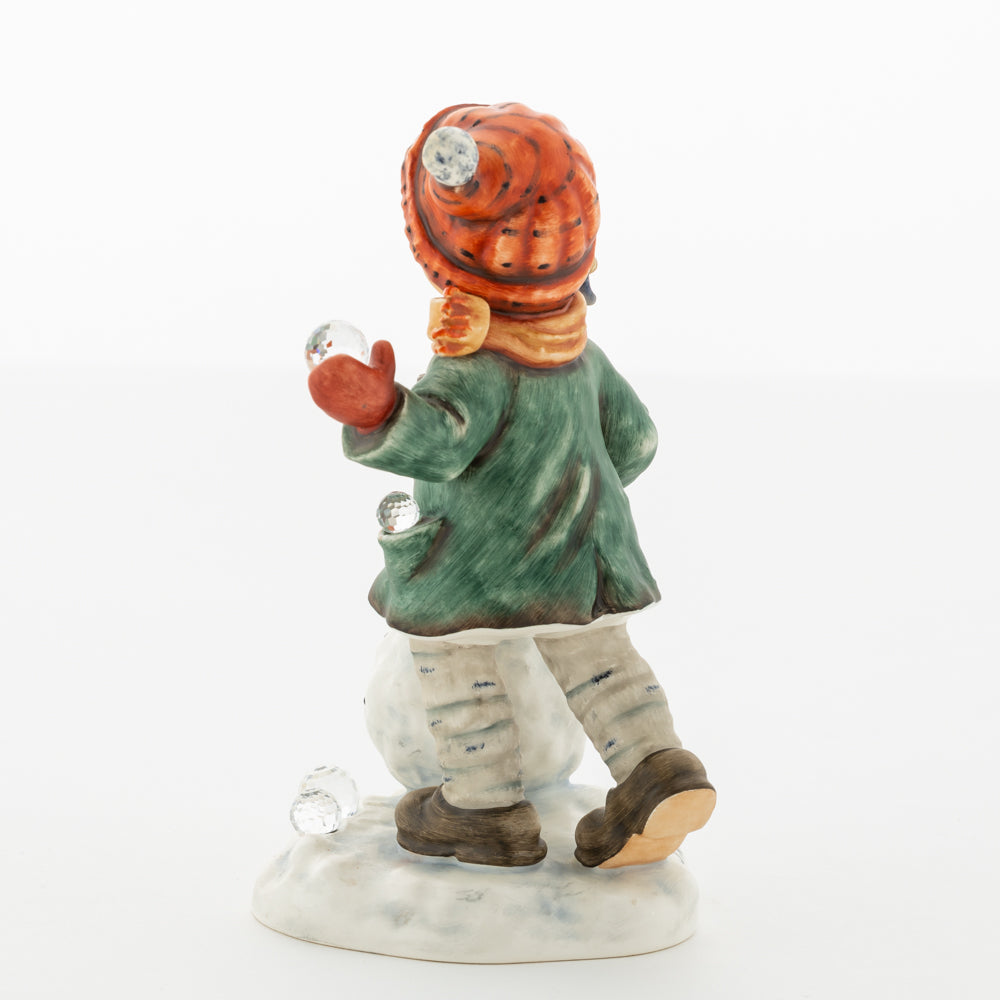 Als passender „Gegner“ bietet sich die Figur „Schneeballschlacht“ (HUM 2302) an - sie zeigt einen Hummel-Bub am Zaun, der vielleicht ja sogar mit dem Werfen begonnen hat. Aber wehe ihm - wie Du mir, so ich Dir!