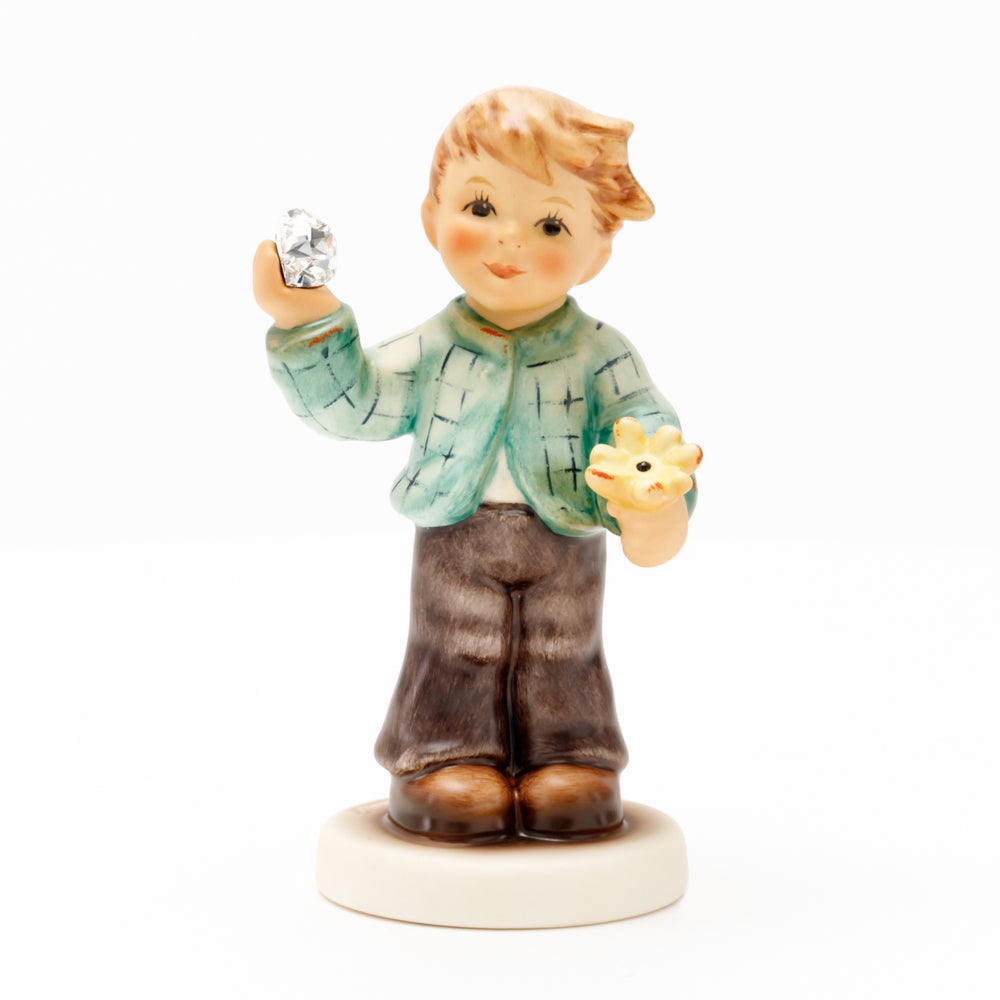 Passend zur Frühlingszeit gestaltete Modelleurin Tamara Fuchs diese Figur. In der einen Hand eine Blume, in der anderen ein wertvoller Swarovski-Kristall, der wie ein Edelstahl funkelt – auf welche Art könnte man schöner sagen: „Du bist mir das Liebste!“? Unser kleiner Hummel-Bub schaut seiner Angebeteten jedenfalls voller Liebe und Zuneigung in die Augen. Für die Überbringung seiner Liebesbotschaft hat er sich extra herausgeputzt und strahlt mit dem kleinen Kristall in seiner Hand um die Wette.