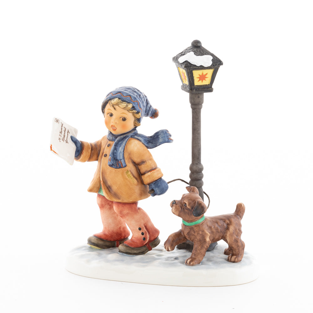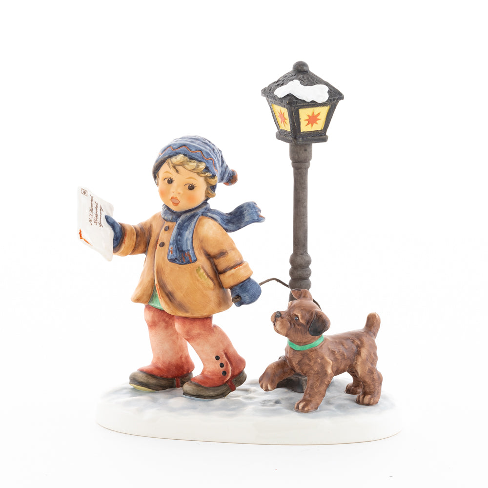 Apropos Post: Wer das Motiv der Weihnachtsbriefe gern in seine Weihnachtsdekoration aufnehmen möchte, dem empfehlen wir von Herzen die Hummel-Figur „Brief ans Christkind“ (HUM 340). Dort reckt sich ein kleiner Junge auf Zehenspitzen zum Briefkasten empor und wirft seinen Wunschzettel hinein.