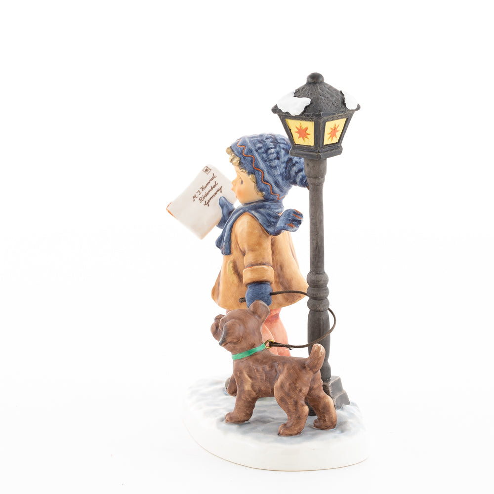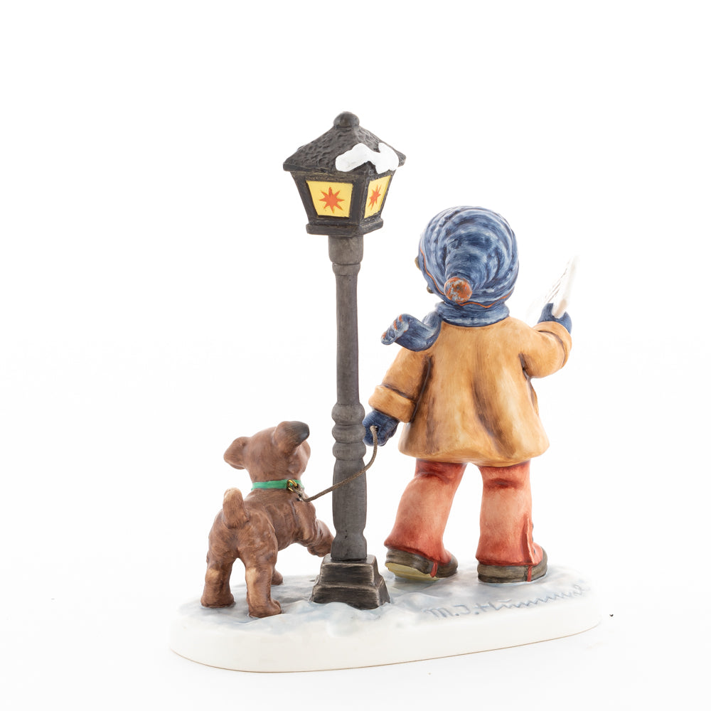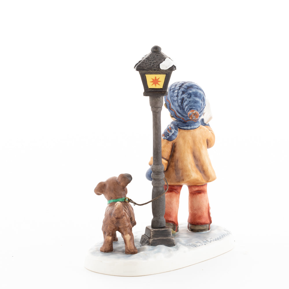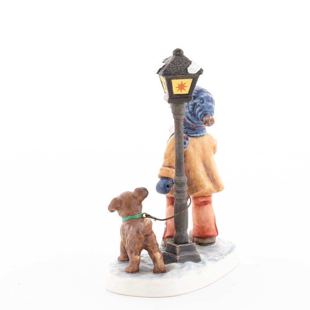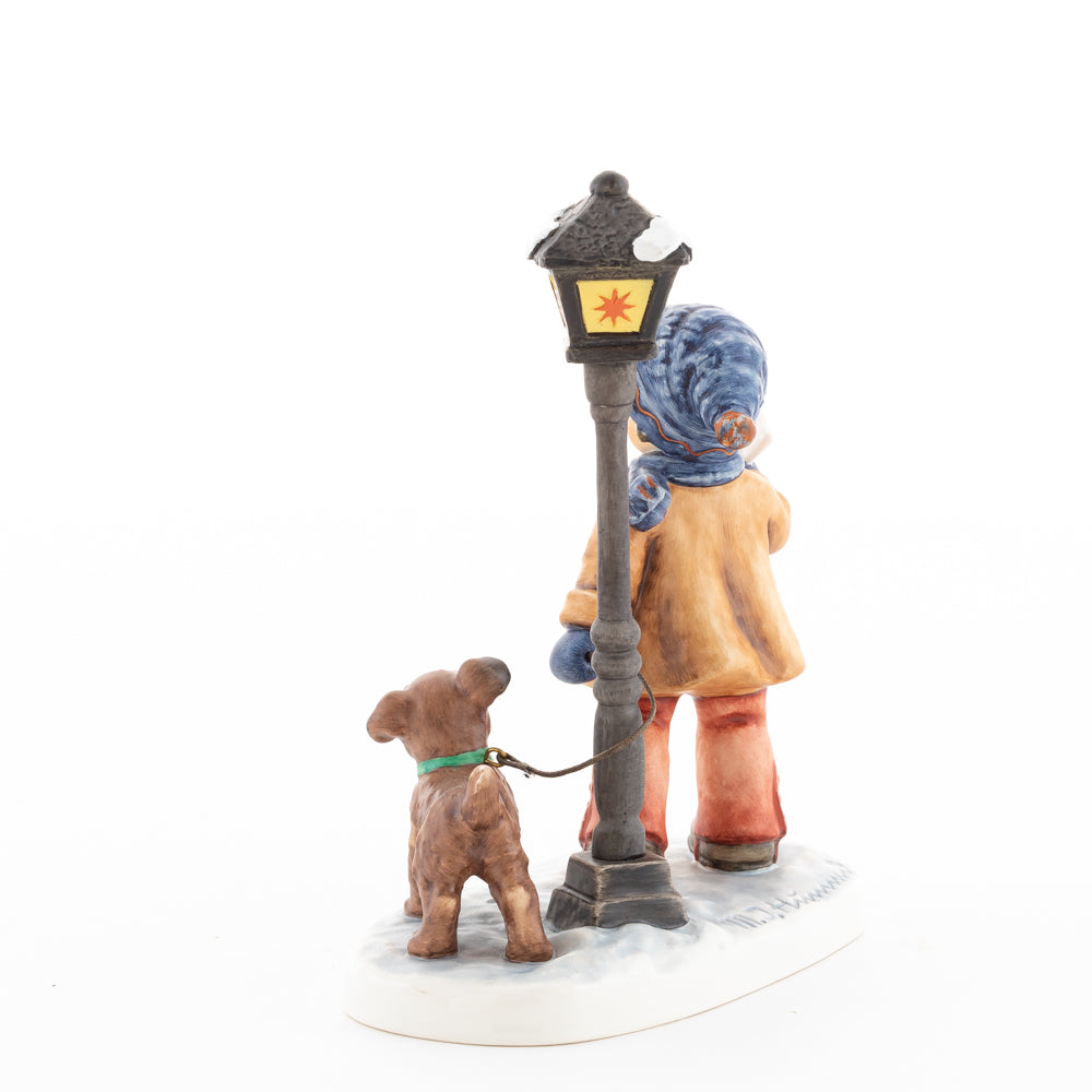 „Aus dem Weg, wir haben es doch eilig!“, scheint der Junge mit dem blauen Schal und der blauen Mütze zu rufen. In der einen Hand hält er wichtige Weihnachtspost, in der anderen die Leine seines Hundes, den er eilig hinter sich herzieht. Doch was ist das? Weil der Hund voller Vorfreude herumgesprungen ist, hat sich seine Leine um die Laterne gewickelt. Schaffen es der Bub und sein Freund aus Fell also noch rechtzeitig zum Briefkasten? Diese Doppelfigur ist handbemalt und -gefertigt und besticht durch viele liebevolle Details. Vom grünen Halsband des Hundes über das Licht in der Laterne bis zur Anschrift auf der Weihnachtspost.