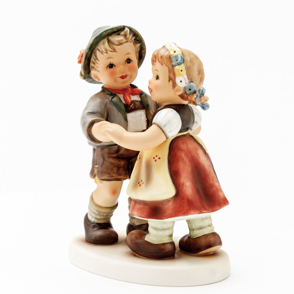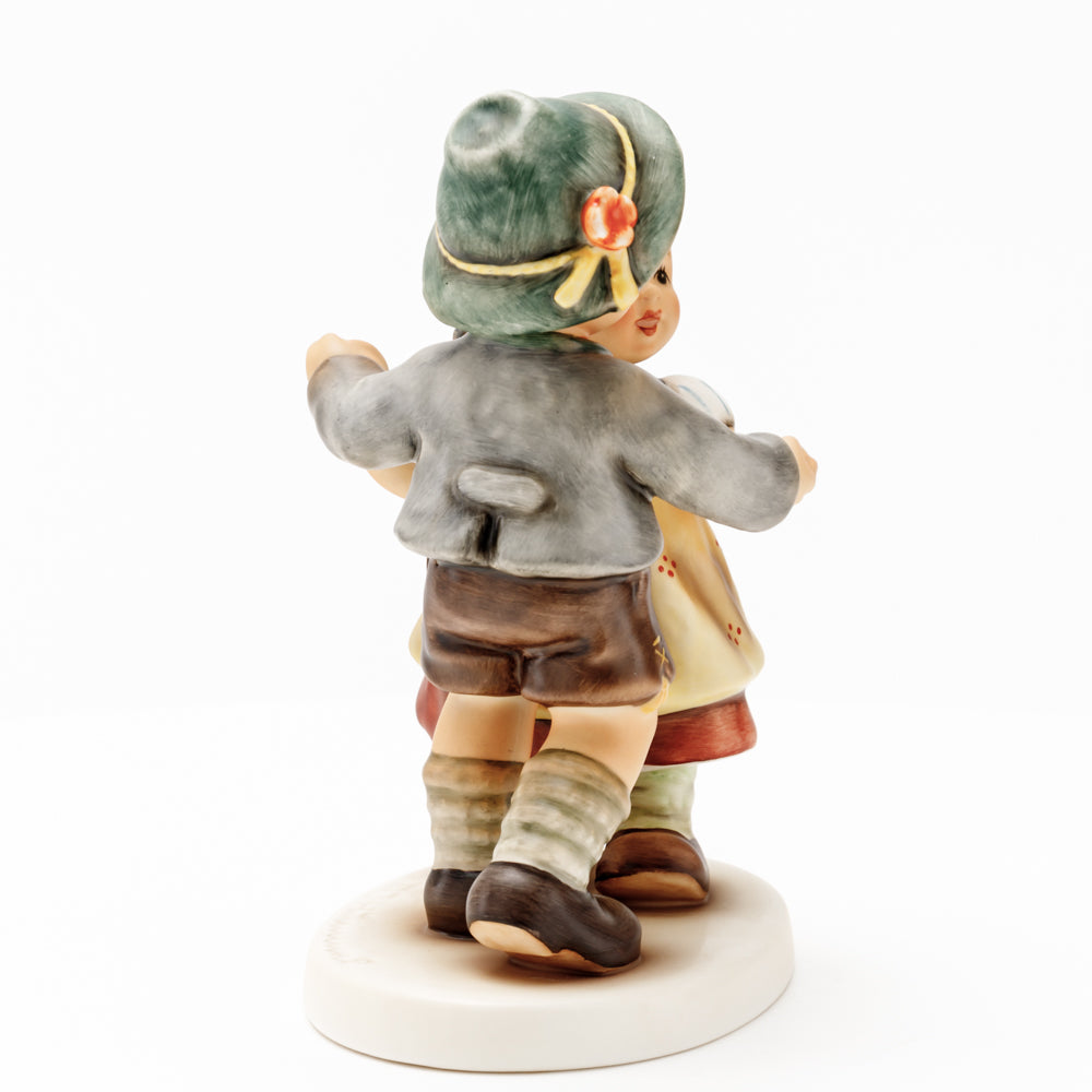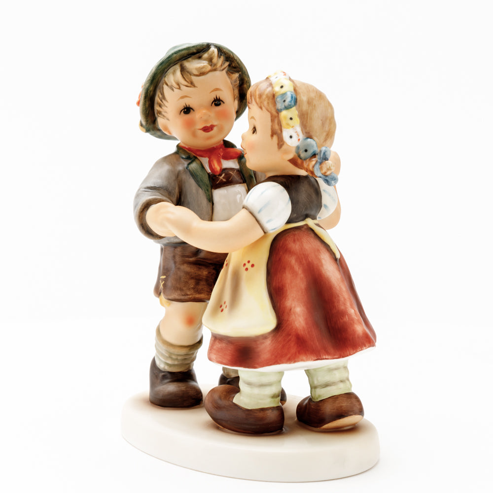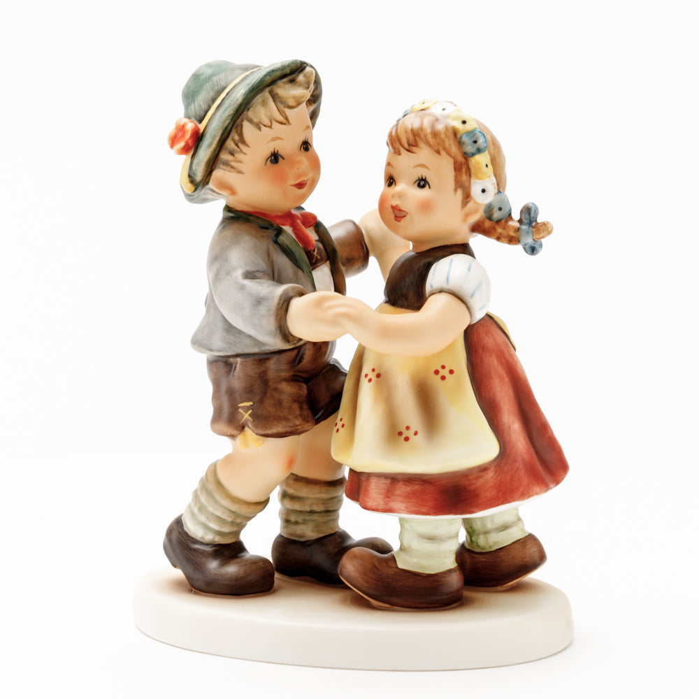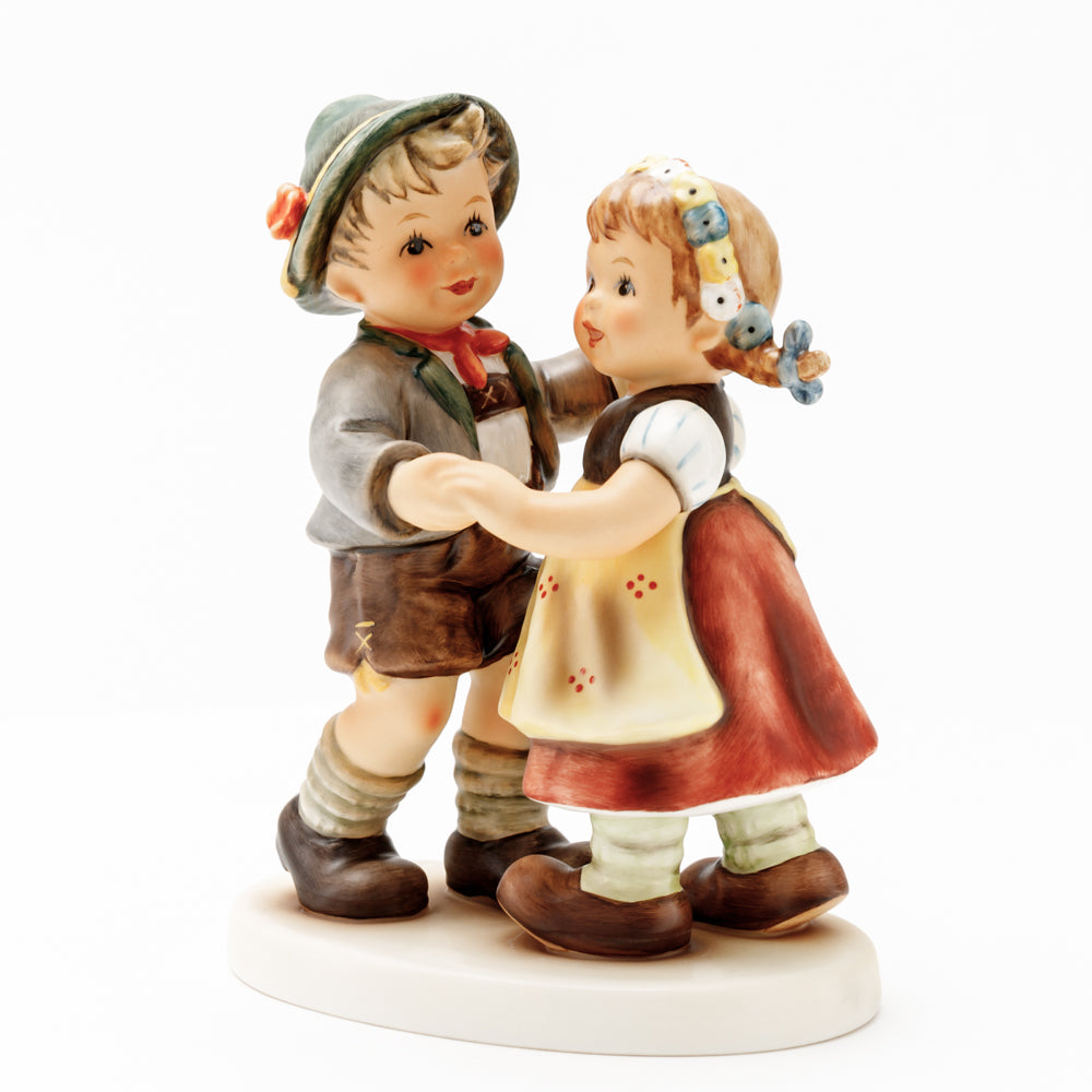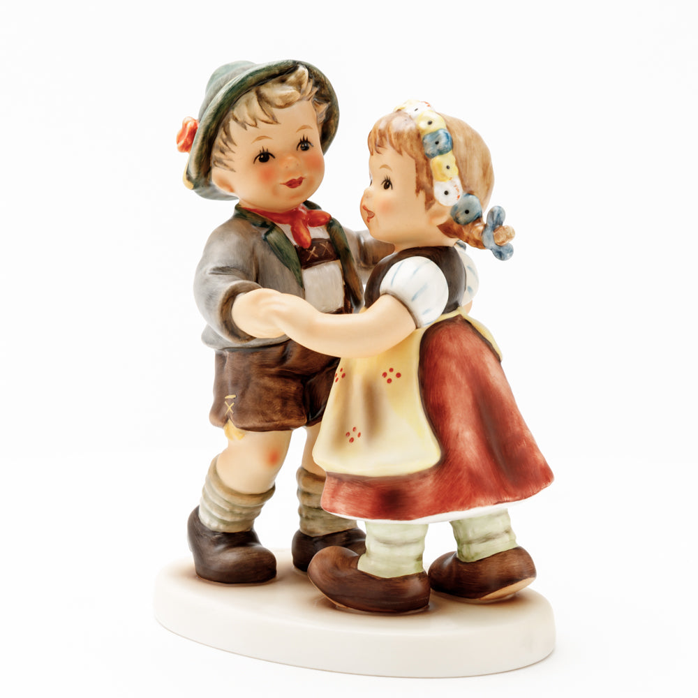Gemeinsam tanzen sie durch die Welt: Unsere Hummel-Kinder haben sich zum Tanze zusammengetan und halten sich ganz fest an den Händen. Fesch in traditioneller bayerischer Tracht angezogen, wiegen sie sich im Takt hin und her. Besonders liebenswert: Das Hummel-Mädchen trägt einen bunten Blumenkranz im Haar, der Hummel-Bub trägt zu seinem Hut das passende rote Halstuch. Die Doppelfigur wurde 2015 von Marion Huschka modelliert.