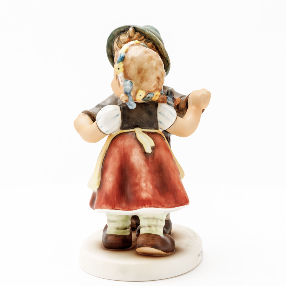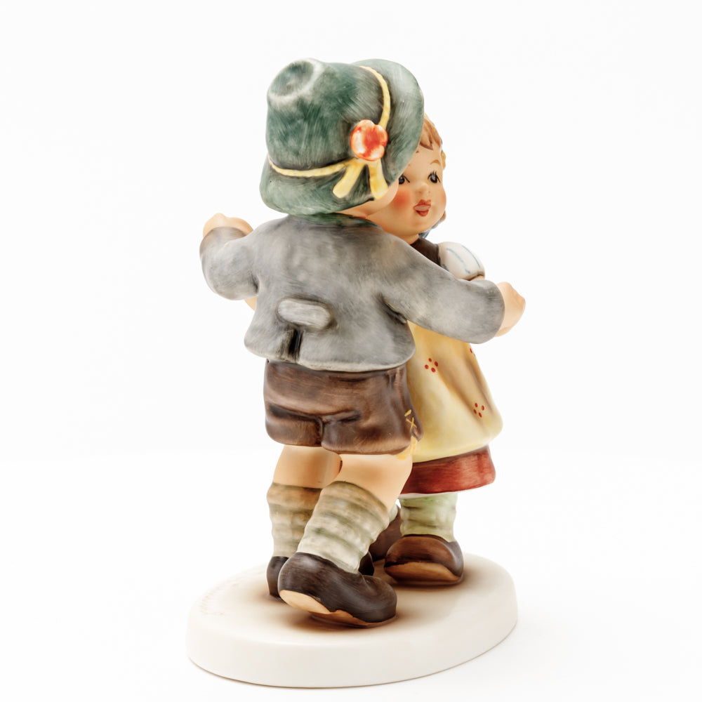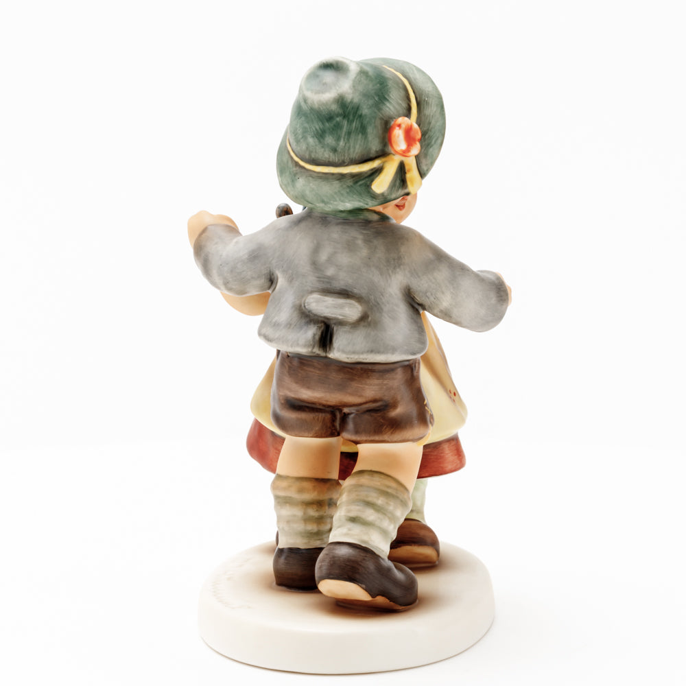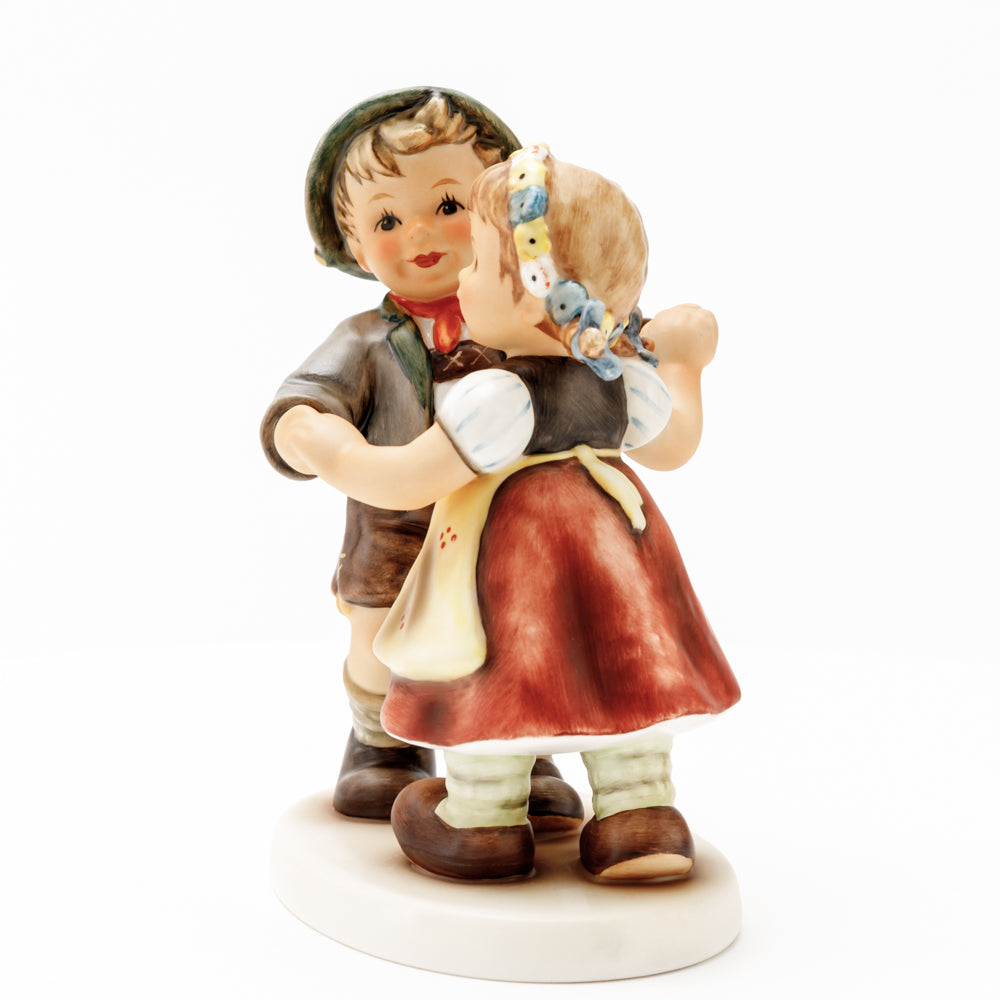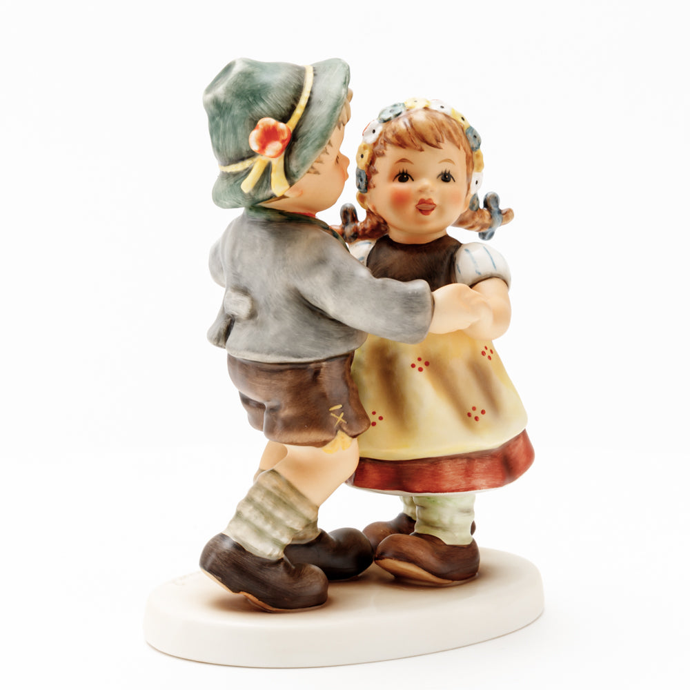 Gemeinsam tanzen sie durch die Welt: Unsere Hummel-Kinder haben sich zum Tanze zusammengetan und halten sich ganz fest an den Händen. Fesch in traditioneller bayerischer Tracht angezogen, wiegen sie sich im Takt hin und her. Besonders liebenswert: Das Hummel-Mädchen trägt einen bunten Blumenkranz im Haar, der Hummel-Bub trägt zu seinem Hut das passende rote Halstuch. Die Doppelfigur wurde 2015 von Marion Huschka modelliert.
