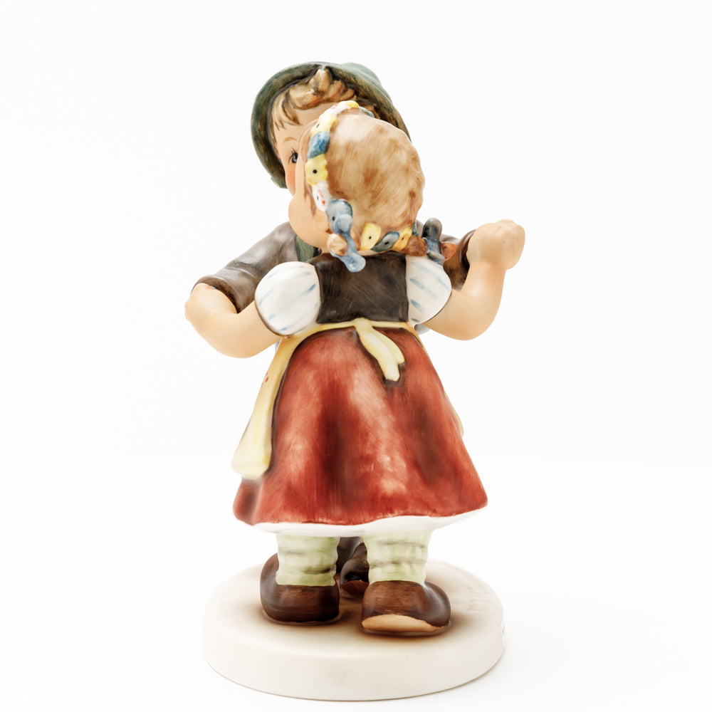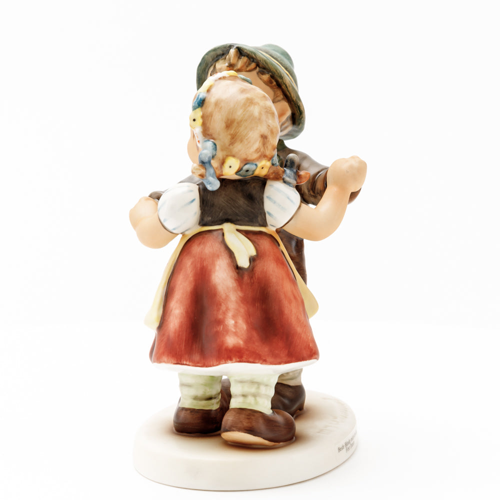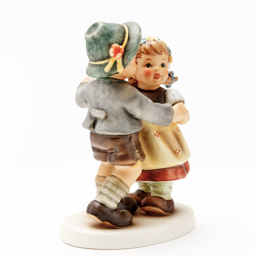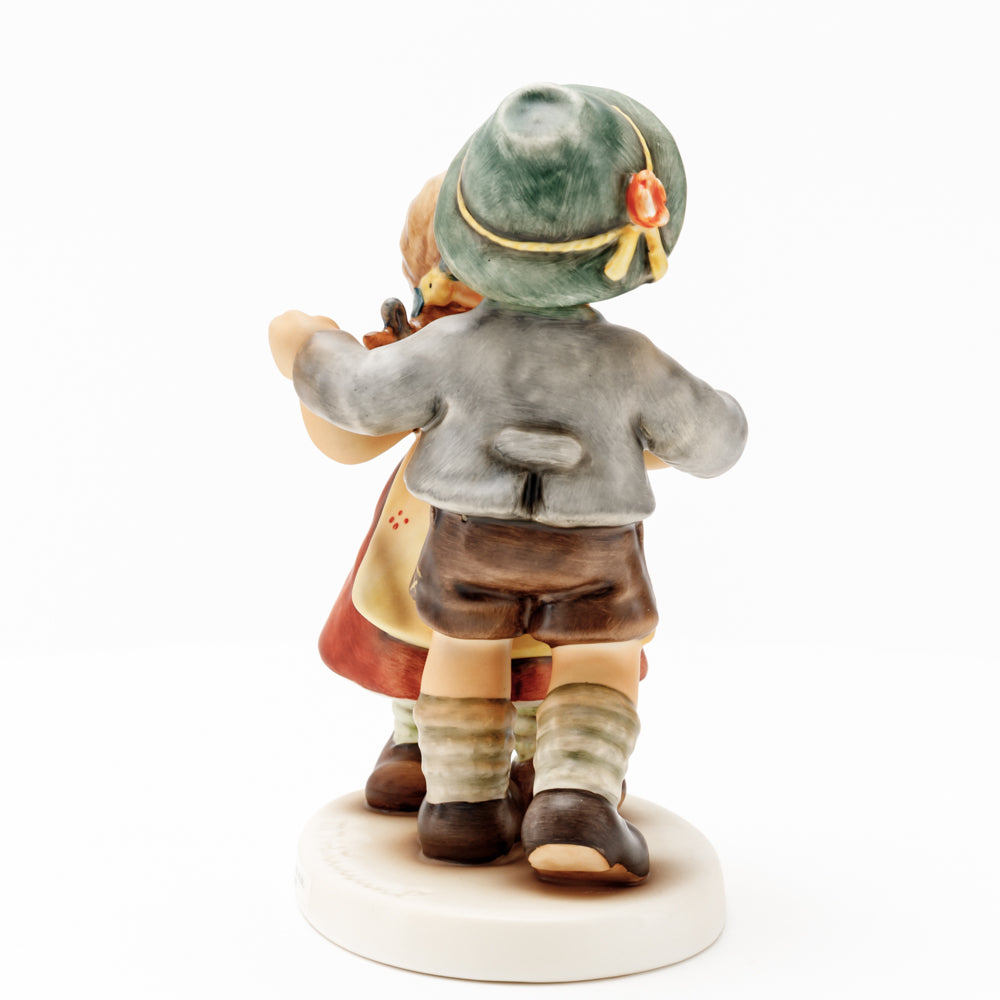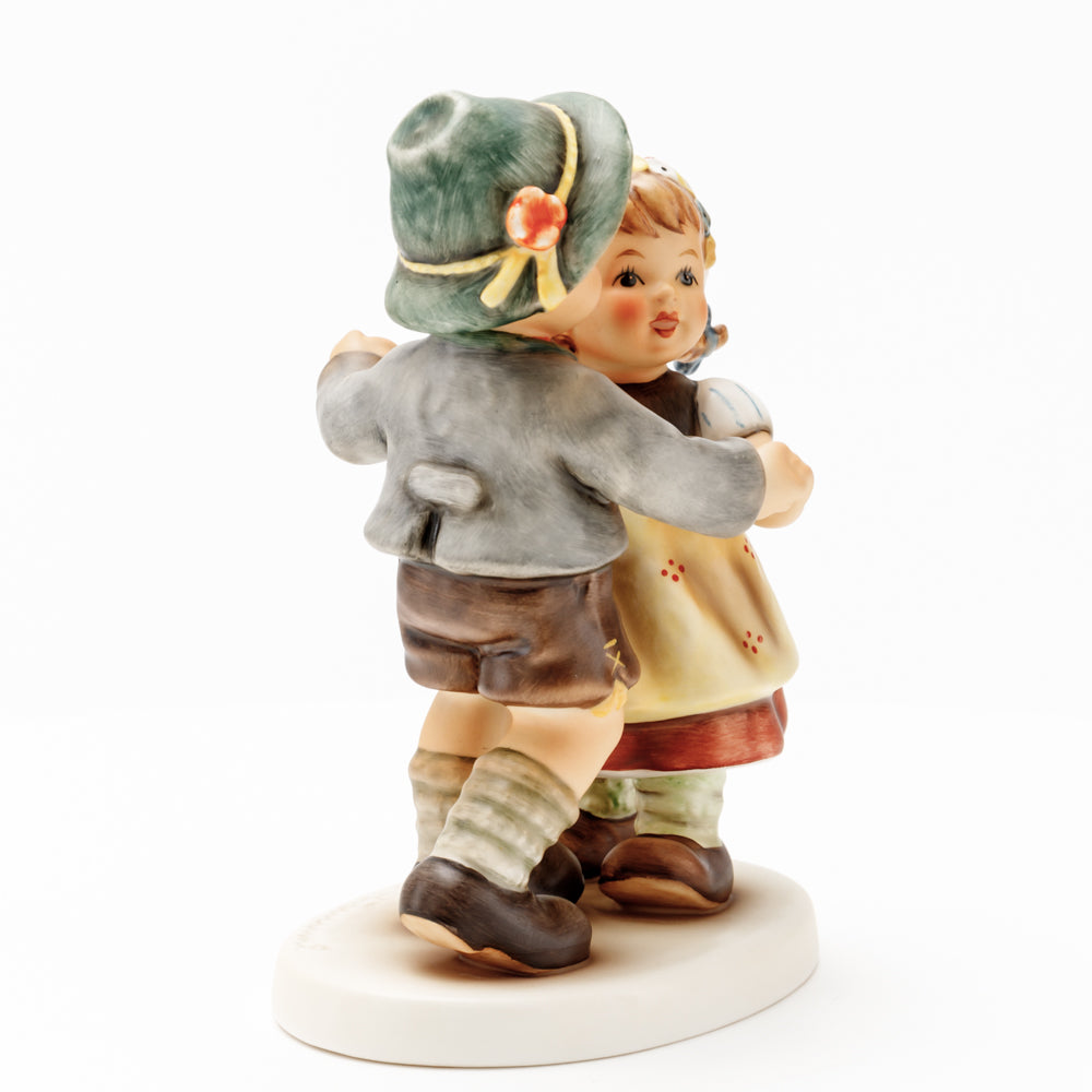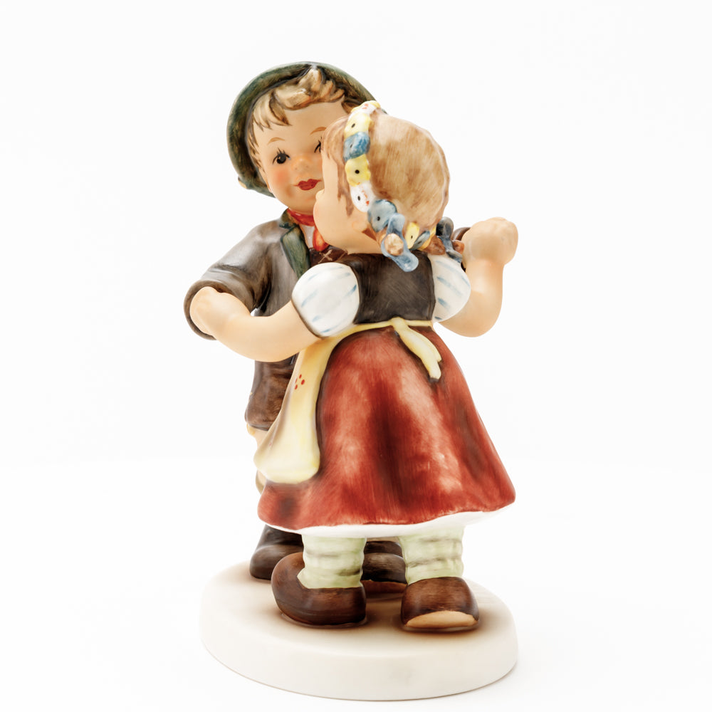 Gemeinsam tanzen sie durch die Welt: Unsere Hummel-Kinder haben sich zum Tanze zusammengetan und halten sich ganz fest an den Händen. Fesch in traditioneller bayerischer Tracht angezogen, wiegen sie sich im Takt hin und her. Besonders liebenswert: Das Hummel-Mädchen trägt einen bunten Blumenkranz im Haar, der Hummel-Bub trägt zu seinem Hut das passende rote Halstuch. Die Doppelfigur wurde 2015 von Marion Huschka modelliert.