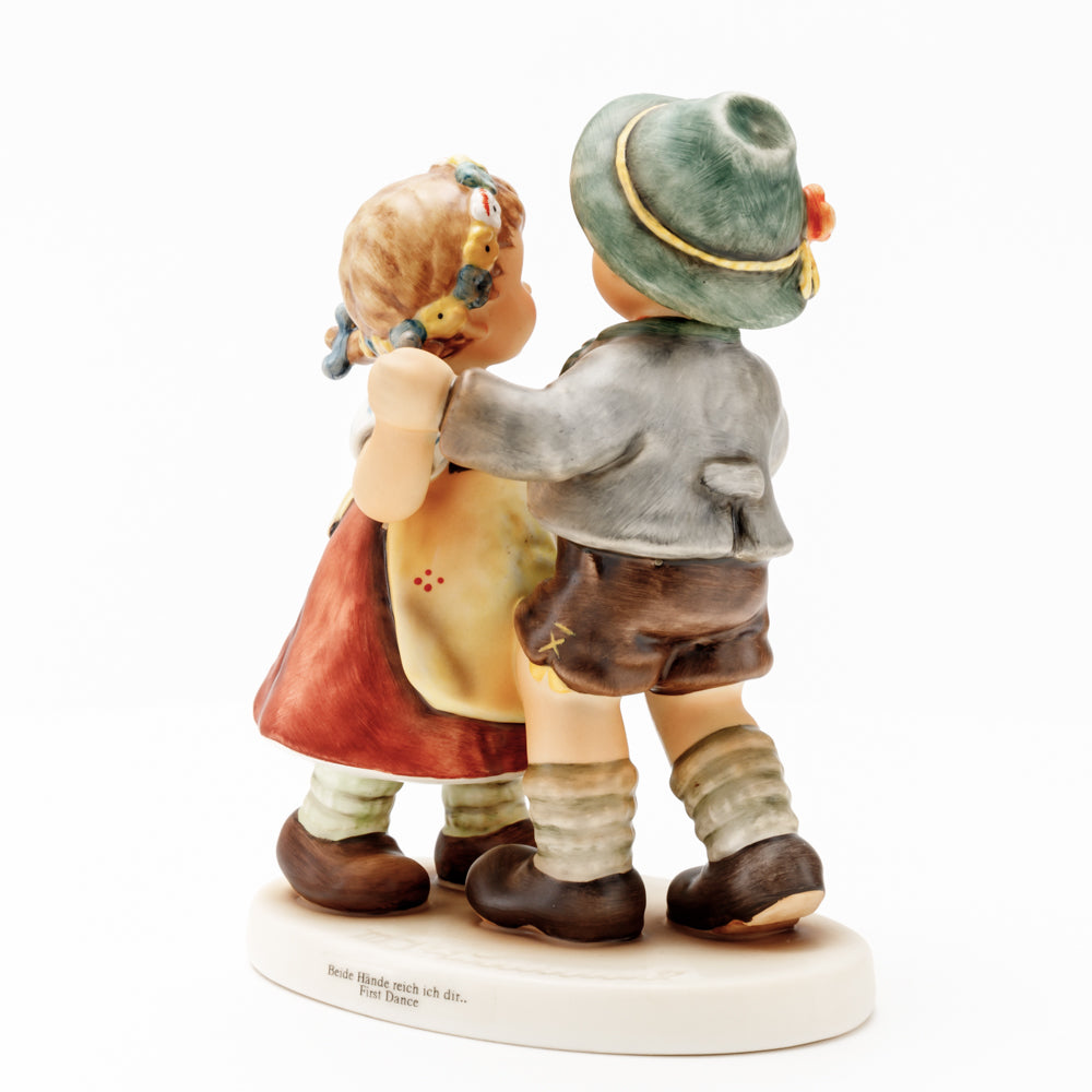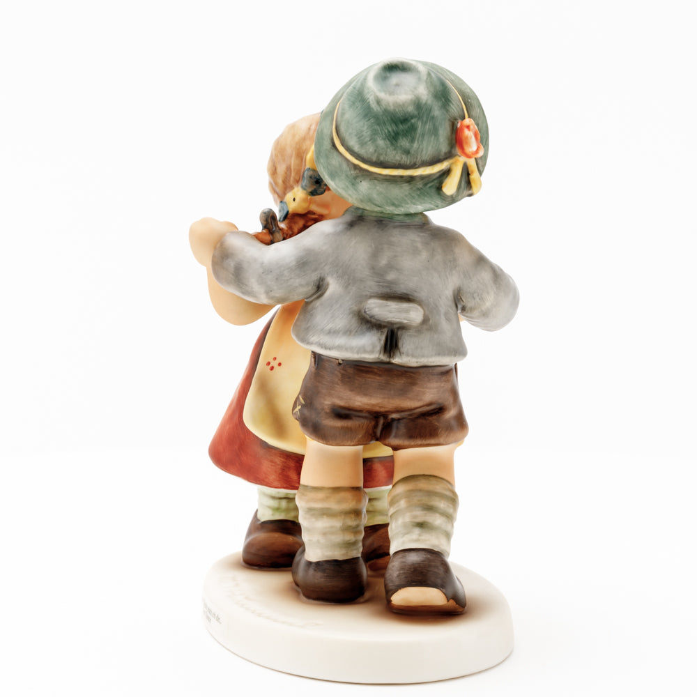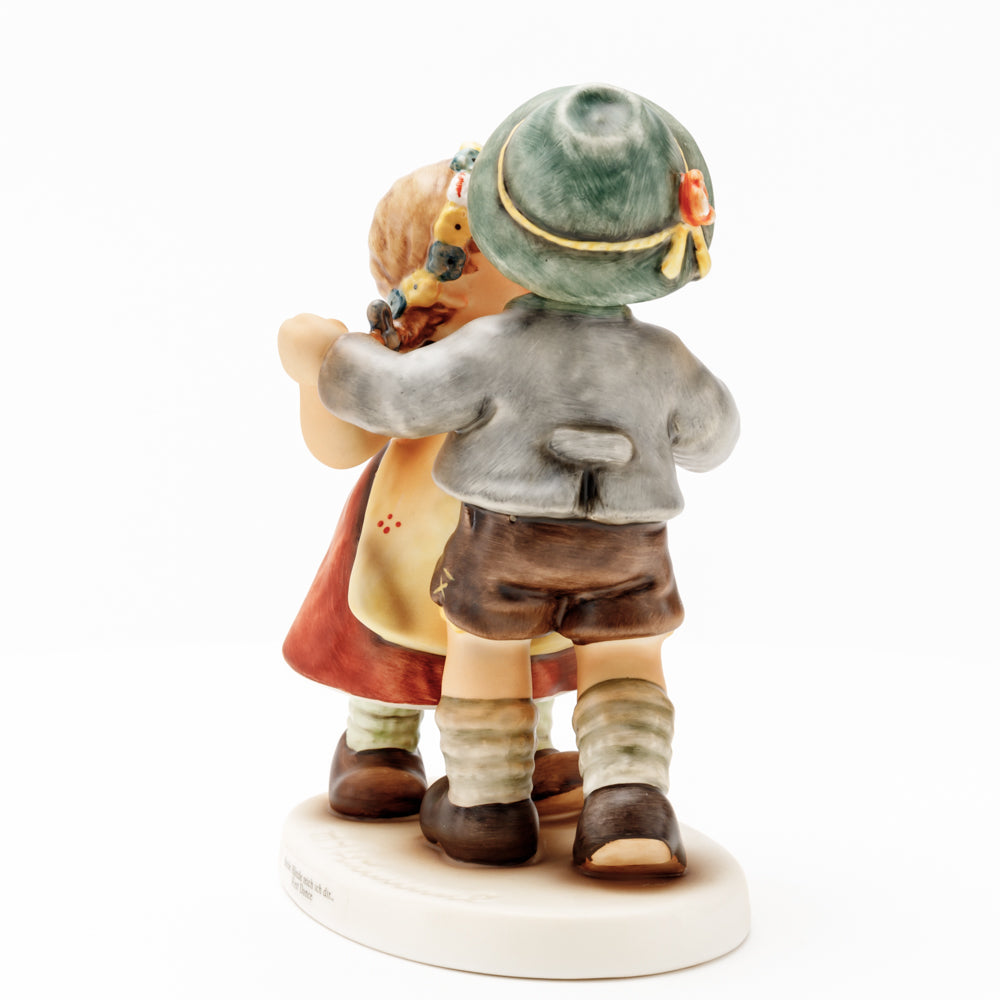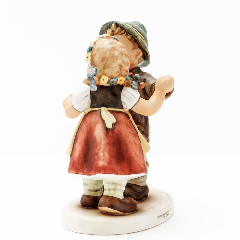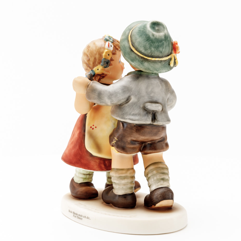 Gemeinsam tanzen sie durch die Welt: Unsere Hummel-Kinder haben sich zum Tanze zusammengetan und halten sich ganz fest an den Händen. Fesch in traditioneller bayerischer Tracht angezogen, wiegen sie sich im Takt hin und her. Besonders liebenswert: Das Hummel-Mädchen trägt einen bunten Blumenkranz im Haar, der Hummel-Bub trägt zu seinem Hut das passende rote Halstuch. Die Doppelfigur wurde 2015 von Marion Huschka modelliert.