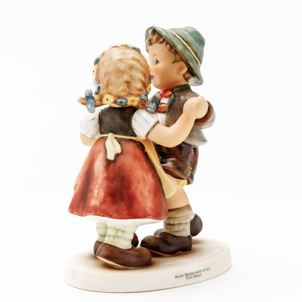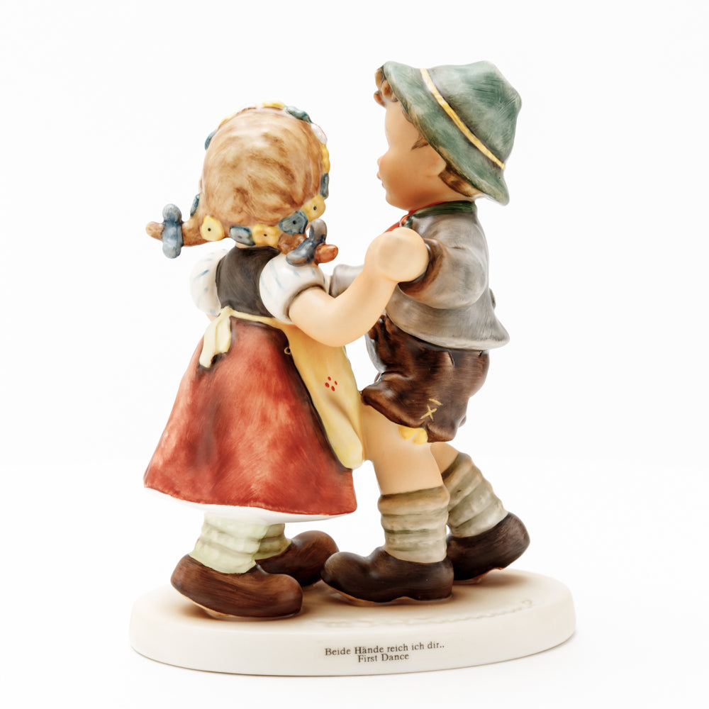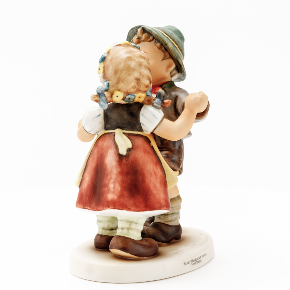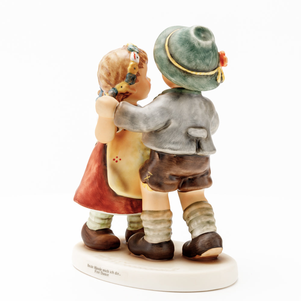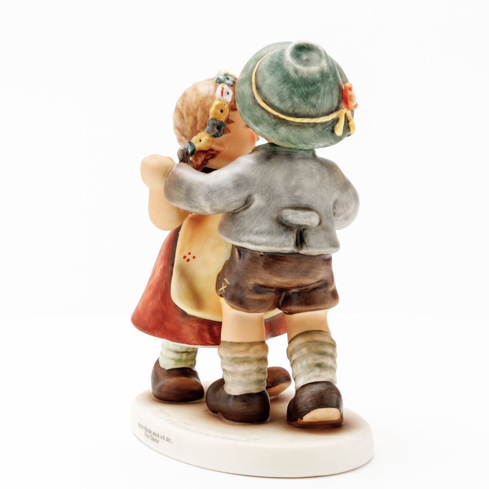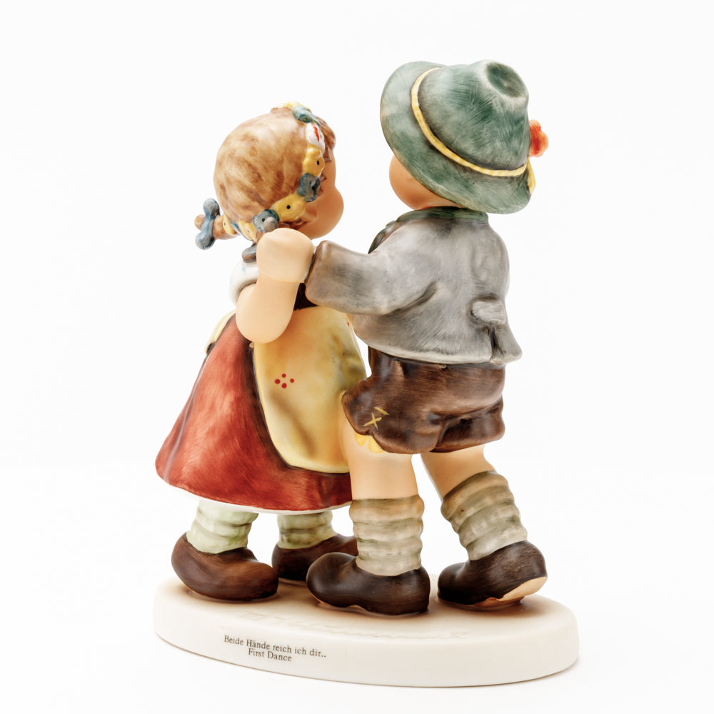 Gemeinsam tanzen sie durch die Welt: Unsere Hummel-Kinder haben sich zum Tanze zusammengetan und halten sich ganz fest an den Händen. Fesch in traditioneller bayerischer Tracht angezogen, wiegen sie sich im Takt hin und her. Besonders liebenswert: Das Hummel-Mädchen trägt einen bunten Blumenkranz im Haar, der Hummel-Bub trägt zu seinem Hut das passende rote Halstuch. Die Doppelfigur wurde 2015 von Marion Huschka modelliert.