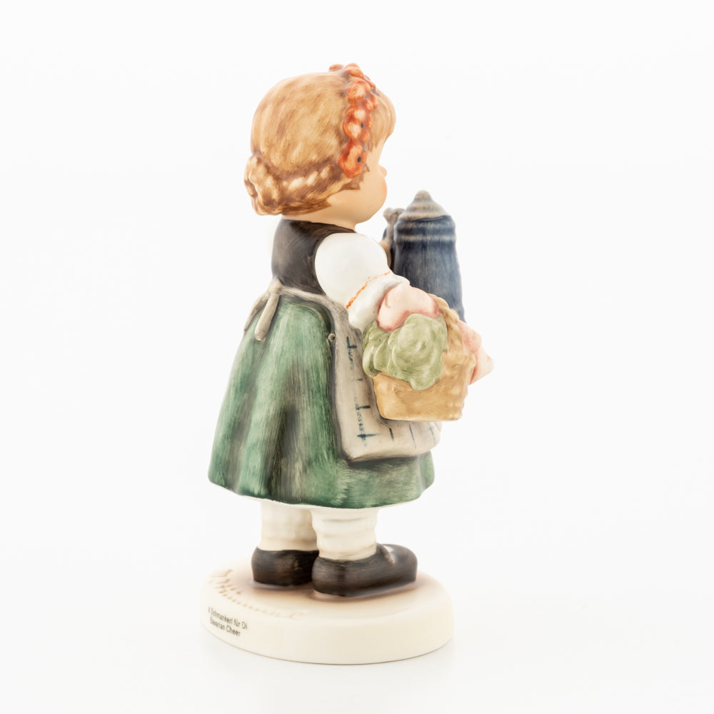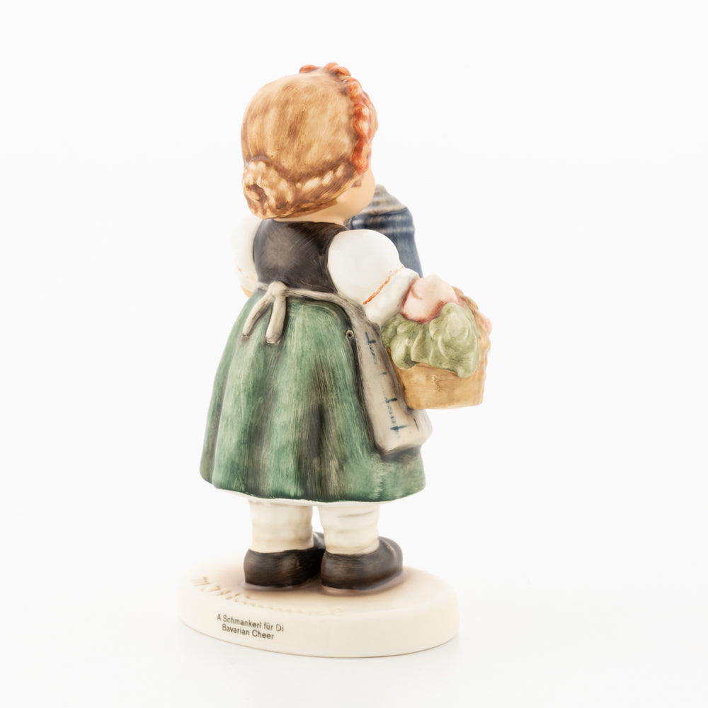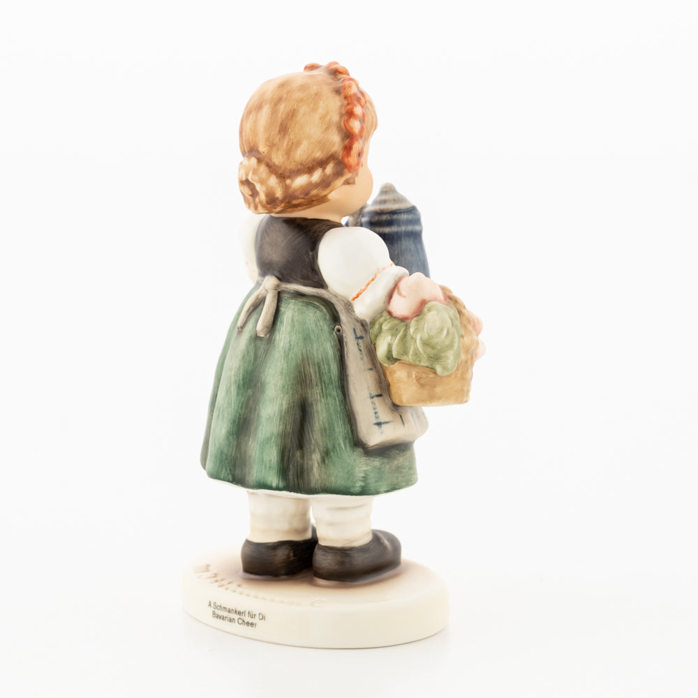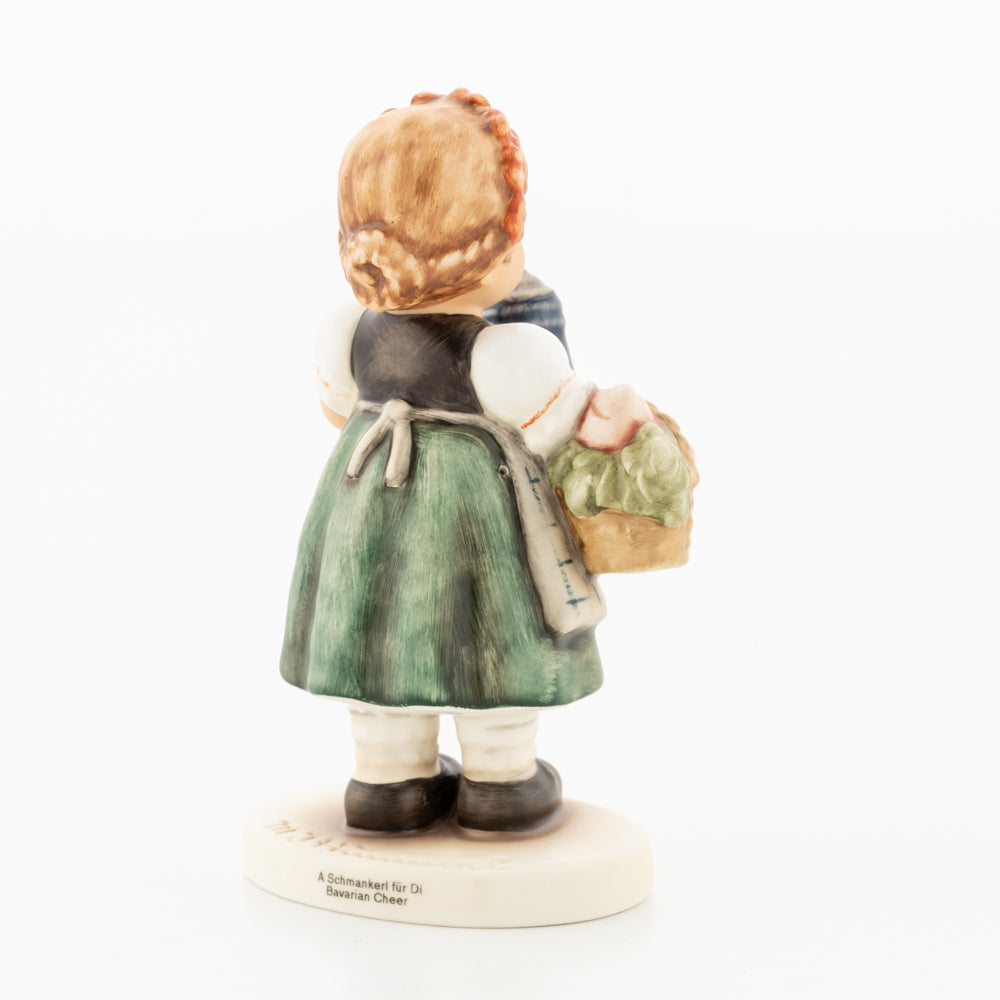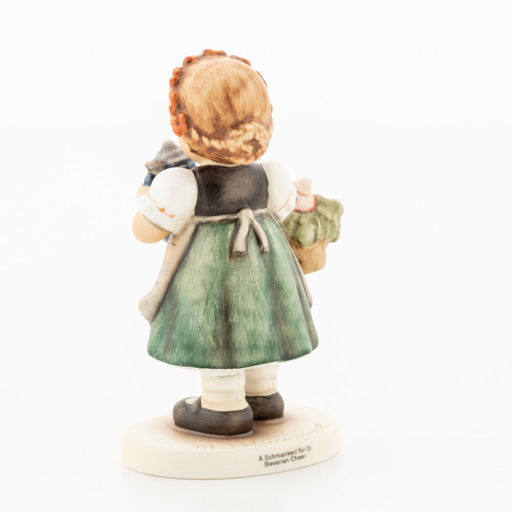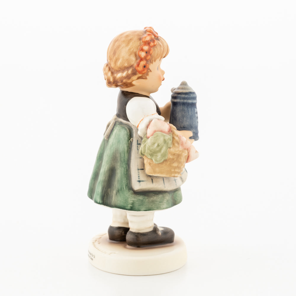 Mahlzeit! In der Hummel Manufaktur Rödental geht es auch einmal zünftig zu. Mit einem Korb voll Rettich im Arm und einem Bierkrug in der Hand macht sich das Hummel-Mädchen auf den Weg zum Dorf- oder sogar Oktoberfest. Natürlich darf die Tracht da nicht fehlen: Gekleidet im Dirndl und einen sorgsam geflochtenen Blumenkranz auf dem Kopf zeigt sich die original M.I. Hummel-Figur als echt bayerisches Madl.