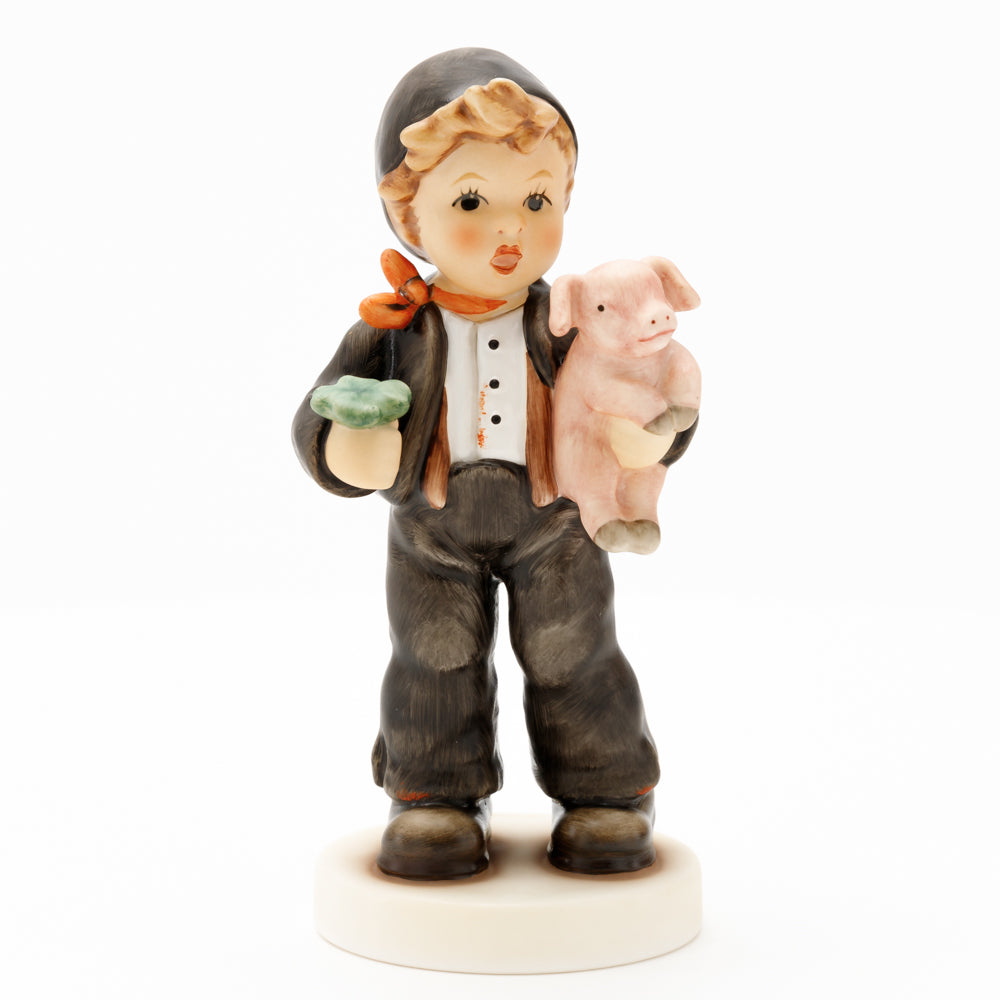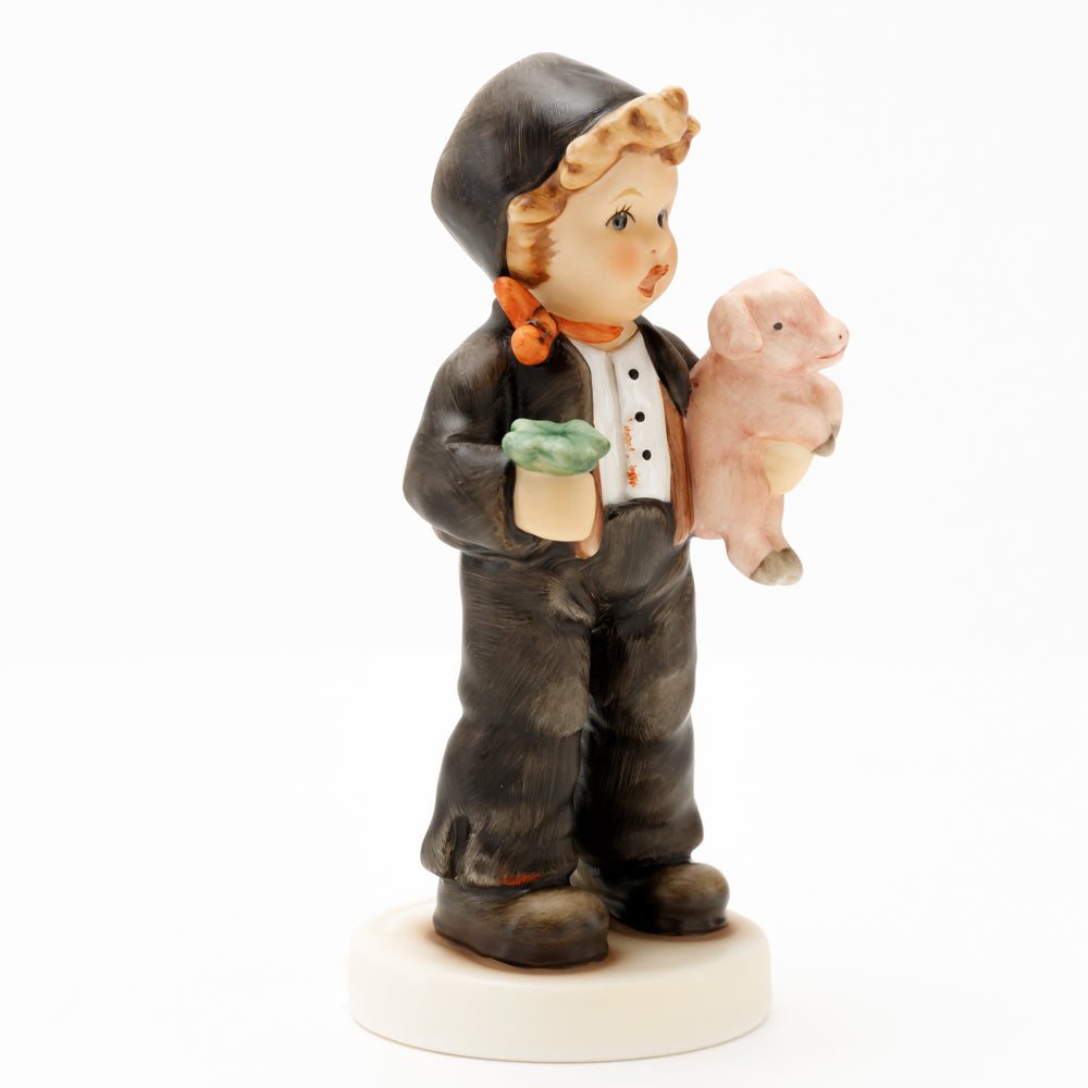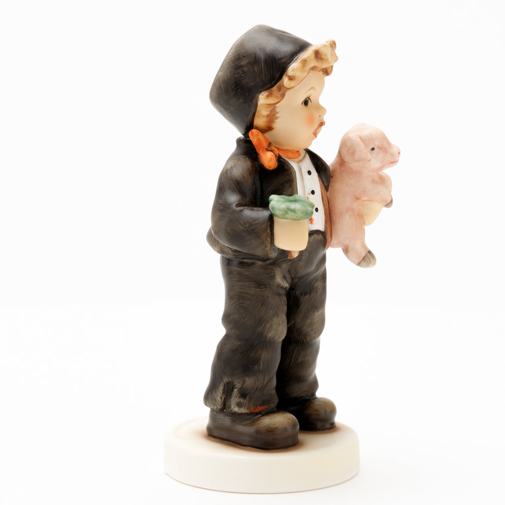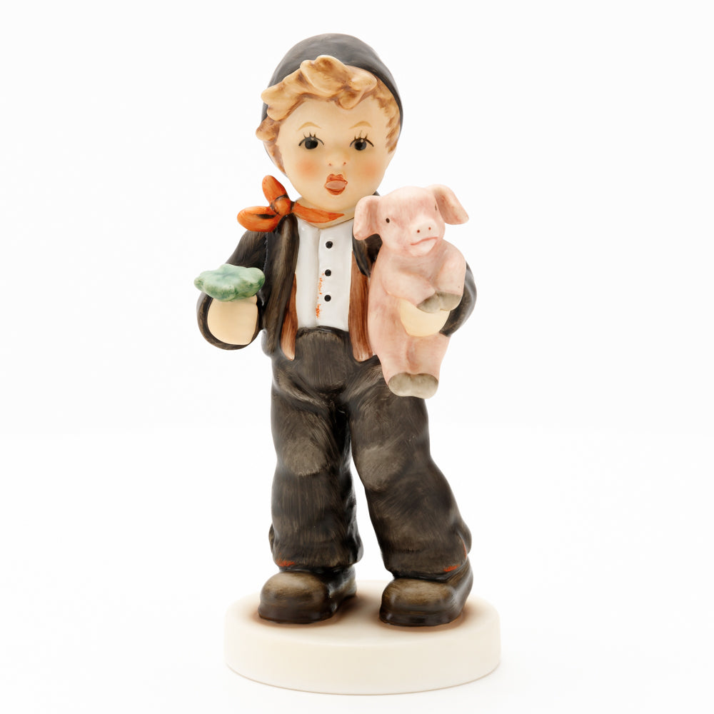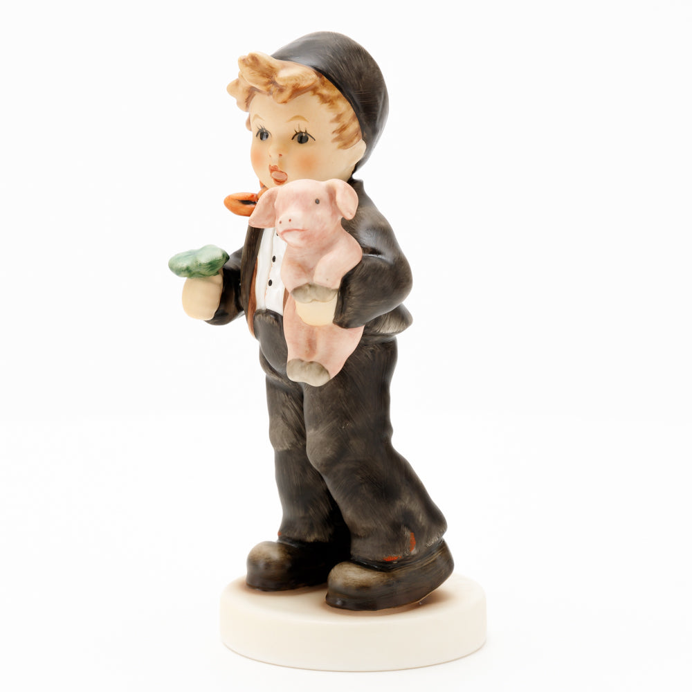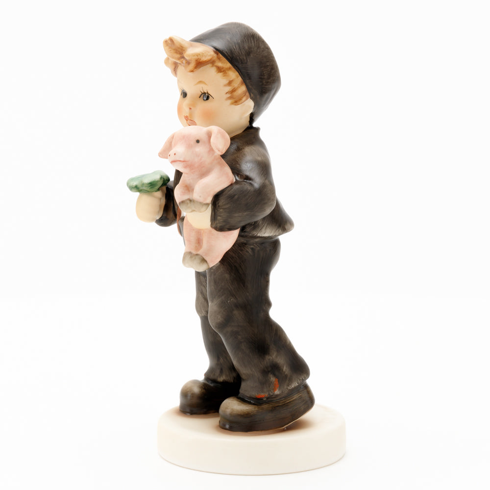 Die Figur "3x Glück" ist der neue Glücksbringer aus dem Hause Hummel! Diese original M.I. Hummel-Figur ist im Jahr 2017 entstanden und verkörpert eine Neuauflage des vor 82 Jahren entstandenen Schornsteinfegers). Der erste Schornsteinfeger wurde 1935 von Arthur Moeller modelliert. Der von Tamara Fuchs entworfene Schornsteinfeger ist ein klassisches Symbol, das Glück bringen soll. Unterstrichen wird dies noch durch das kleine rosa Schweinchen und dem vierblättrigen Kleeblatt, das die Hummel-Figur in ihren Händen hält. Deshalb entstand für diese liebevoll ausgearbeitete und handgefertigte Figur der Name "3x Glück". Komplettiert wird diese Hummel-Figur durch die Figur "Gefundenes Glück" (HUM 2379).