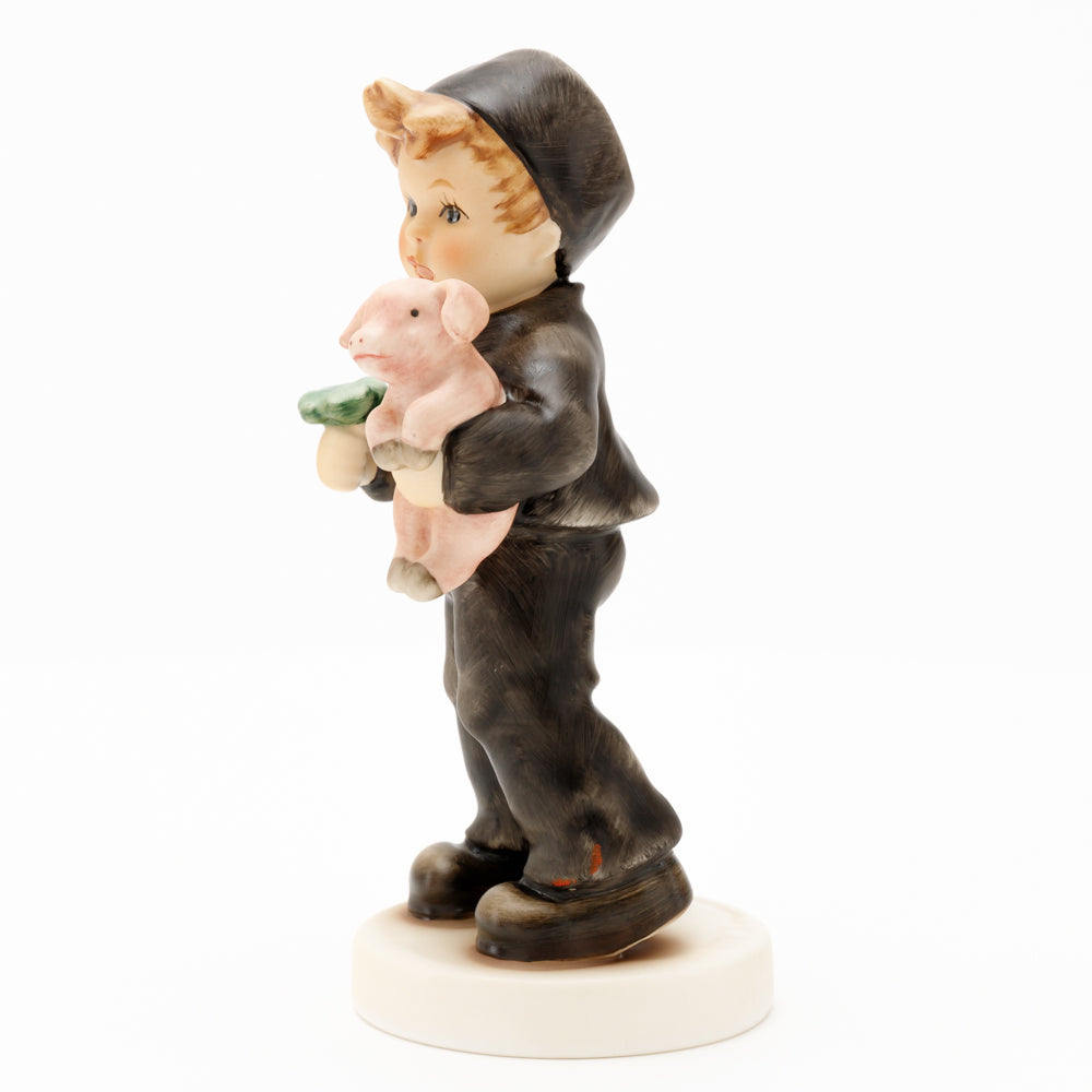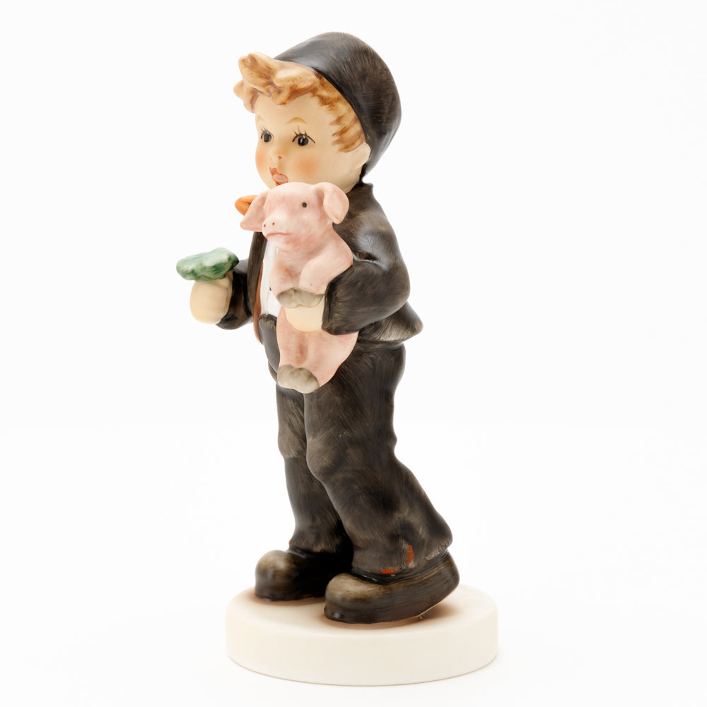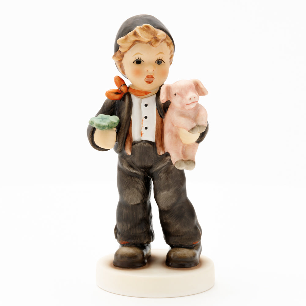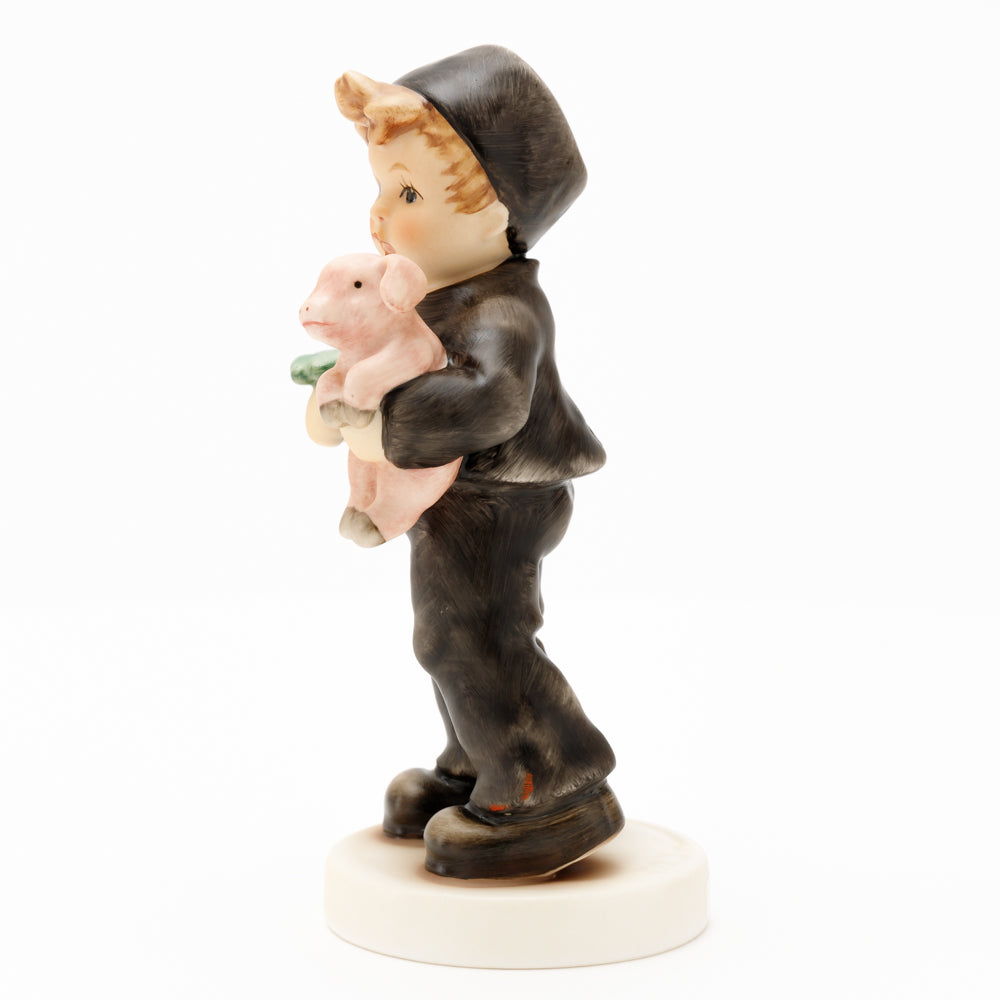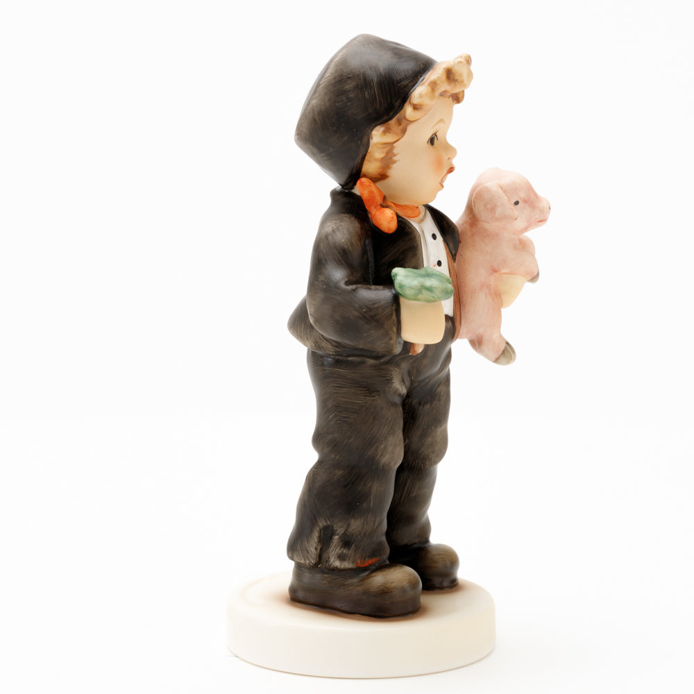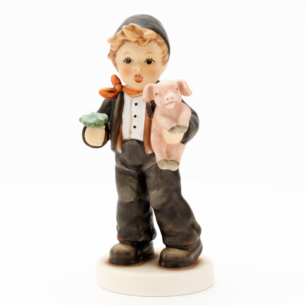 Die Figur "3x Glück" ist der neue Glücksbringer aus dem Hause Hummel! Diese original M.I. Hummel-Figur ist im Jahr 2017 entstanden und verkörpert eine Neuauflage des vor 82 Jahren entstandenen Schornsteinfegers). Der erste Schornsteinfeger wurde 1935 von Arthur Moeller modelliert. Der von Tamara Fuchs entworfene Schornsteinfeger ist ein klassisches Symbol, das Glück bringen soll. Unterstrichen wird dies noch durch das kleine rosa Schweinchen und dem vierblättrigen Kleeblatt, das die Hummel-Figur in ihren Händen hält. Deshalb entstand für diese liebevoll ausgearbeitete und handgefertigte Figur der Name "3x Glück". Komplettiert wird diese Hummel-Figur durch die Figur "Gefundenes Glück" (HUM 2379).