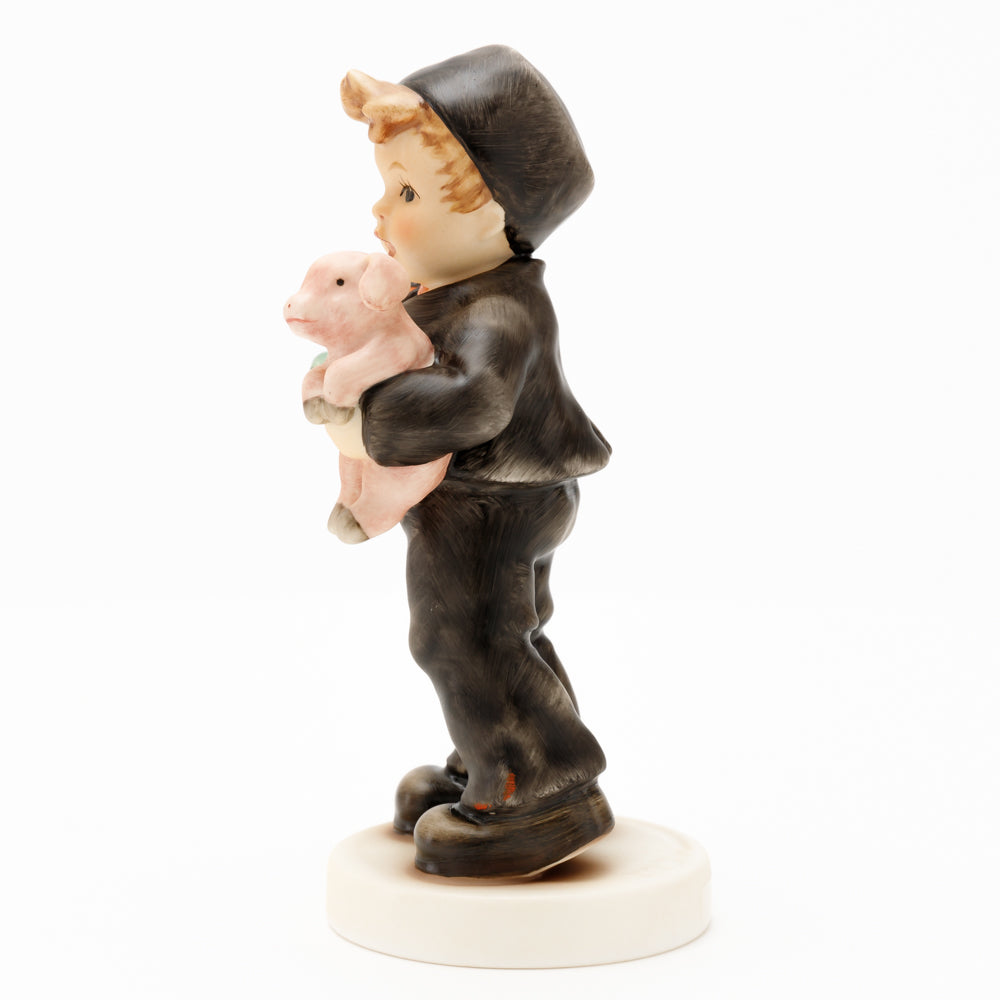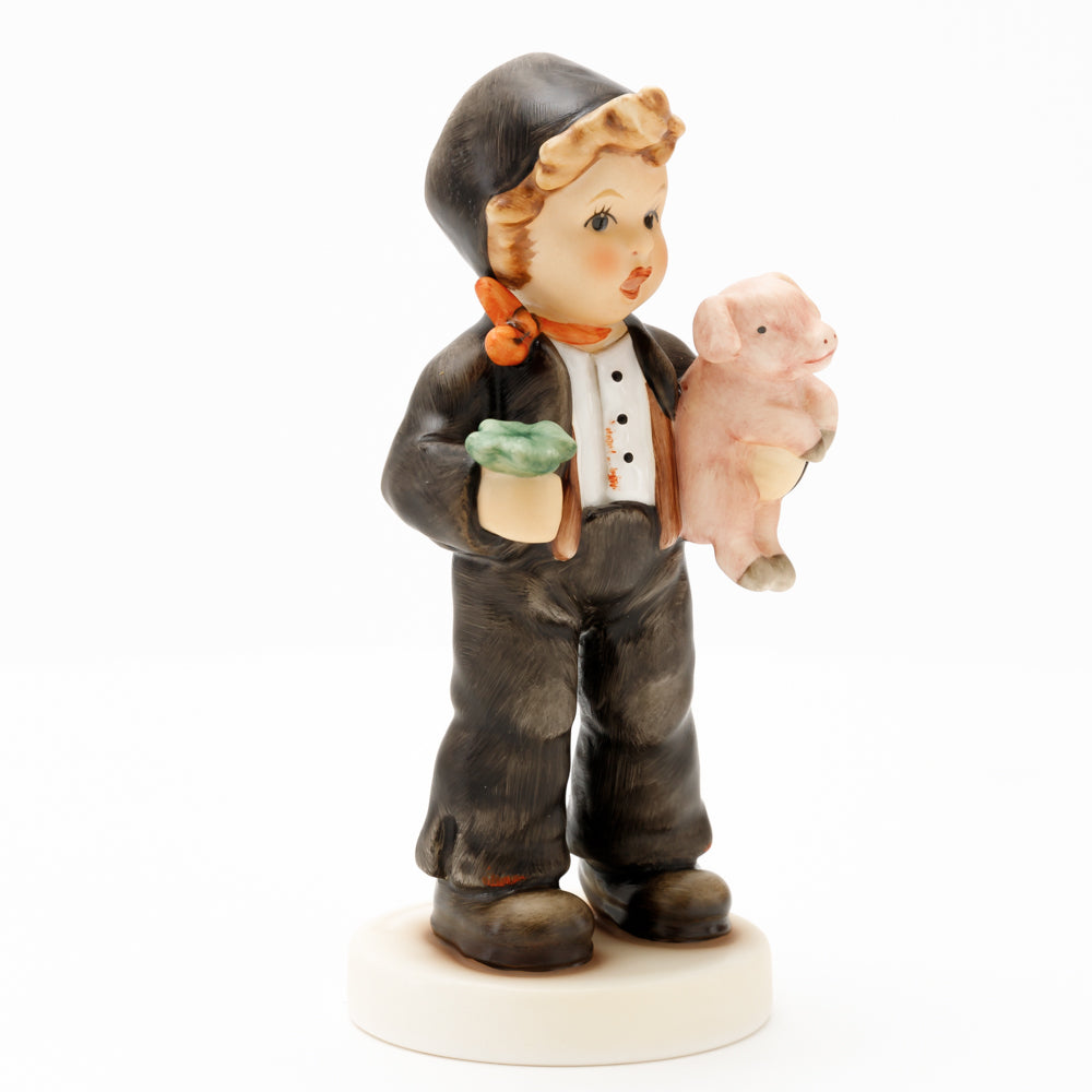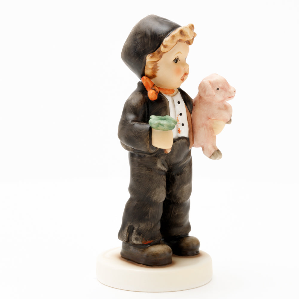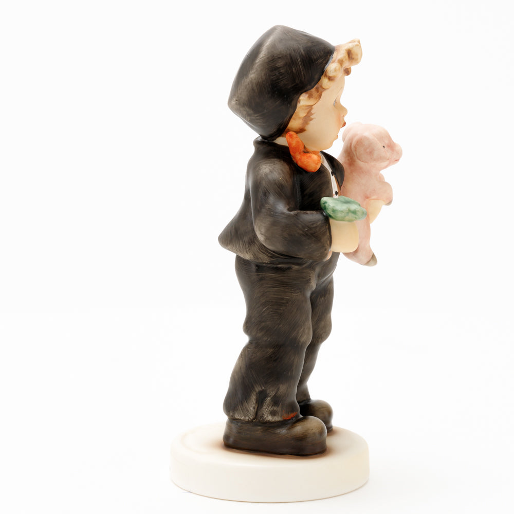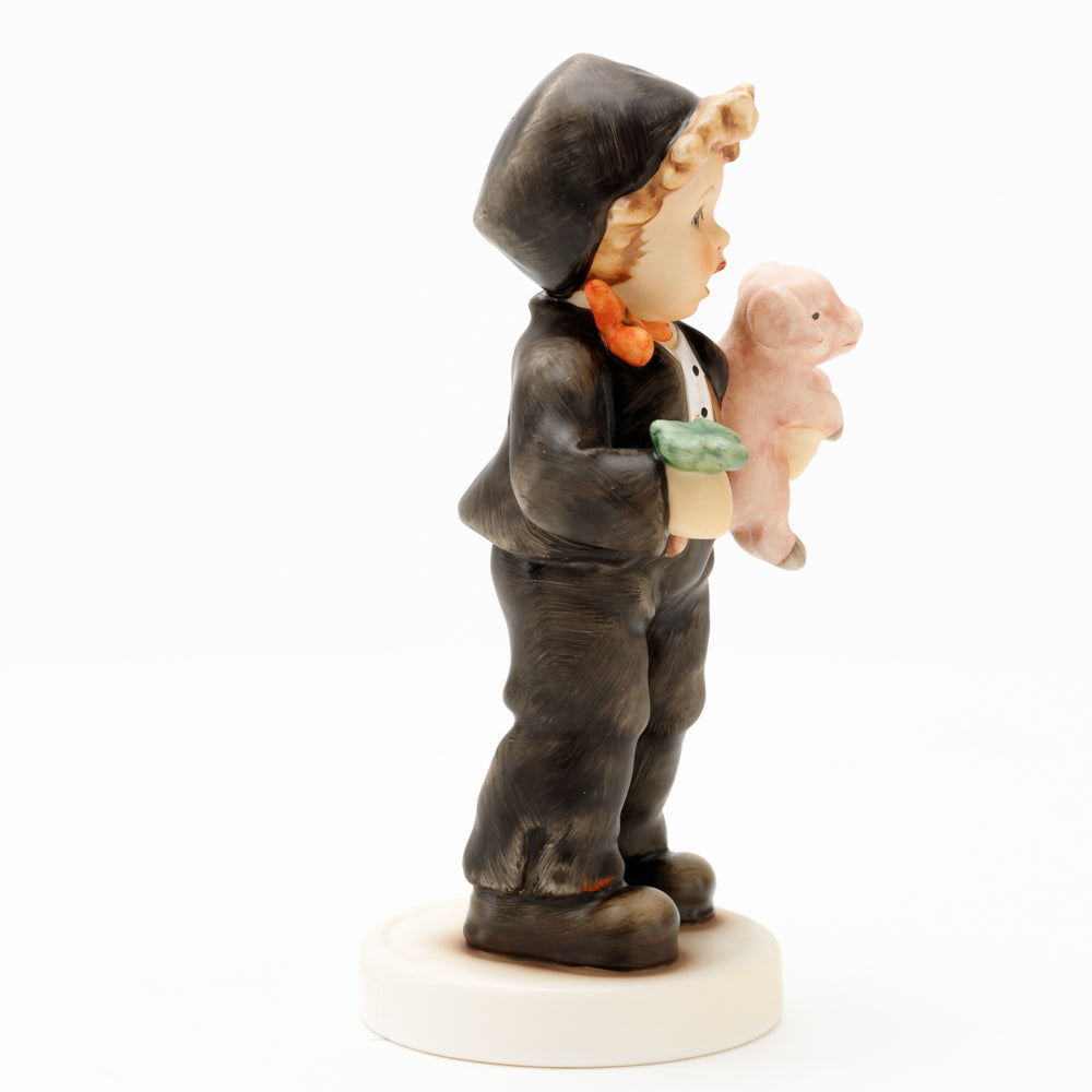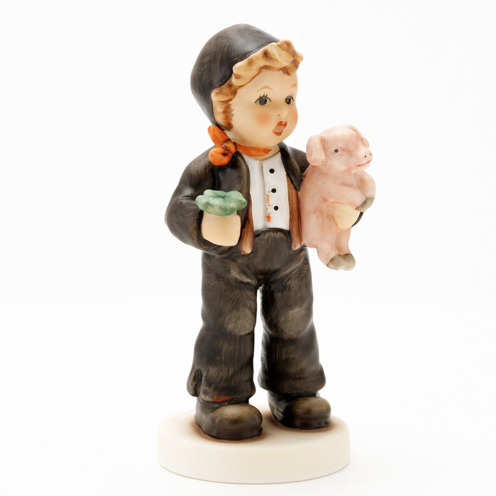 Die Figur "3x Glück" ist der neue Glücksbringer aus dem Hause Hummel! Diese original M.I. Hummel-Figur ist im Jahr 2017 entstanden und verkörpert eine Neuauflage des vor 82 Jahren entstandenen Schornsteinfegers). Der erste Schornsteinfeger wurde 1935 von Arthur Moeller modelliert. Der von Tamara Fuchs entworfene Schornsteinfeger ist ein klassisches Symbol, das Glück bringen soll. Unterstrichen wird dies noch durch das kleine rosa Schweinchen und dem vierblättrigen Kleeblatt, das die Hummel-Figur in ihren Händen hält. Deshalb entstand für diese liebevoll ausgearbeitete und handgefertigte Figur der Name "3x Glück". Komplettiert wird diese Hummel-Figur durch die Figur "Gefundenes Glück" (HUM 2379).