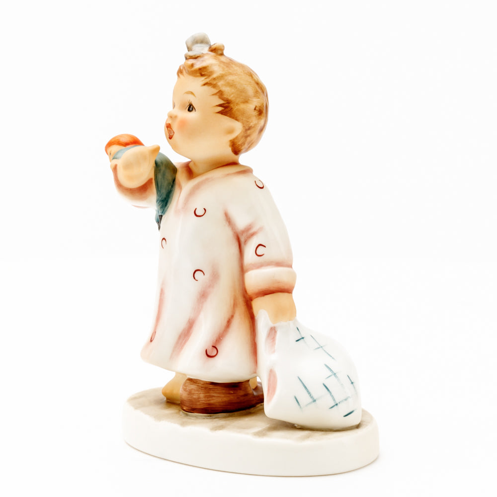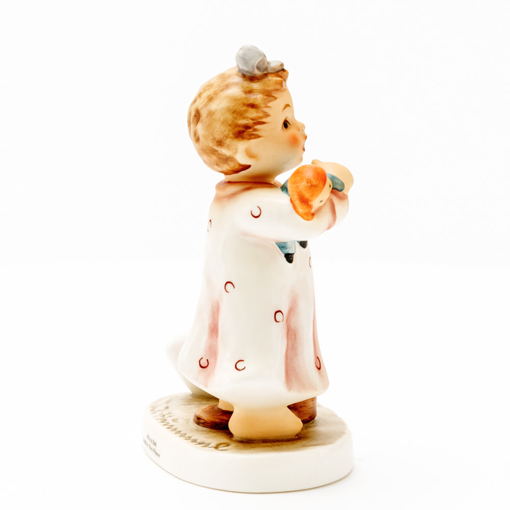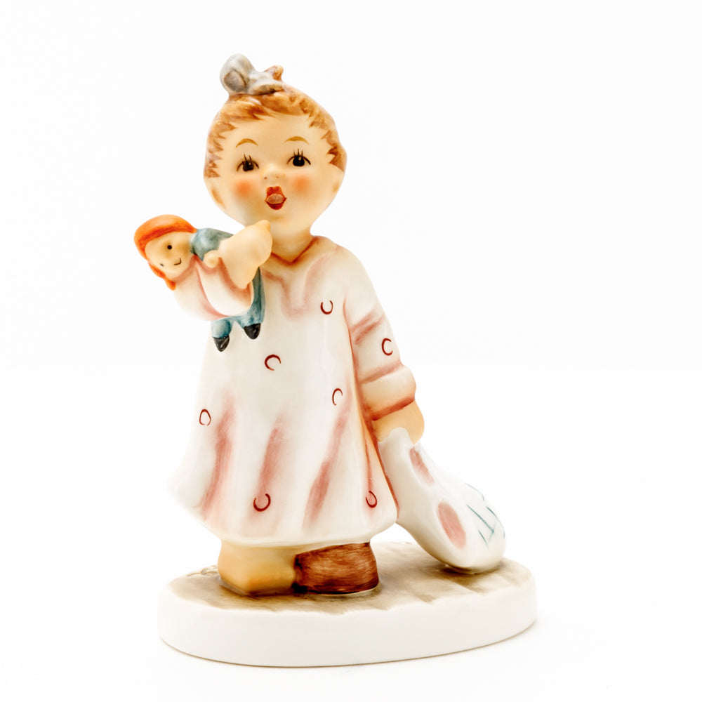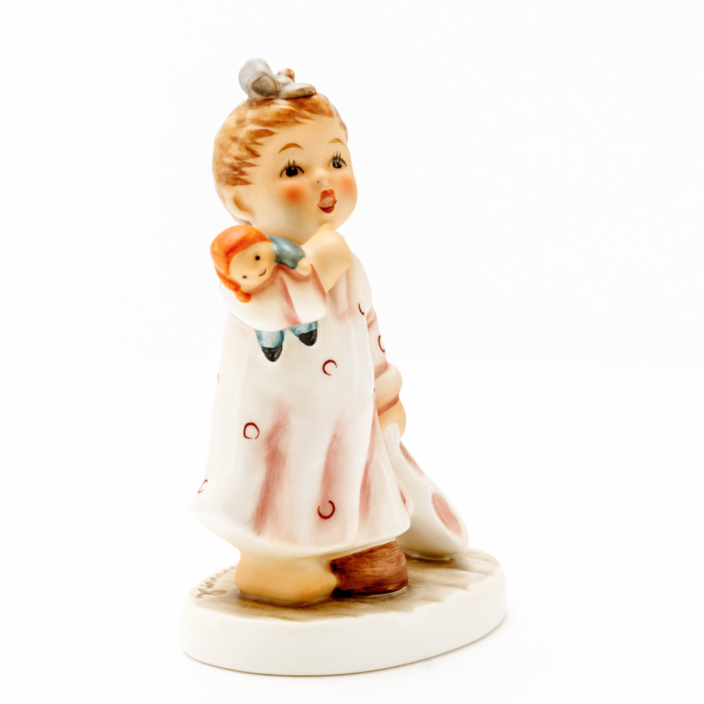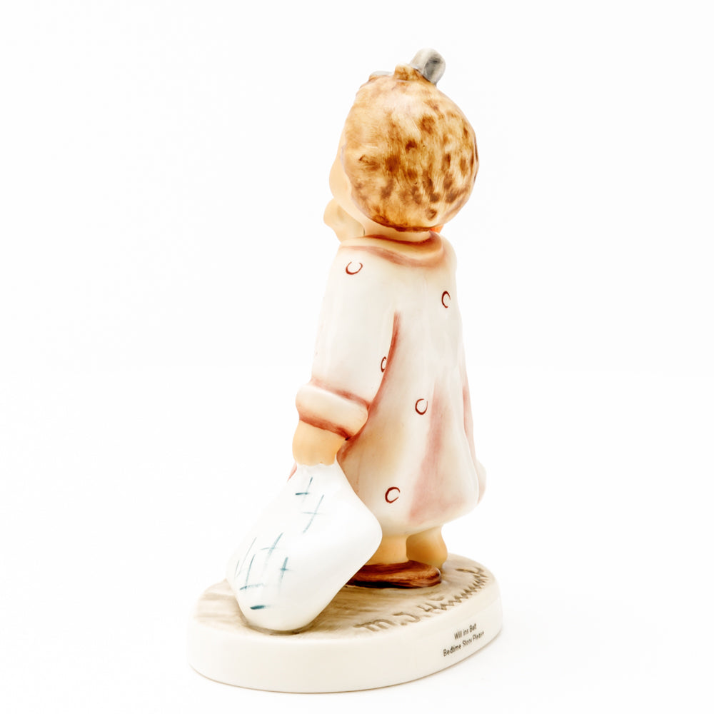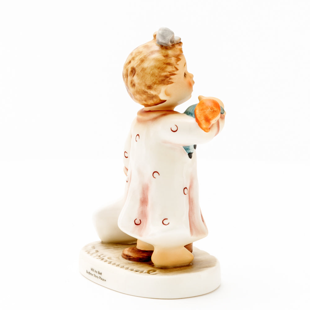 „Will ins Bett“ ist der Gegenentwurf zur männlichen „Bin noch gar net müde“ (HUM 2313) – diese Hummel-Figur zeigt einen kleinen Hummel-Jungen mit seinem Lieblingsteddy, der ebenfalls gerade auf dem Weg ins Bett ist.