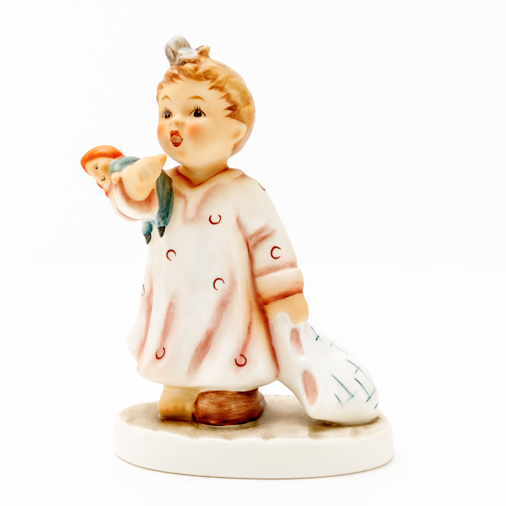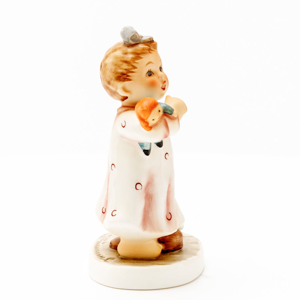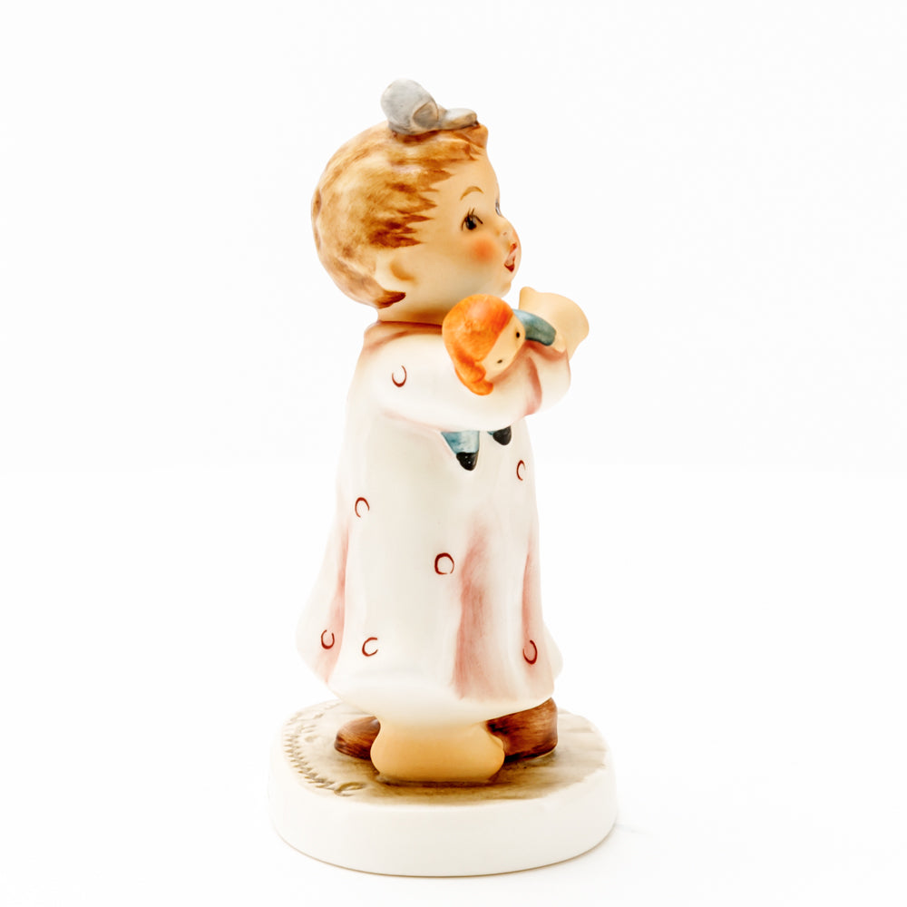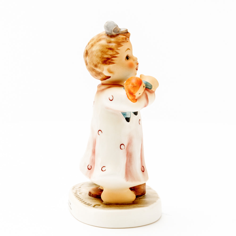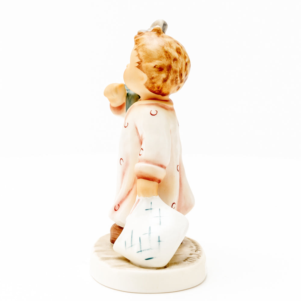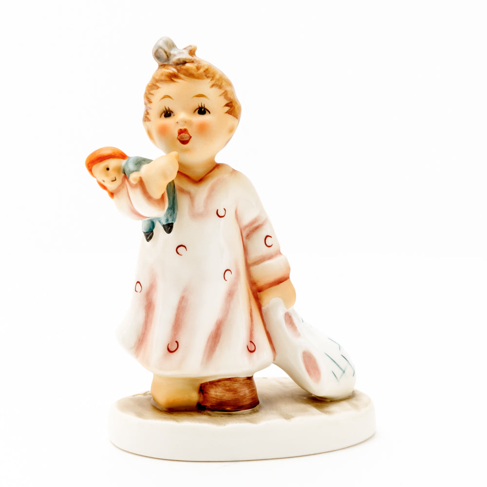 „Will ins Bett“ ist der Gegenentwurf zur männlichen „Bin noch gar net müde“ (HUM 2313) – diese Hummel-Figur zeigt einen kleinen Hummel-Jungen mit seinem Lieblingsteddy, der ebenfalls gerade auf dem Weg ins Bett ist.