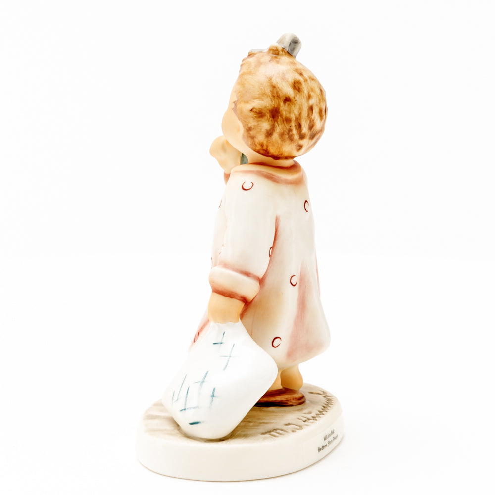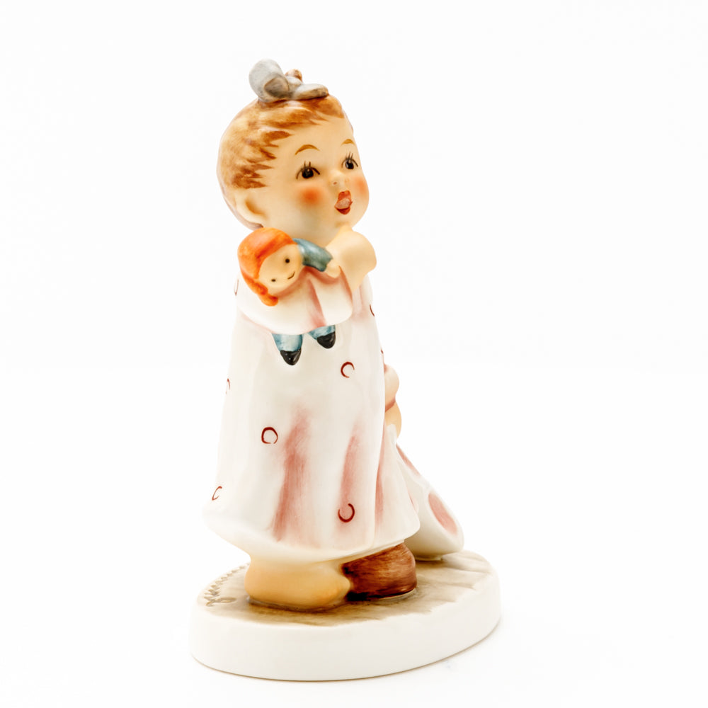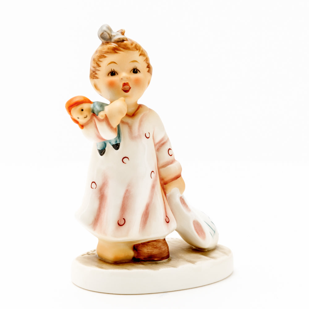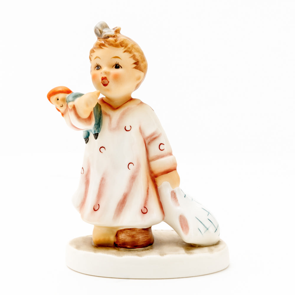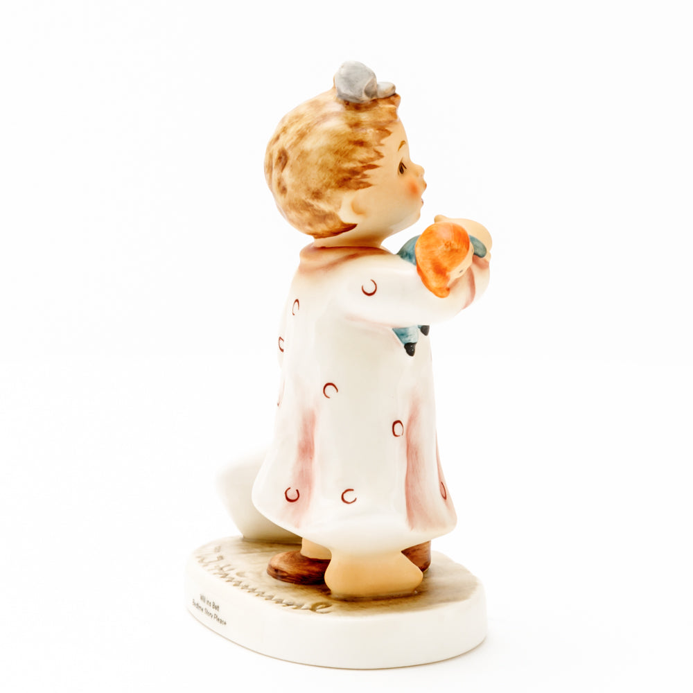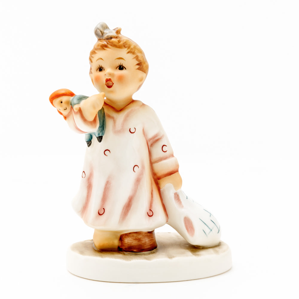 „Will ins Bett“ ist der Gegenentwurf zur männlichen „Bin noch gar net müde“ (HUM 2313) – diese Hummel-Figur zeigt einen kleinen Hummel-Jungen mit seinem Lieblingsteddy, der ebenfalls gerade auf dem Weg ins Bett ist.